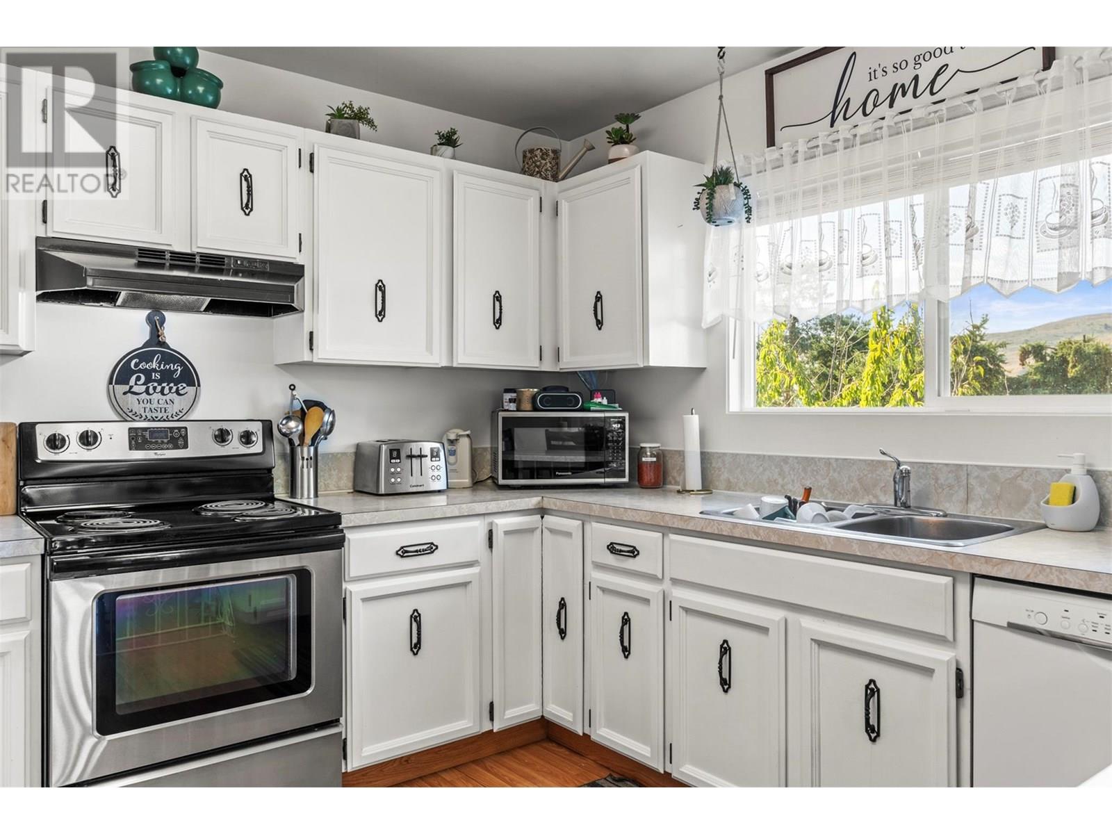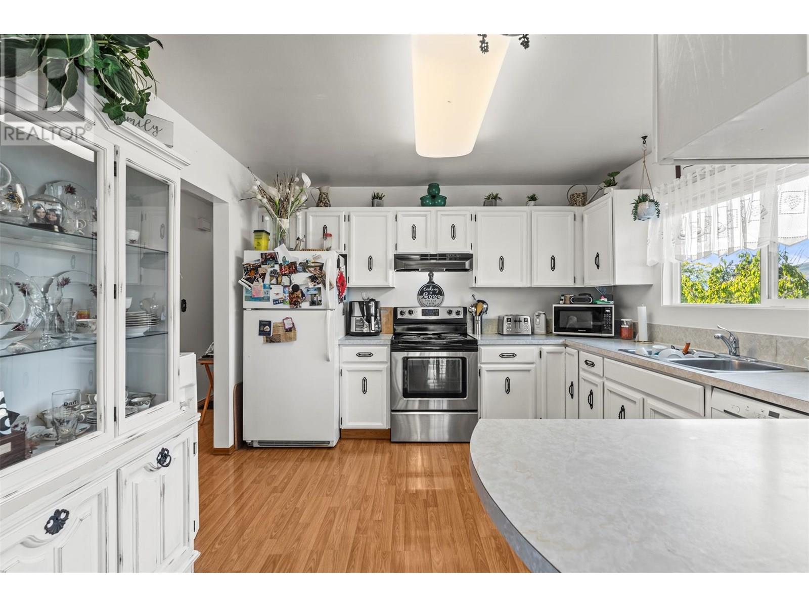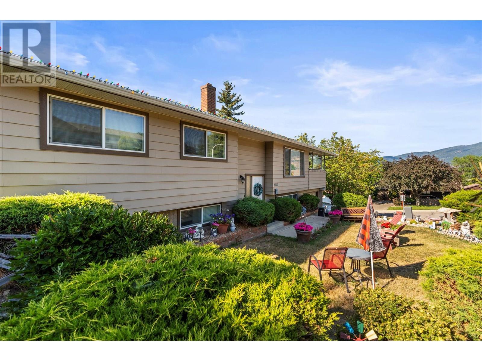 LOCATION, LOCATION! 4-bed, 3-bath Mission Hill home offers stunning city views & great location. The main level offers a nice sized kitchen with views of Bella Vista and a bright living space, including a primary suite with a full ensuite and stand-up shower, 2 more bedrooms and a second full bath complete this floor. Downstairs features a large fourth bedroom, a cozy family room, a combined laundry and bathroom, ample storage, and direct garage access. The spacious, covered semi-enclosed deck is perfect for BBQs, entertaining, or relaxing while enjoying panoramic views over Vernon. Parking is easy with a single-car garage and a generous driveway that can accommodate four vehicles, an RV, or a boat. Mature landscaping and a cedar hedge provide privacy in the front yard, creating a sunny outdoor retreat. Stone steps lead to the backyard, where you’ll find a plum tree, additional greenery, and plenty of space for garden beds, a fire pit, or a playhouse. A covered storage area at the back of the home is ideal for outdoor tools. Washer, dryer, and window air conditioner are included in the sale. Located within walking distance of Mission Hill Dog Park and playground, with schools nearby and downtown Vernon only minutes away, this home offers incredible value! This property is an excellent choice for a family home or an investment opportunity. Learn more about this fantastic Vernon property on our website. Ready to take a closer look? Schedule your private showing today! (id:58842)