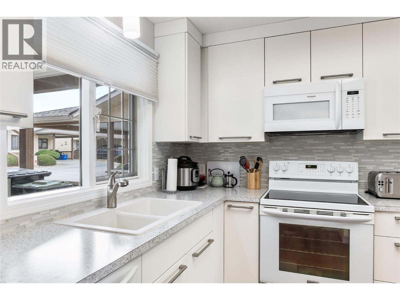 Welcome to this beautifully updated entry-level townhome in the desirable 55+ community of Parkview Place. Offering 3 bedrooms and 3 bathrooms, this move-in ready home combines comfort with low-maintenance living. The main level features two bedrooms, two full bathrooms, and convenient in-home laundry. The bright living room opens onto a spacious, partially covered deck—perfect for enjoying afternoon sun—while the dining area is enhanced by a charming bay window. The open-concept kitchen offers crisp white cabinetry, a pantry with pull-out drawers, and a highly functional layout. Downstairs, you’ll find a generous third bedroom, a half bathroom with potential to add a shower, and a large family room ideal for relaxing or hobbies. Step out to the covered patio and private garden space for a peaceful outdoor retreat. Backing onto tranquil greenspace with no rear neighbours, this home also includes a covered carport, nearby guest parking, and allowance for one pet. A wonderful opportunity to enjoy quiet, community-focused living in Vernon. (id:58842)