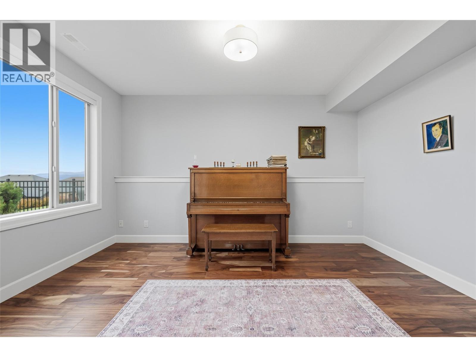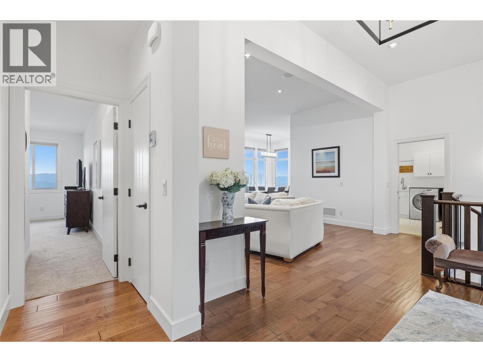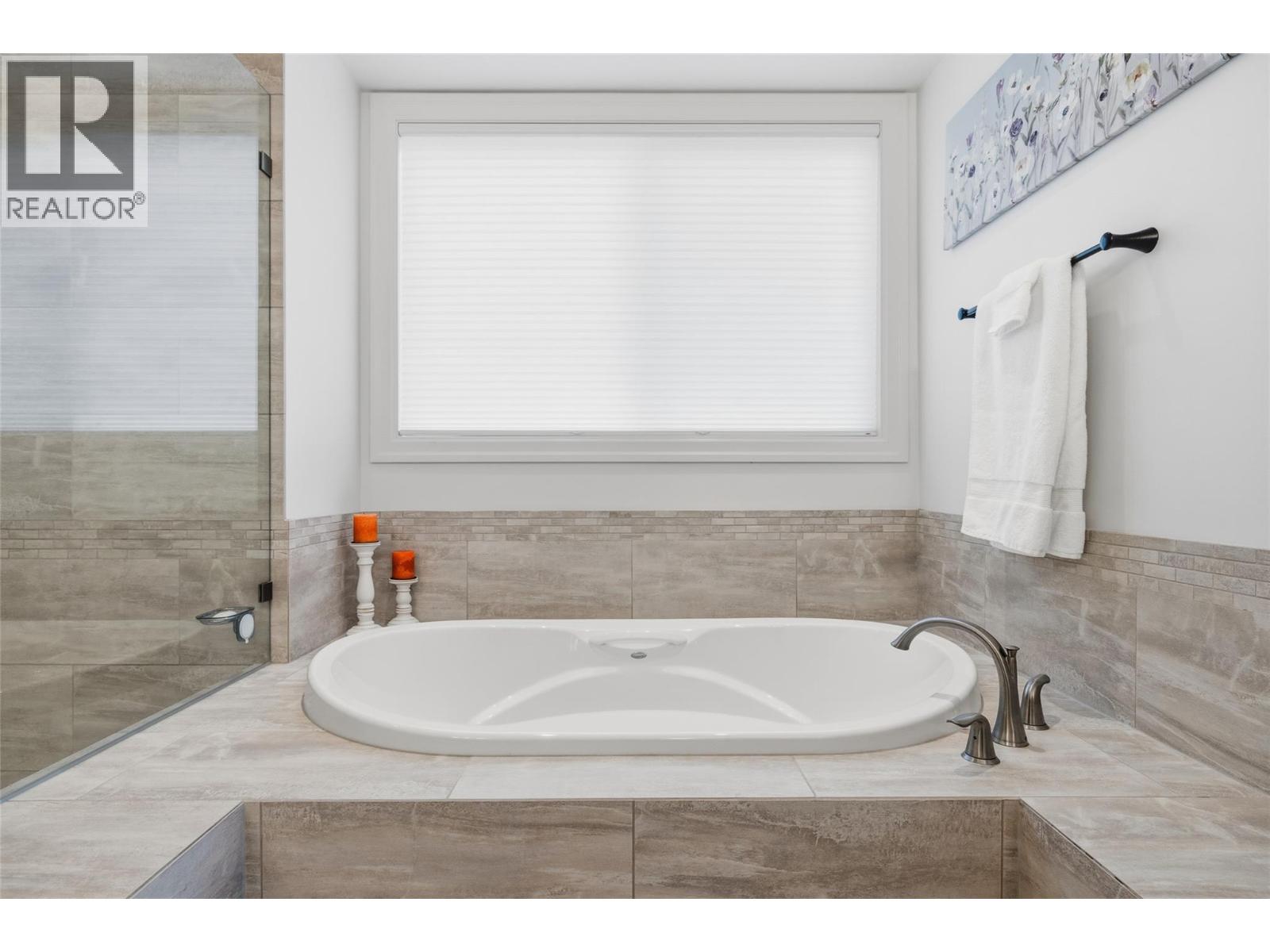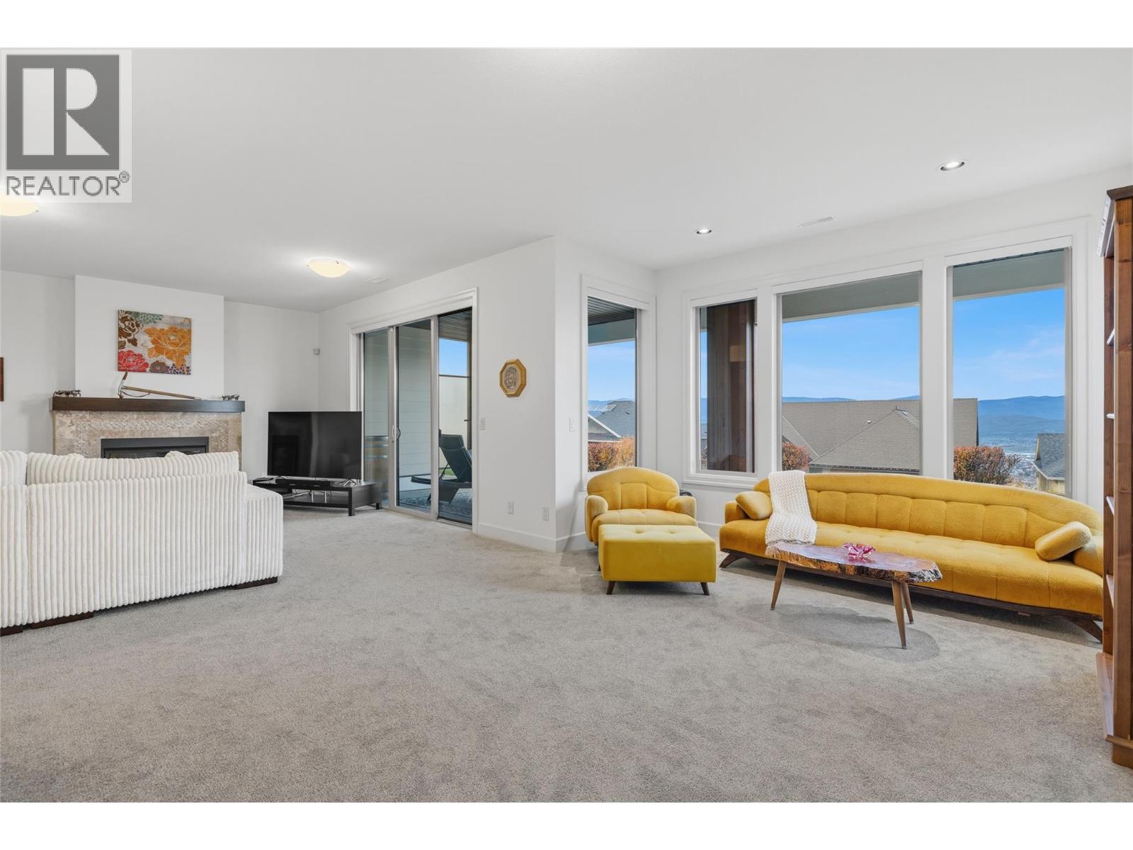 Impeccable Rykon-Built Walkout in Black Mountain — Shows 10/10! Beautiful 4-bed + office, 3-bath detached home in desirable Black Mountain captures panoramic views of the city, lake, mountains, and surrounding agricultural land. With recent high-quality updates, this residence truly feels like new. Generous room sizes, luxurious finishes, and an inviting open-concept layout. Stone fireplaces, quartz counter tops, built-ins, and design details make the main level both stylish and comfortable. Expansive covered deck offers lots of seating and views! Both upper and walk out level are exceptional. Open concept main floor living, high ceilings, stone fireplace and spacious master and ensuite. The lower level offers a recreation room for movie or game nights, a custom wine room, two additional bedrooms, a den/flex spaces, and another covered patio space. Professionally landscaped features synthetic lawn, mature plantings, fully fenced, creating privacy and ease of care. The extra-large heated double garage is spotless and thoughtfully designed, offering a workbench and additional bump-out space for golf cart or bikes. Enjoy world-class golf, nearby hiking trails, wineries and quick access to Big White Ski Resort. HE furnace 2020, HWT 2021, AC Motor 2025 See owner notes for all recent upgrades (id:58842)