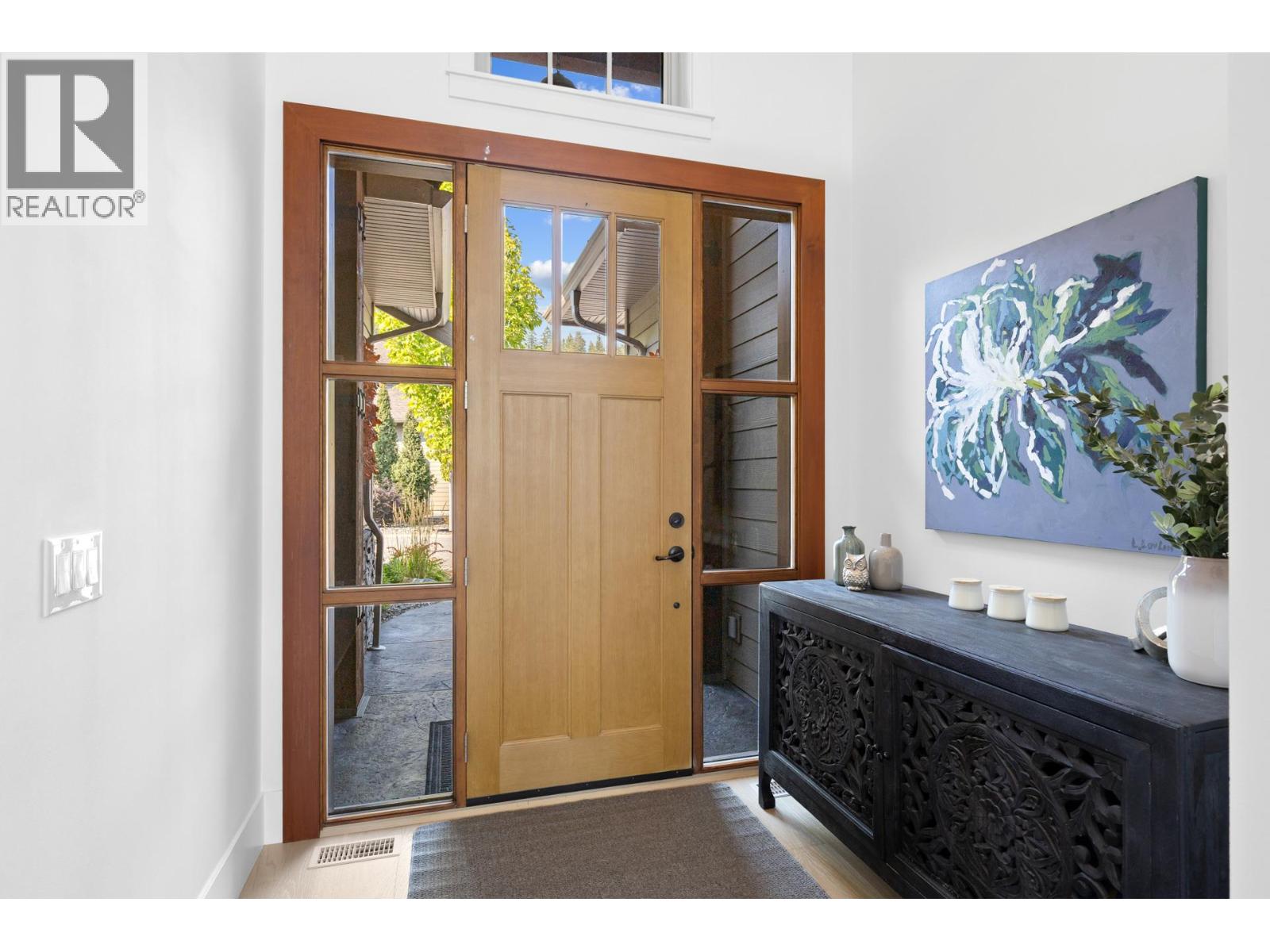 Wake up—or unwind—to boundless sunrise and sunset colors as cloud formations drift across panoramic lake views toward protected Okanagan Mountain Park, visible from nearly every room in this exceptional walk-out rancher in The Trails. Perfectly positioned above Peachland’s charming lakeside, this home blends privacy, tranquility, and convenience in one stunning setting. The bright, open main level features vaulted ceilings, expansive windows, and warm engineered hardwood that adds both elegance and comfort. Step onto the spacious deck with natural gas BBQ hookup—ideal for entertaining, relaxing, and taking in unforgettable sunsets. A cozy gas fireplace anchors the living space with year-round ambiance. The primary suite is a true retreat with French doors to the deck, a spa-inspired 5-piece ensuite with heated tile floors, and a generous walk-in closet. The lower level offers a sizeable, flexible family media or guest space with wet bar, linear fireplace, and built-in Murphy bed—perfect for visitors or extended stays. Geothermal (annual service included in strata fee) heating and cooling ensure efficient comfort in every season. Just minutes away, Peachland’s vibrant waterfront invites you to stroll the paved Beach Avenue walkway past shops, cafés, and restaurants, enjoy live outdoor music features along the boardwalk, swim at the lifeguarded Swim Bay, or cast a line from the wheelchair-accessible pier. Surrounded by hiking and biking trails and near an approved 9-hole golf course (see City of Peachland for updates), this is refined Okanagan living where lifestyle and location meet. (id:58842)