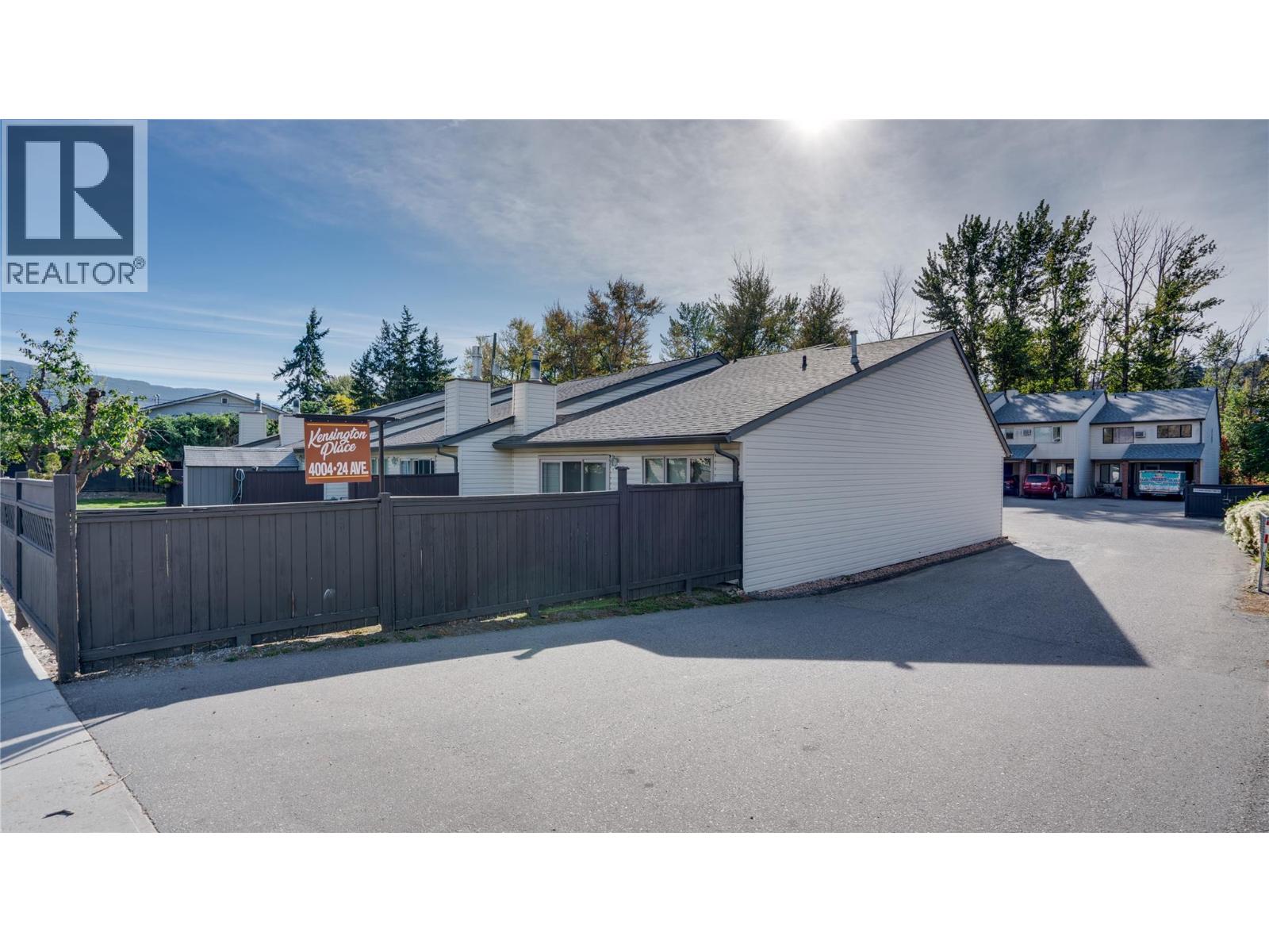 Accessible, Updated & Peaceful End Unit in Vernon Welcome to #4 – 4004 24 Ave, a beautifully refreshed grade-level entry townhome offering exceptional value, comfort, and accessibility. With just one step up from the front door and your carport literally steps away, this home is ideal for anyone seeking stair-free living — a rare find in this price range. Inside, you'll find brand new upgrades including a fridge, electric range, hot water tank, kitchen sink and faucet, baseboard heaters, and new laminate flooring throughout. The entire home has been freshly painted, with new baseboards and trim for a clean, modern finish. Cozy up by the natural gas fireplace, or unwind on your backyard patio. As an end unit, you'll enjoy added privacy and quiet. Residents appreciate the quiet, well-managed strata, where creekside views and visiting wildlife offer a serene backdrop to daily life. With recent exterior upgrades including a new roof , this end-unit townhome delivers comfort, privacy, and exceptional value — making it a standout choice for downsizers, first-time buyers, or savvy investors. (id:58842)