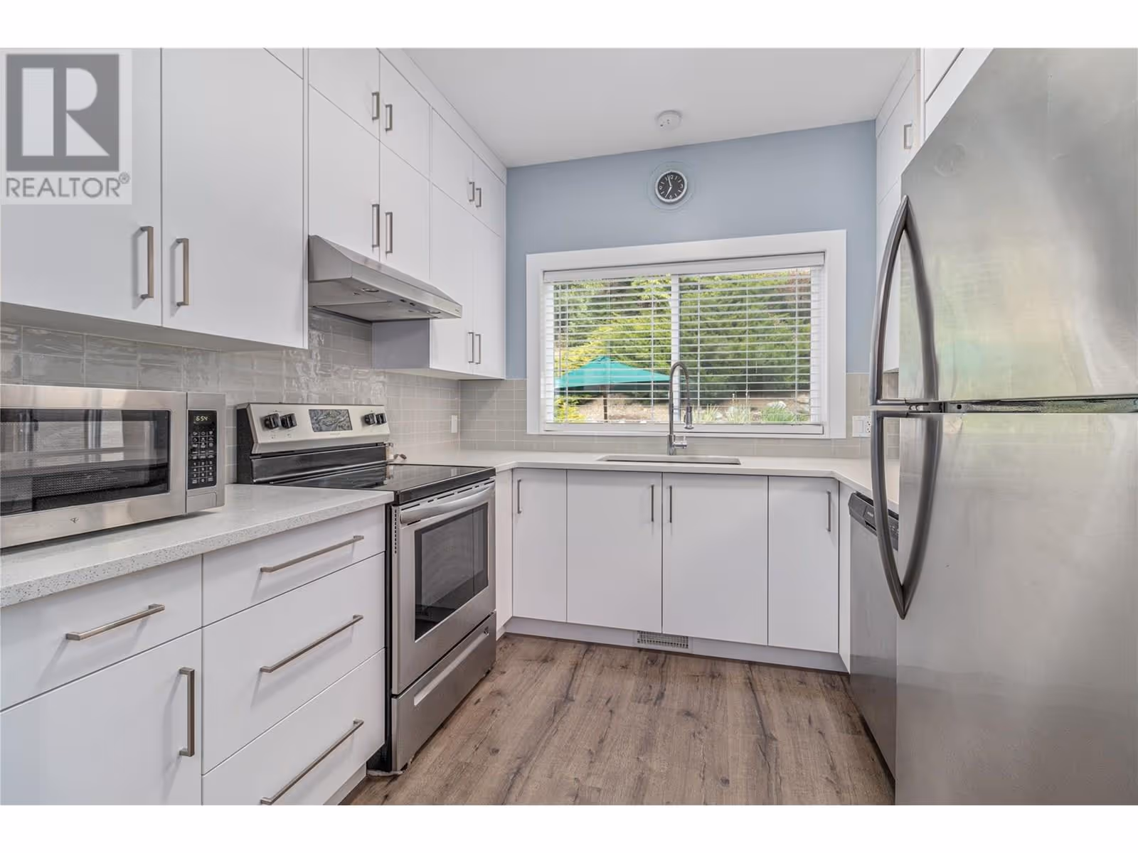 Discover your perfect oasis in this immaculate fully renovated 2-bedroom, 2bath townhouse located in a quiet, desirable 55+ complex Kalloway Greens, in Vernon, BC. This meticulously maintained home with top to bottom renovations (2024) offers comfort and convenience with modern amenities including AC and central vac. Renovations include: new flooring, new baseboards, new windows, new paint, new patio doors, all baths were updated as well. New Stunning Kitchen cabinets to the ceilings and new SS appliances complete this package. Double oversized garage with huge work shop + well organized shelving and separate utility room- what else is needed for craft-minded person? This prime location puts you steps away from a wealth of activities: hiking/biking trails, close proximity to top-notch golf courses and a vibrant clubhouse. Just a short walk away (1 km), you'll find the breathtaking Kalamalka Lake Beach, renowned for its stunning turquoise water and sandy shores – ideal for swimming, paddleboarding, or simply relaxing by the Lake. For all your shopping needs: both Polson Mall (featuring Save On Foods, Shoppers Drug Mart, and Galaxy Cinemas) and Alpine Centre are conveniently close. Strata is 389/month. Self managed complex with only 17 units! Pets and long-term rental are welcome here. This townhouse is more than just a home; it's a lifestyle, offering the perfect blend of tranquility, activity, and accessibility in beautiful Vernon. (id:58842)