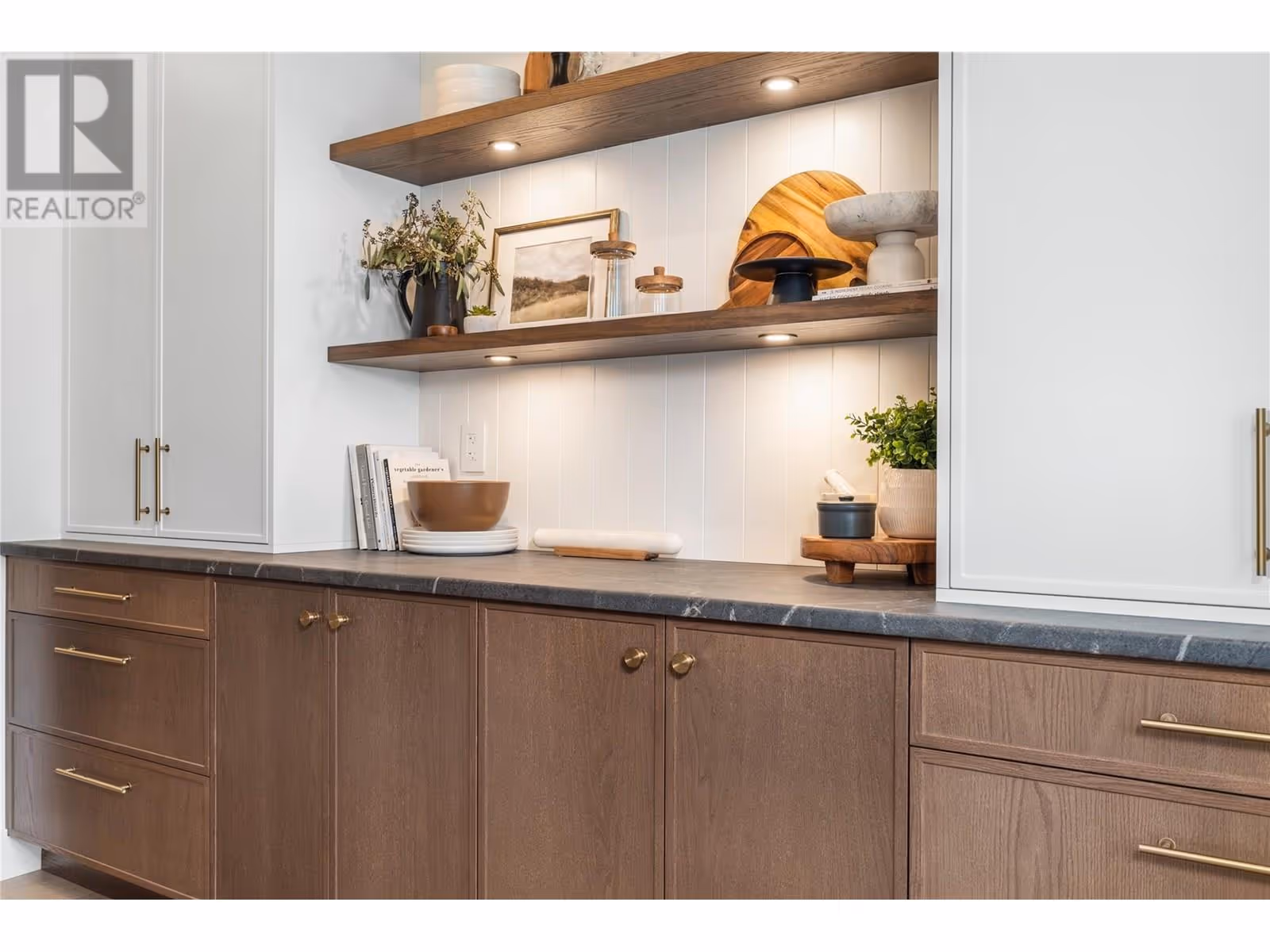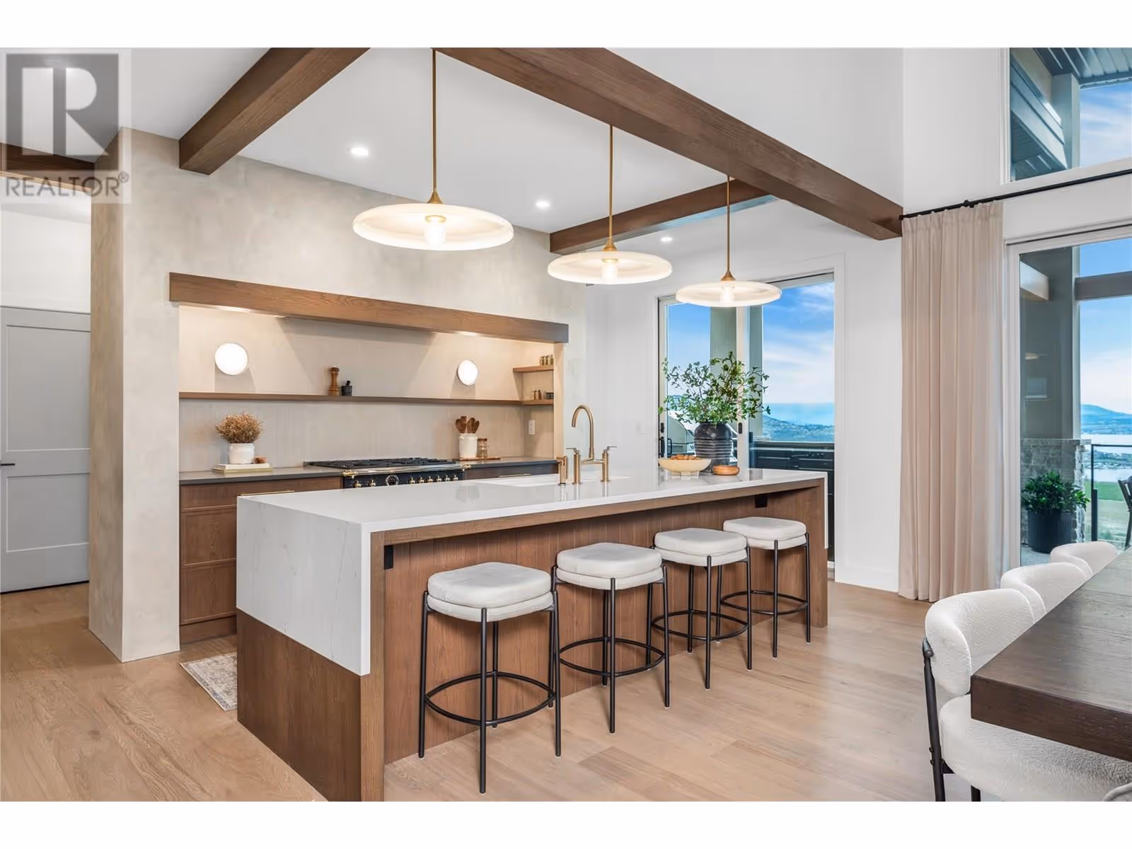 Step inside Everton Ridges’ Okanagan Contemporary show home in Shorerise, West Kelowna – where elevated design meets everyday functionality. This stunning residence features dramatic vaulted ceilings throughout the Great Room, Dining Room, Entry, and Ensuite, adding architectural impact and an airy, expansive feel. A sleek linear fireplace anchors the Great Room, while the oversized covered deck – with its fully equipped outdoor kitchen – offers the perfect space for year-round entertaining. With 3 bedrooms, 3.5 bathrooms, and a spacious double-car garage, there’s room for the whole family to live and grow. The heart of the home is the dream kitchen, complete with a 10-foot island, a large butler’s pantry, and a built-in coffee bar – ideal for both busy mornings and relaxed weekends. Every detail has been thoughtfully designed to reflect timeless style and effortless livability. (id:58842)
