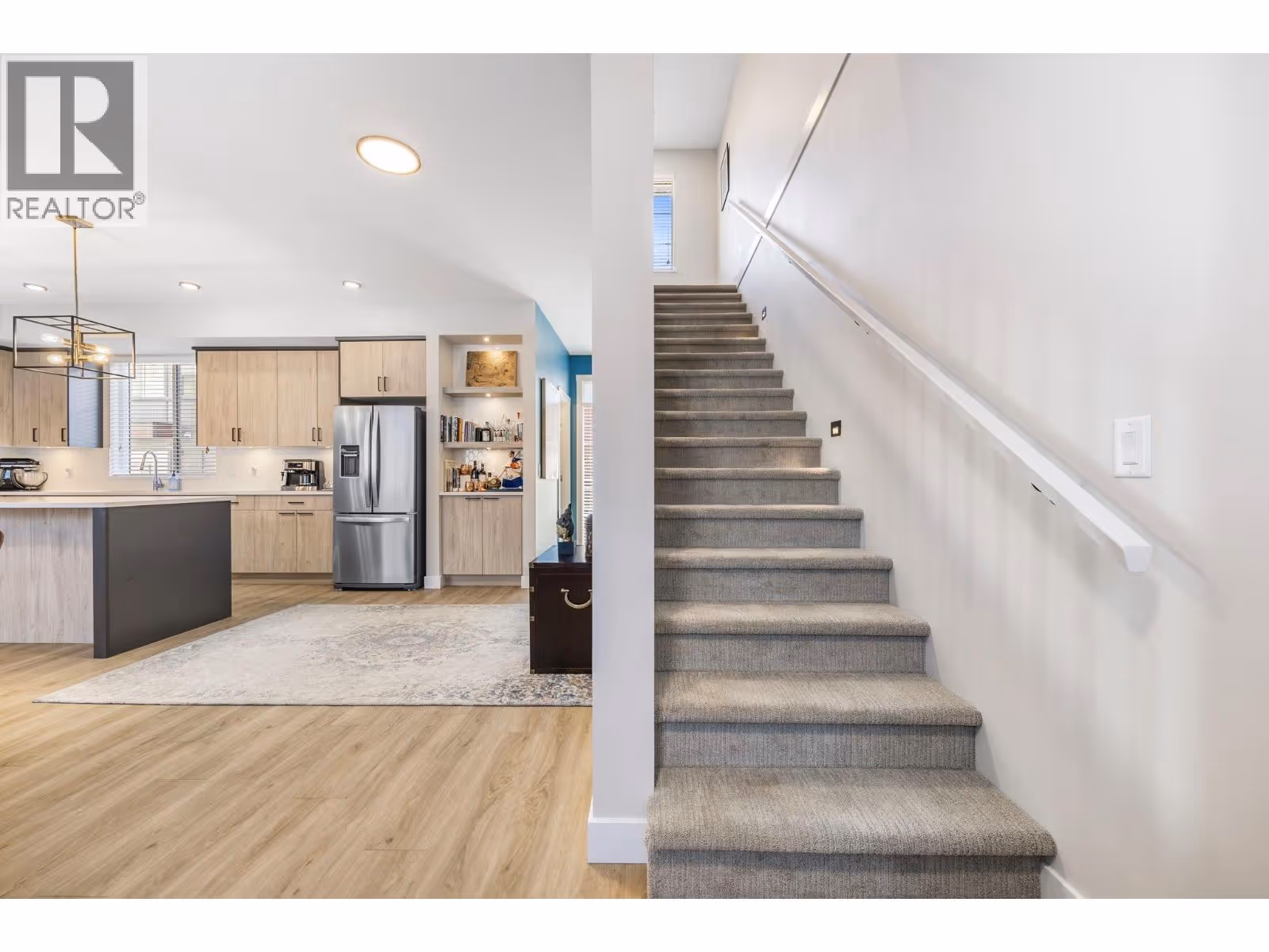 Desirable Glen Canyon / Gellatly Bay townhome just minutes from Okanagan Lake, parks, shops, and trails. This three-storey home offers 3 bedrooms, 2.5 baths, and a wide double garage with storage. The main floor features an open concept kitchen, dining, and living area with stainless steel appliances, durable vinyl plank flooring, powder room, and access to a bright south-facing deck—perfect for entertaining. Upstairs boasts a primary suite with full ensuite, two additional bedrooms, and a second full bath. A private fenced sunny patio adds space for gardening or relaxing outdoors. The development includes a pickleball court and children’s playground—ideal for an active, family-friendly lifestyle. A short drive to beaches, wineries, and West Kelowna amenities, this home offers the best of Okanagan living. (id:58842)
