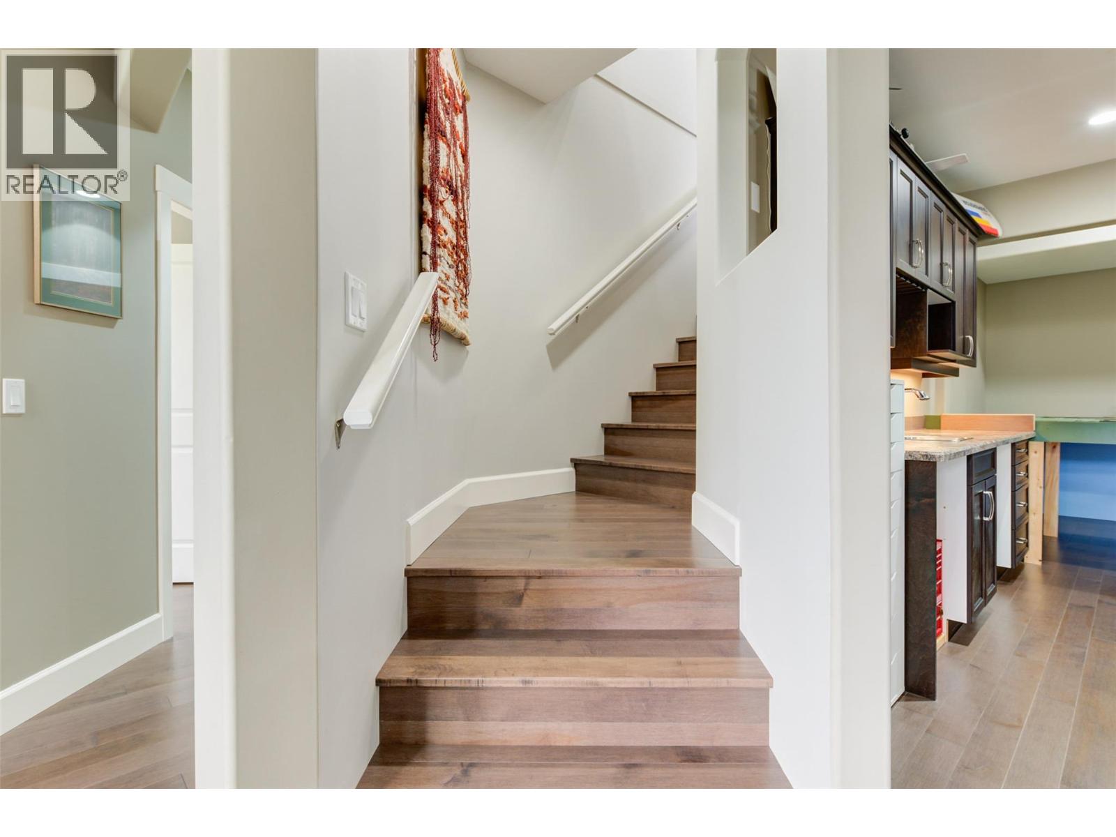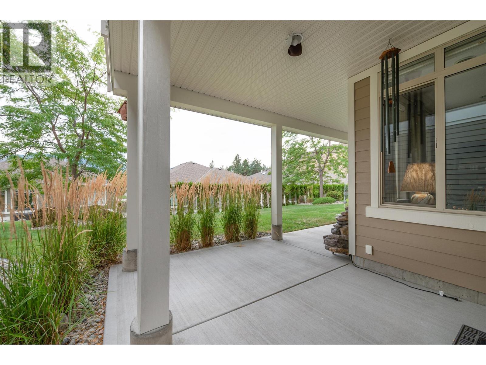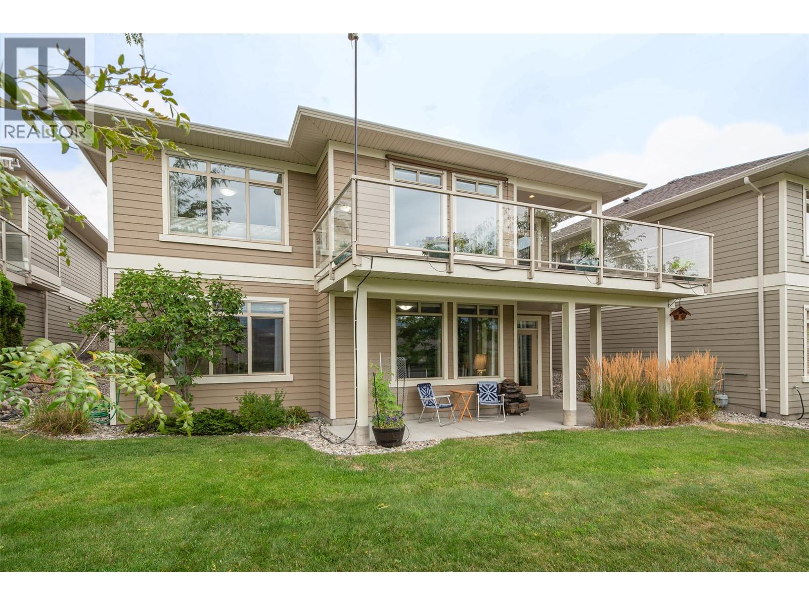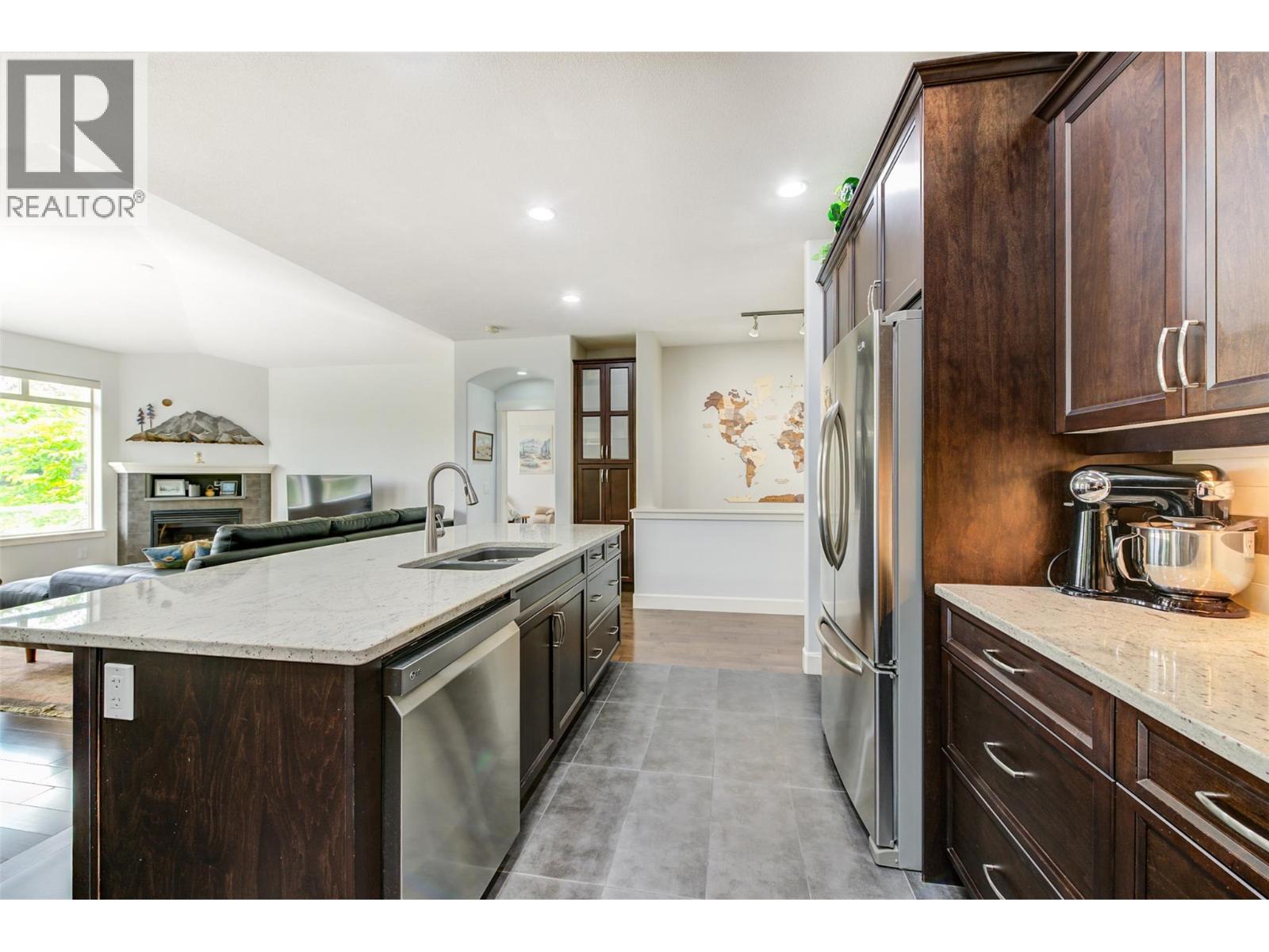 Discover refined comfort and effortless living in this impeccably maintained former show home, ideally located in the sought-after Canyon Ridge 55+ gated community. Thoughtfully designed and move-in ready, this 3-bed, 3-bath home offers open-concept living, a versatile den, and inviting outdoor spaces. Step inside to warm hardwood floors, vaulted ceilings, and abundant natural light. The spacious living room features expansive windows framing beautiful mountain views with a glimpse of the lake, creating a bright, airy feel. The gourmet kitchen is both stylish and functional, with granite countertops, a generous island, stainless steel appliances, and ample cabinetry. A skylight enhances the space, while the gas cooktop and wall oven make cooking a pleasure. The main-floor primary suite offers a peaceful retreat with a walk-in closet and well-appointed ensuite. A front-facing den is perfect for a home office or flex space, while a second bedroom, full bath, and laundry complete the main level. Downstairs, the finished lower level adds flexibility with a spacious family room and games area, separated by a striking double-sided gas fireplace ~ ideal for relaxing or hosting. Outdoor living shines with a large deck showcasing mountain and partial-lake views, plus a lower patio extending your living space. Residents enjoy a clubhouse with lounge, kitchen, banquet room, and library. Minutes to Glen Canyon Regional Park, Okanagan Lake, and amenities, this home blends tranquility, convenience, and low-maintenance living. (id:58842)