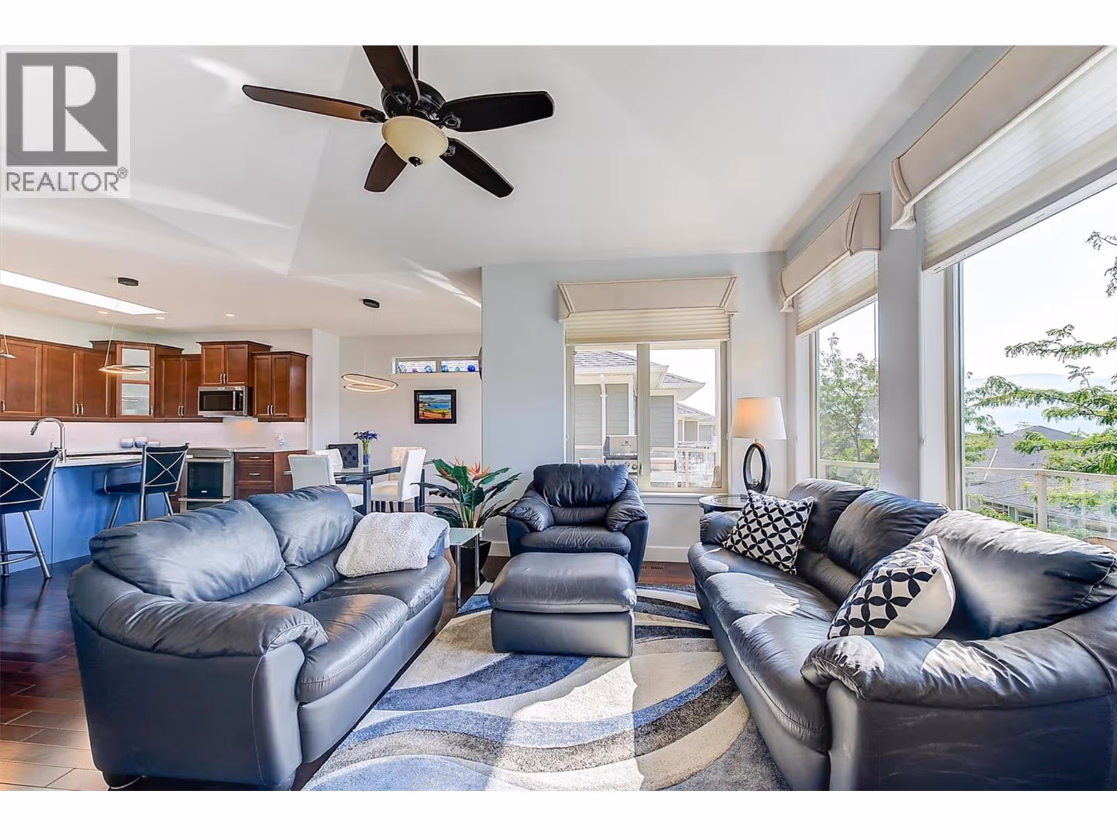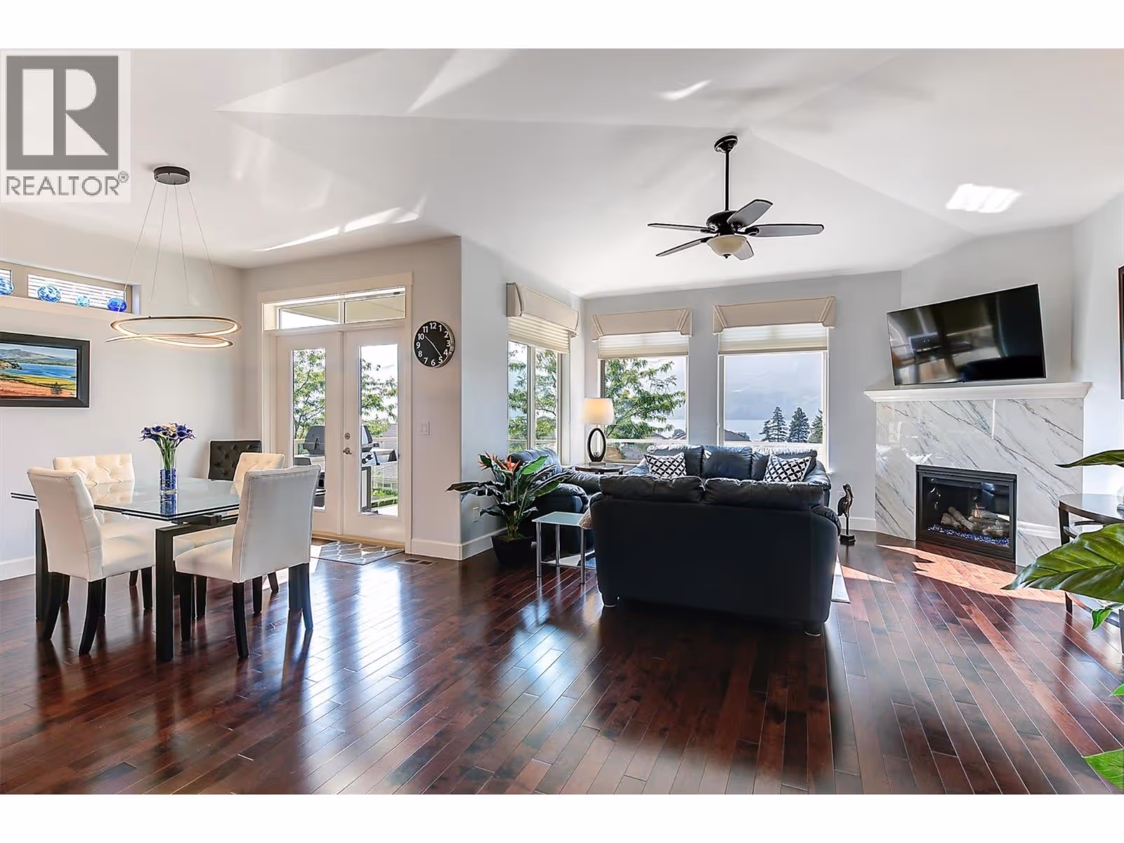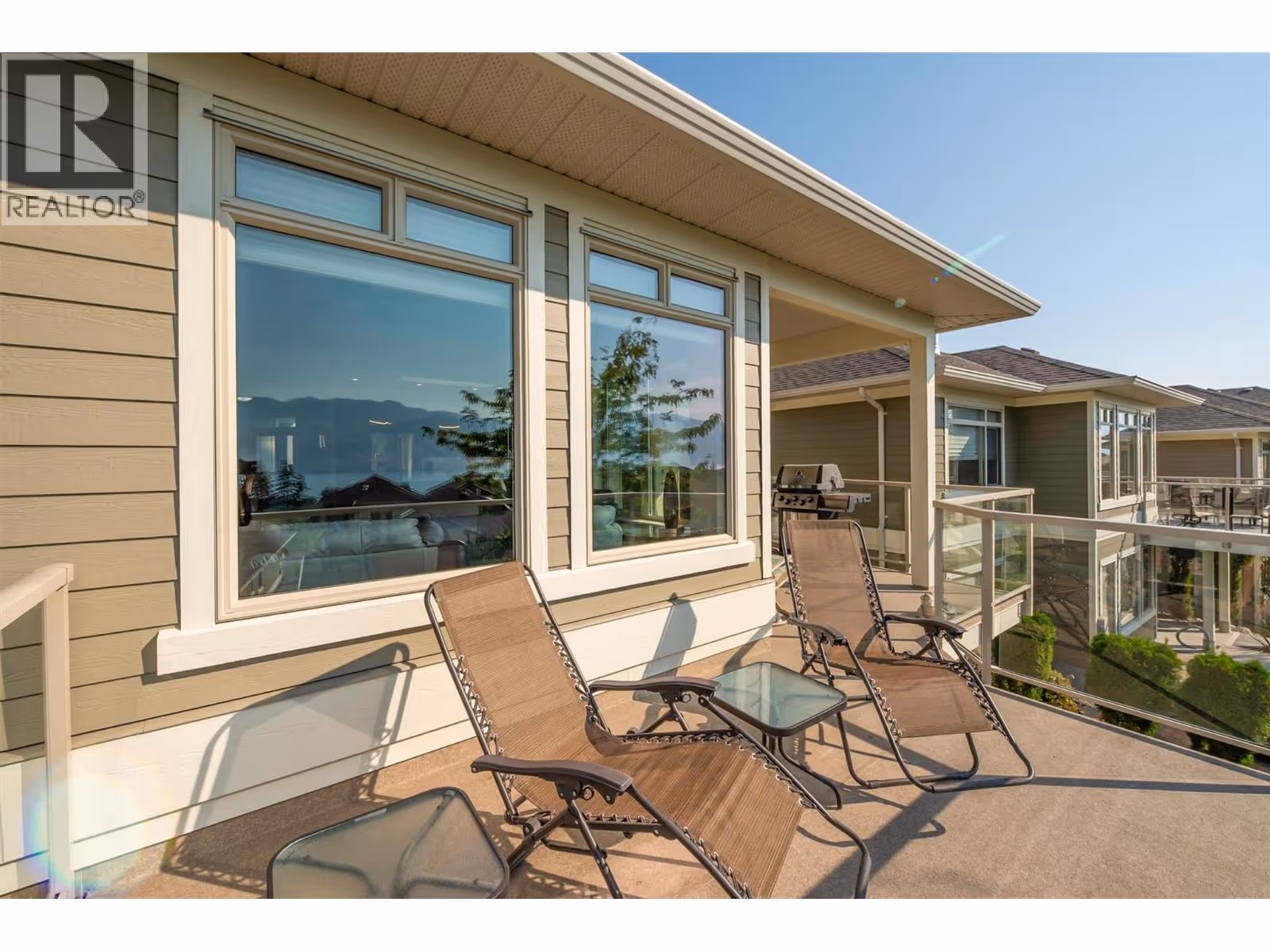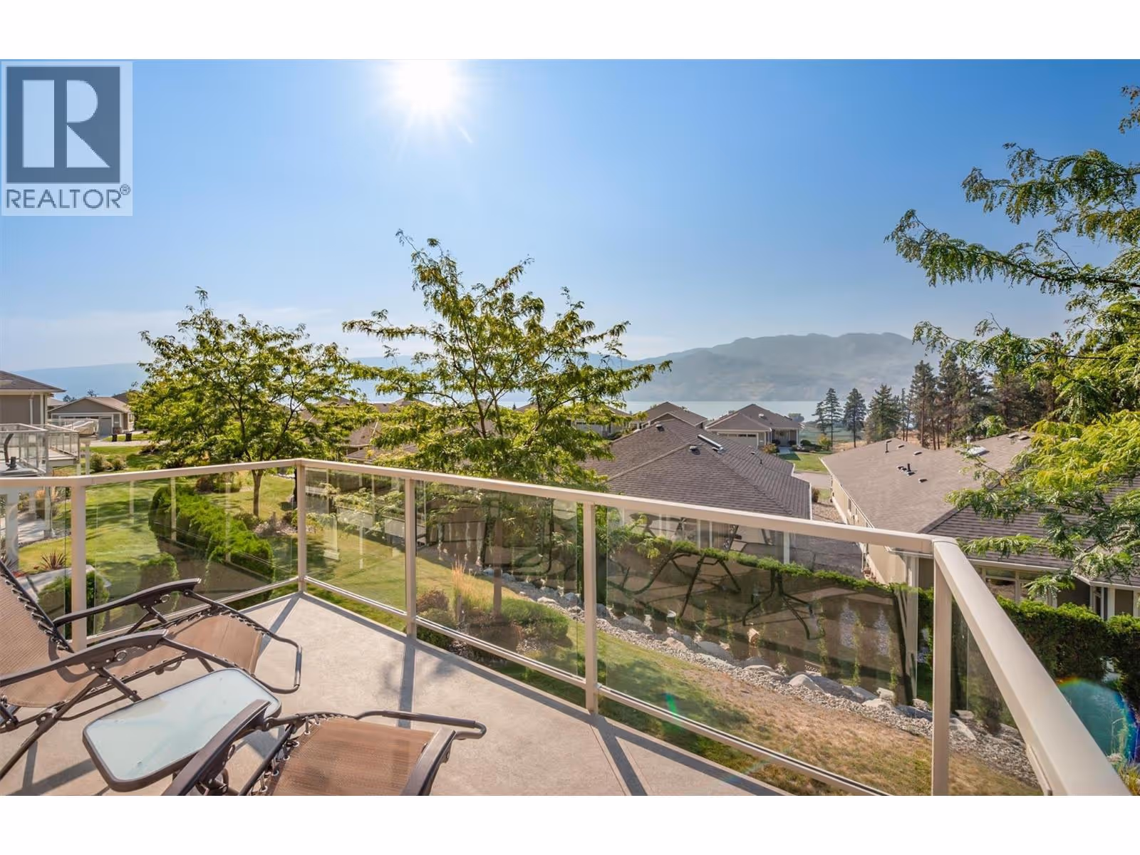 Welcome home to West Kelowna’s most desirable 55+ gated community. This beautifully maintained 3-bedroom, 3-bathroom rancher, walk-out home offers beautiful lake views, $80K in stunning upgrades, and a layout designed for easy, relaxed living. The open-concept main floor is filled with natural light, vaulted ceilings and features a living room with a gas fireplace and dining area that flows onto a large deck—perfect for morning coffee or evening sunsets over the lake. The kitchen shines with quartz countertops, high-end stainless steel appliances and lighting with plenty of space for cooking and entertaining. The main floor also includes a peaceful primary suite, with lakeviews to start your day, a spa-like ensuite bath, a second bedroom for guests, large laundry room and a generous den or office space. Downstairs, you’ll find a spacious, bright and welcoming family room, a third bedroom, full bathroom, a versatile flex space for a gym, craft room, and abundant storage. The walkout patio leads to a grassy area, ideal for pets or enjoying the outdoors. This friendly, gated community offers a safe and quiet setting while keeping you close to local walking trails in the canyon, beaches, marina/yacht club, wineries, golf courses, shopping, and a short walk to the lake. Residents of Canyon Ridge enjoy access to a clubhouse with a lounge, banquet room, and library. Low strata fees, 1 small dog or cat (up to 15"" at the shoulder) allowed. Book your viewing to enjoy in person. (id:58842)