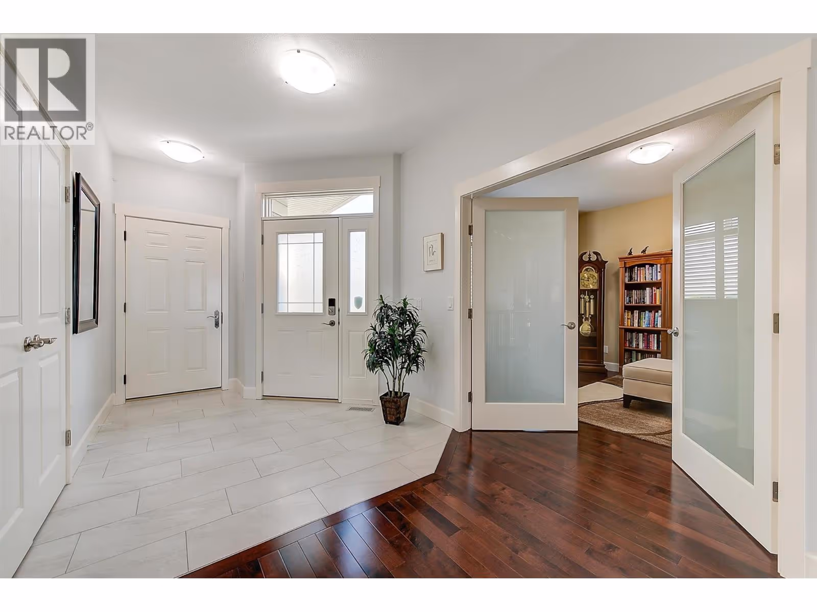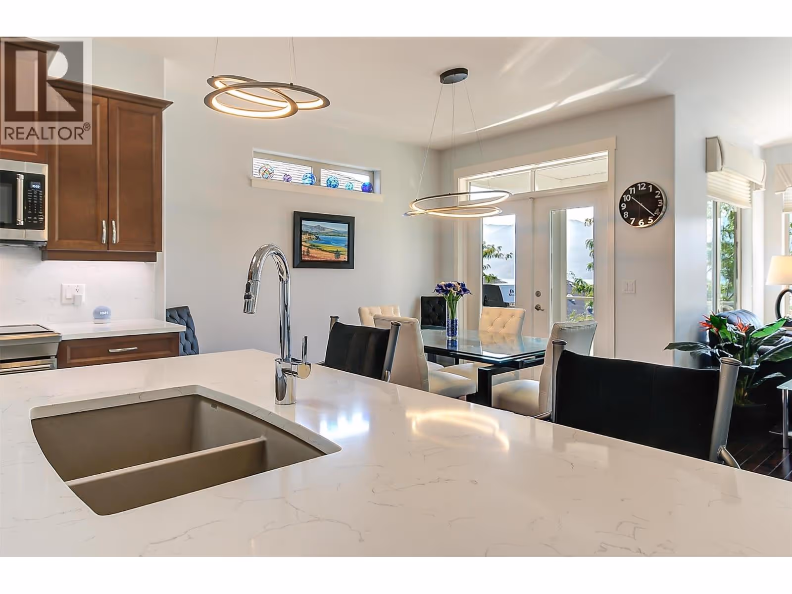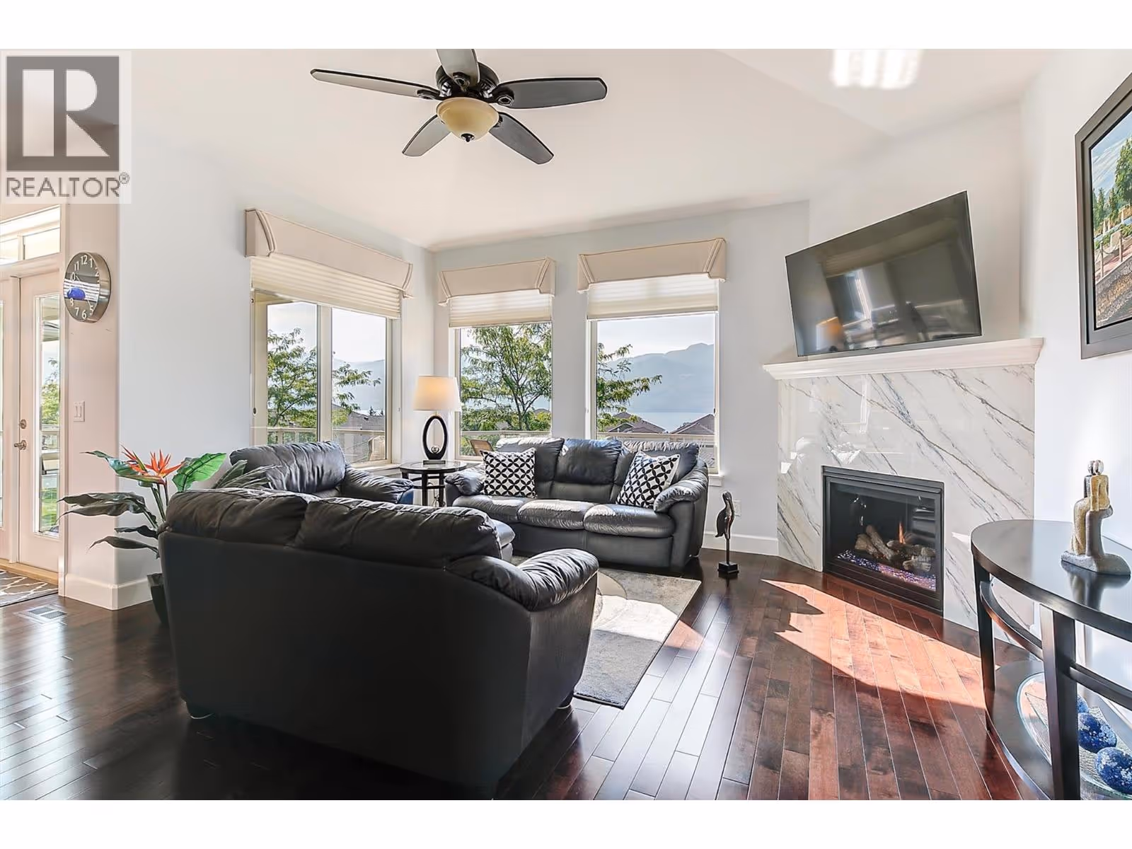 Welcome home to West Kelowna’s most desirable 55+ gated community. This beautifully maintained 3-bedroom, 3-bathroom rancher, walk-out home offers beautiful lake views, $80K in stunning upgrades, and a layout designed for easy, relaxed living. The open-concept main floor is filled with natural light, vaulted ceilings and features a living room with a gas fireplace and dining area that flows onto a large deck—perfect for morning coffee or evening sunsets over the lake. The kitchen shines with quartz countertops, high-end stainless steel appliances and lighting with plenty of space for cooking and entertaining. The main floor also includes a peaceful primary suite, with lakeviews to start your day, a spa-like ensuite bath, a second bedroom for guests, large laundry room and a generous den or office space. Downstairs, you’ll find a spacious, bright and welcoming family room, a third bedroom, full bathroom, a versatile flex space for a gym, craft room, and abundant storage. The walkout patio leads to a grassy area, ideal for pets or enjoying the outdoors. This friendly, gated community offers a safe and quiet setting while keeping you close to local walking trails in the canyon, beaches, marina/yacht club, wineries, golf courses, shopping, and a short walk to the lake. Residents of Canyon Ridge enjoy access to a clubhouse with a lounge, banquet room, and library. Low strata fees, 1 small dog or cat (up to 15"" at the shoulder) allowed. Book your viewing to enjoy in person. (id:58842)