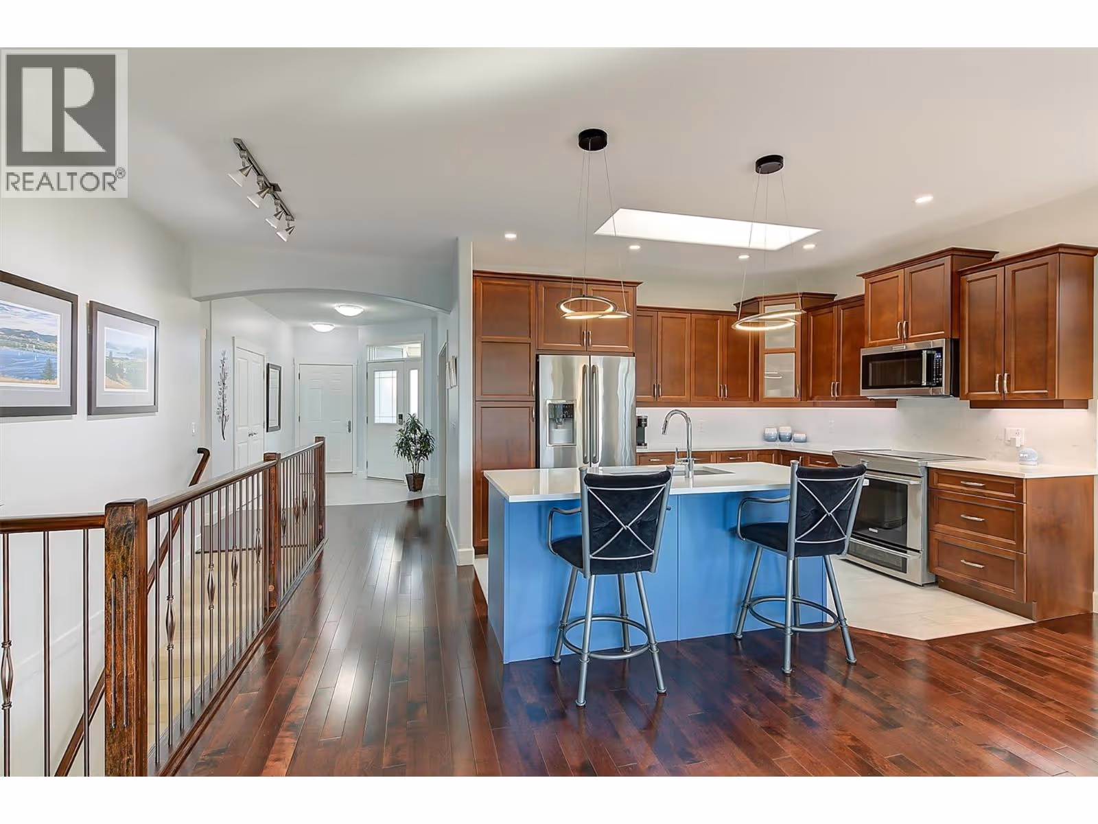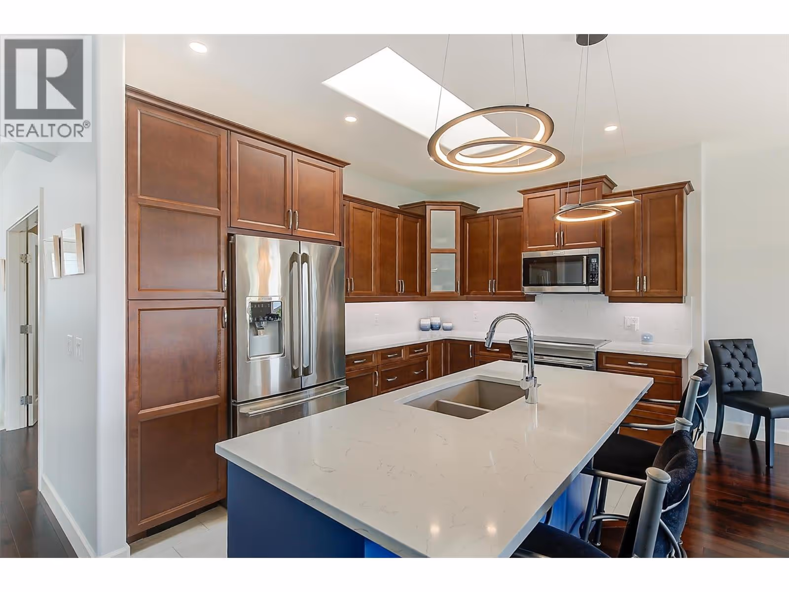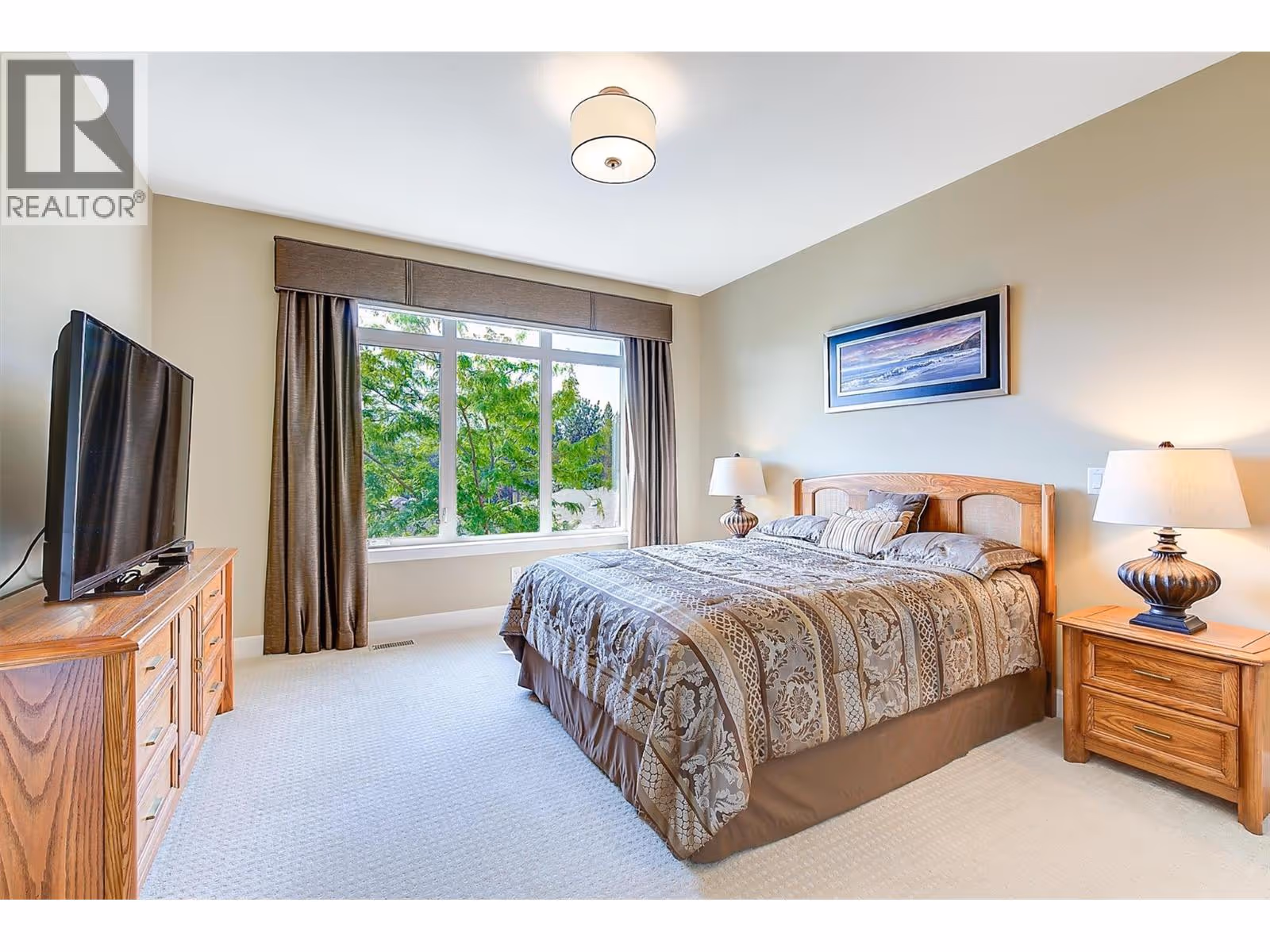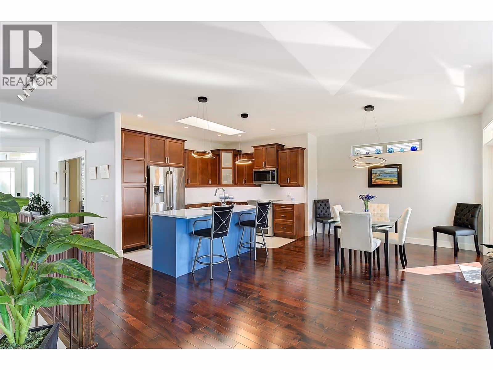 Welcome home to West Kelowna’s most desirable 55+ gated community. This beautifully maintained 3-bedroom, 3-bathroom rancher, walk-out home offers beautiful lake views, $80K in stunning upgrades, and a layout designed for easy, relaxed living. The open-concept main floor is filled with natural light, vaulted ceilings and features a living room with a gas fireplace and dining area that flows onto a large deck—perfect for morning coffee or evening sunsets over the lake. The kitchen shines with quartz countertops, high-end stainless steel appliances and lighting with plenty of space for cooking and entertaining. The main floor also includes a peaceful primary suite, with lakeviews to start your day, a spa-like ensuite bath, a second bedroom for guests, large laundry room and a generous den or office space. Downstairs, you’ll find a spacious, bright and welcoming family room, a third bedroom, full bathroom, a versatile flex space for a gym, craft room, and abundant storage. The walkout patio leads to a grassy area, ideal for pets or enjoying the outdoors. This friendly, gated community offers a safe and quiet setting while keeping you close to local walking trails in the canyon, beaches, marina/yacht club, wineries, golf courses, shopping, and a short walk to the lake. Residents of Canyon Ridge enjoy access to a clubhouse with a lounge, banquet room, and library. Low strata fees, 1 small dog or cat (up to 15"" at the shoulder) allowed. Book your viewing to enjoy in person. (id:58842)