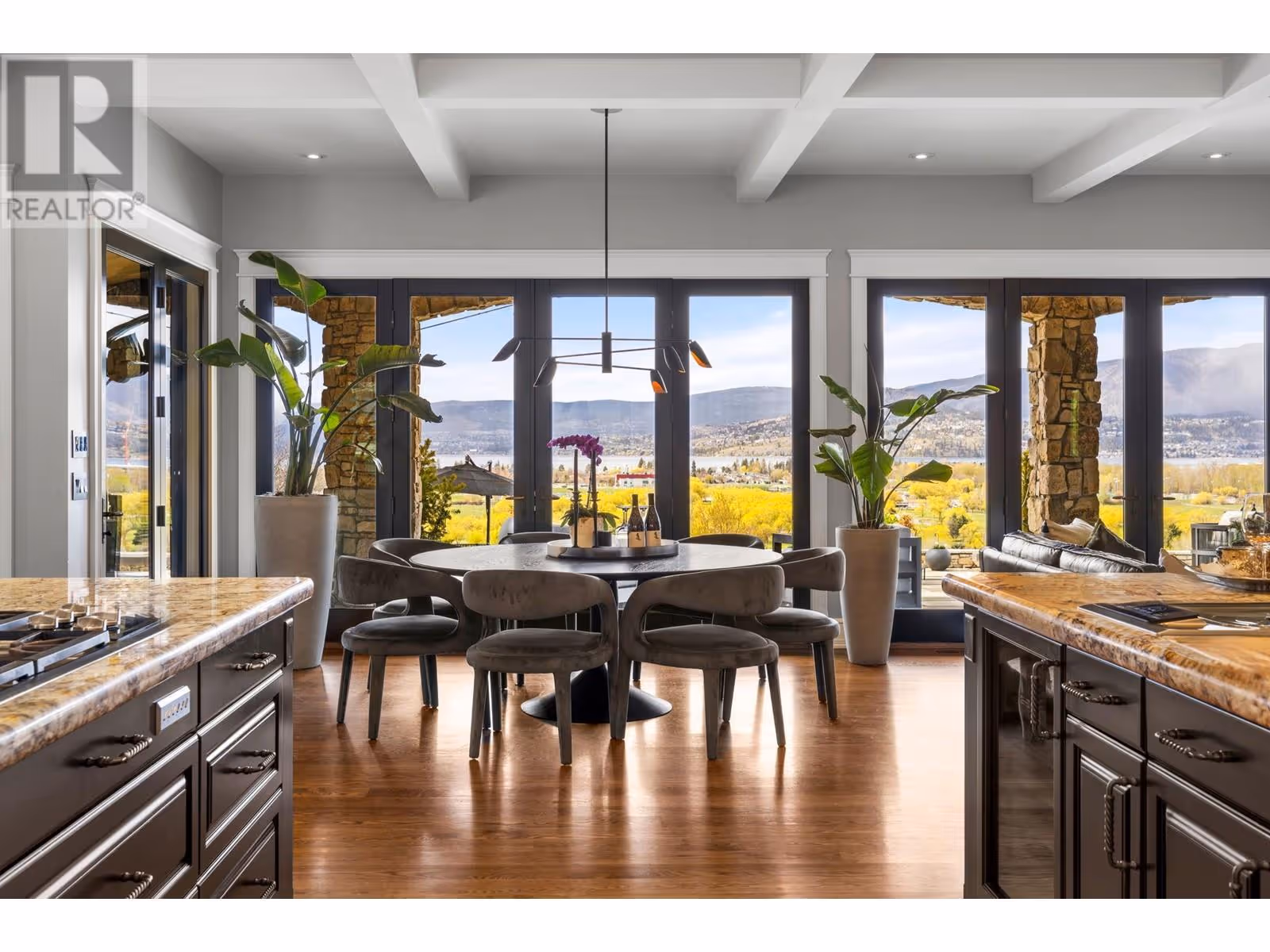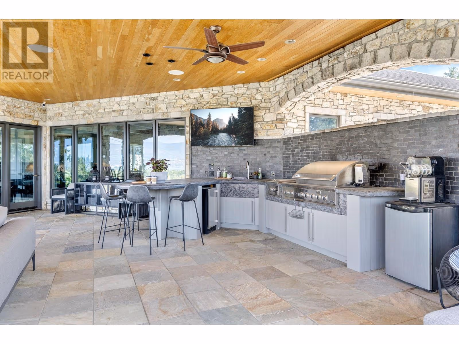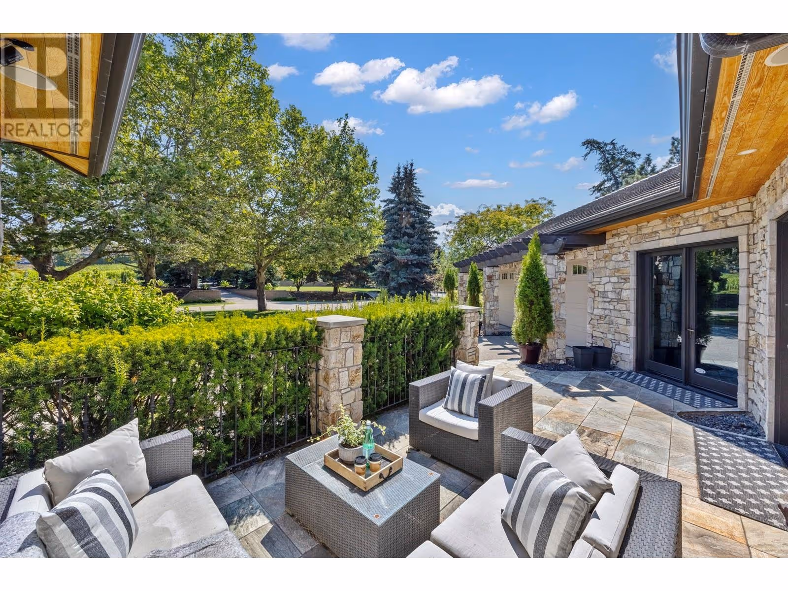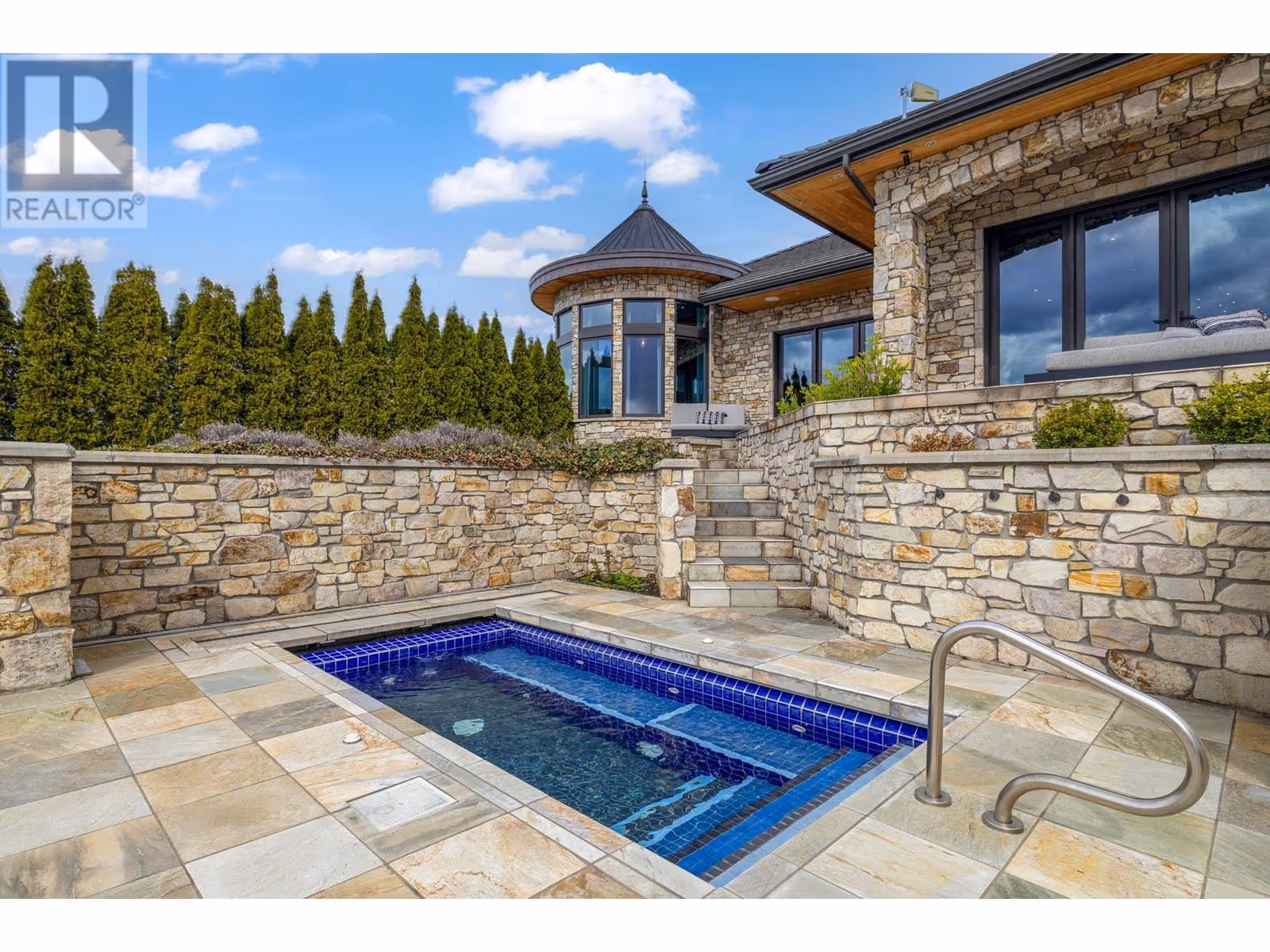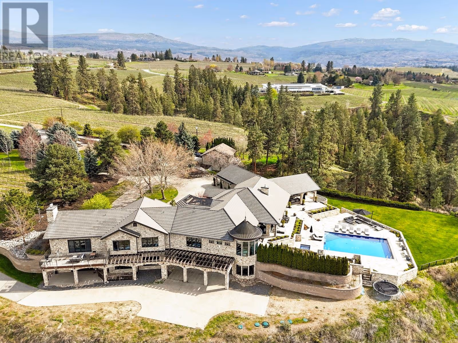 Legacy estate where luxury, privacy, and sophistication converge. Nestled on 10 acres amid 50 acres of vineyard, this 13,000 sq. ft. masterpiece offers breathtaking views from sunrise to sunset. Designed for discerning buyers, this bespoke estate features 4 bedrooms with ensuites and walk-in's, nanny suite, and a standalone 2-bedroom guesthouse. The home features an 8-car interactive garage, a bright gym, his-and-hers pool facilities with laundry, a traditional wine cellar, a theatre, and an elevator. Luxurious touches include five gas fireplaces, a gourmet kitchen, a spacious office with a private balcony, and an outdoor living area with a massive inground pool showcasing panoramic lake views. The primary suite offers a private lounge, pool deck access, his-and-hers closets, laundry, and an unparalleled bathtub view. Amenities include his-and-hers pool facilities, outdoor shower, a grand pool deck, hiking, biking, and riding trails, plus a huge windowed quonset for equipment, storage or hobbies. A paved driveway winds past vineyards, beneath evergreens, and alongside manicured gardens, passing a charming gatehouse to the grand entrance. More than a home, this is a rare opportunity to own a private retreat where every detail enhances life’s finest moments. Schedule your private tour today and experience Okanagan luxury living at its pinnacle. Lower 28-acre property is also available, potential for vineyard facilities, farming, or equestrian use—same listing agent. (id:58842)
