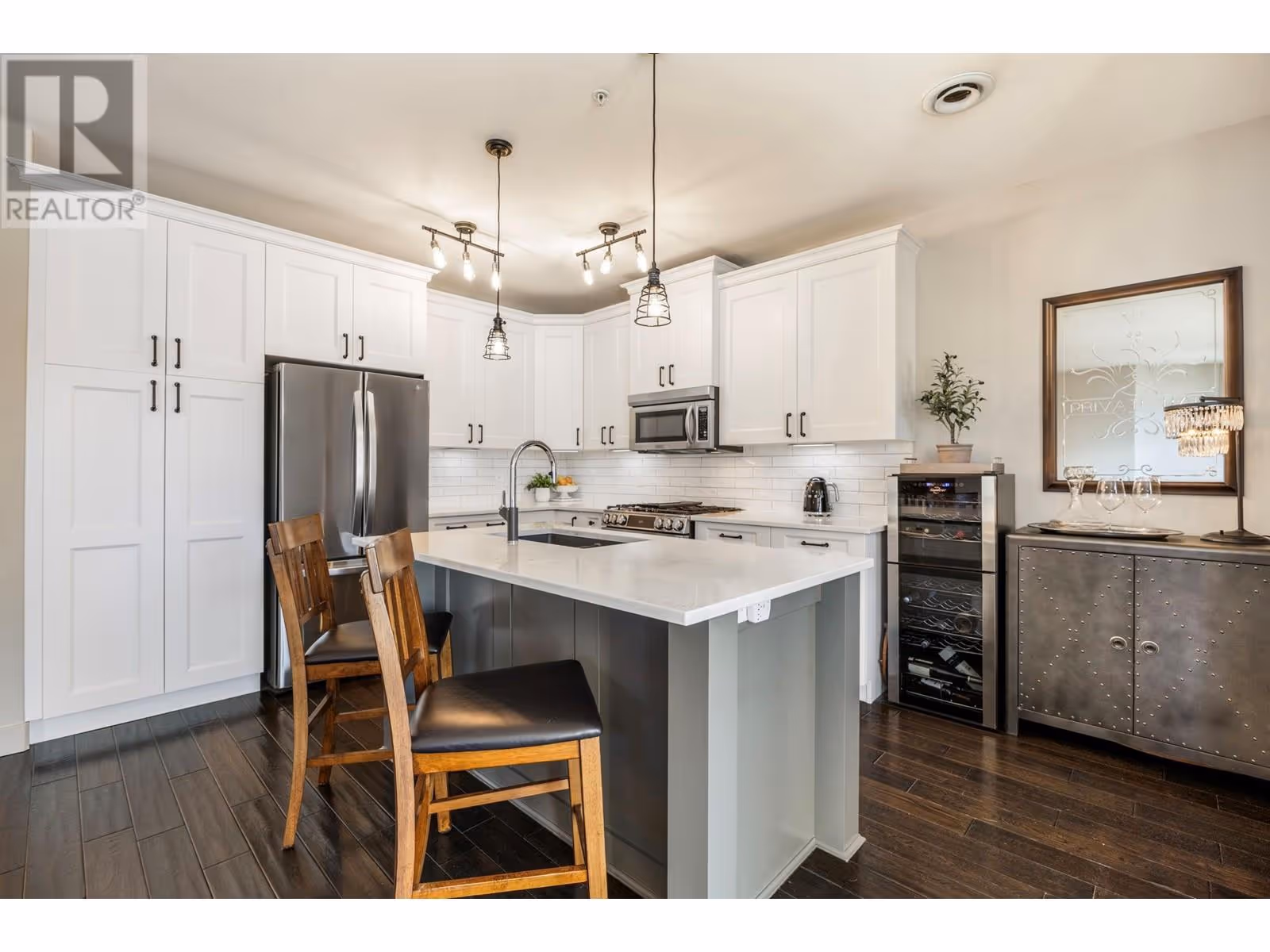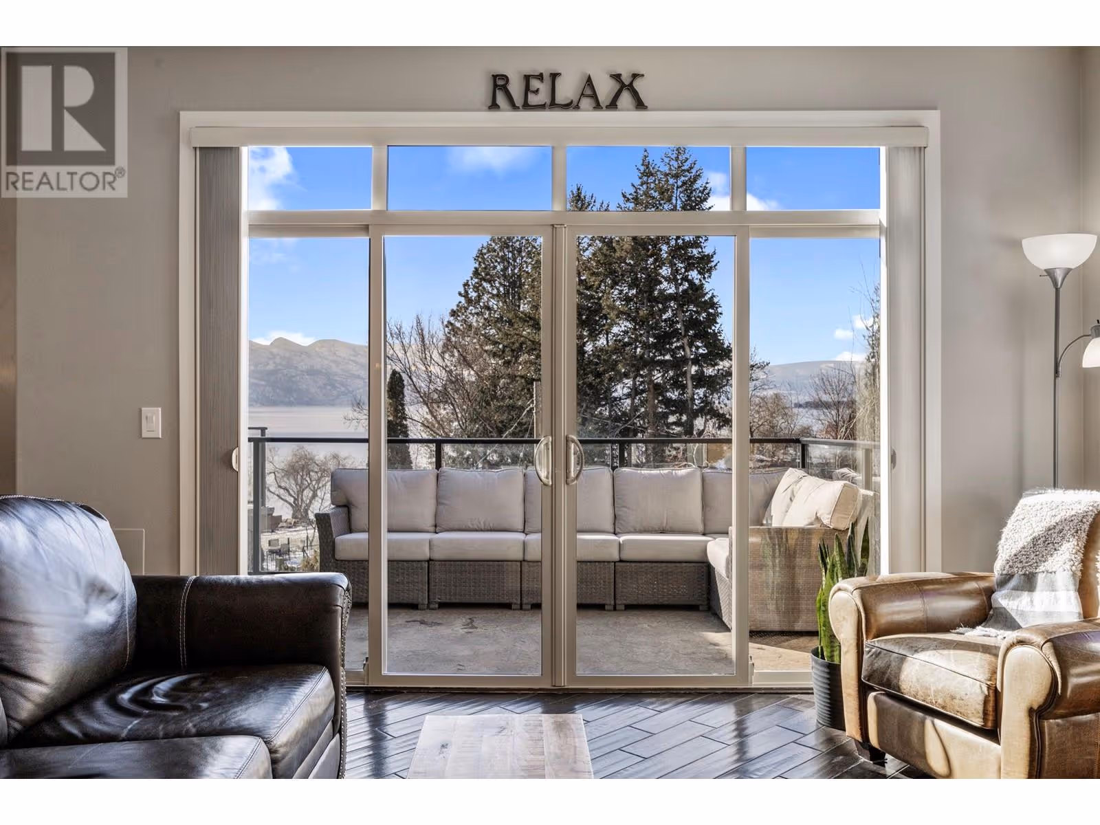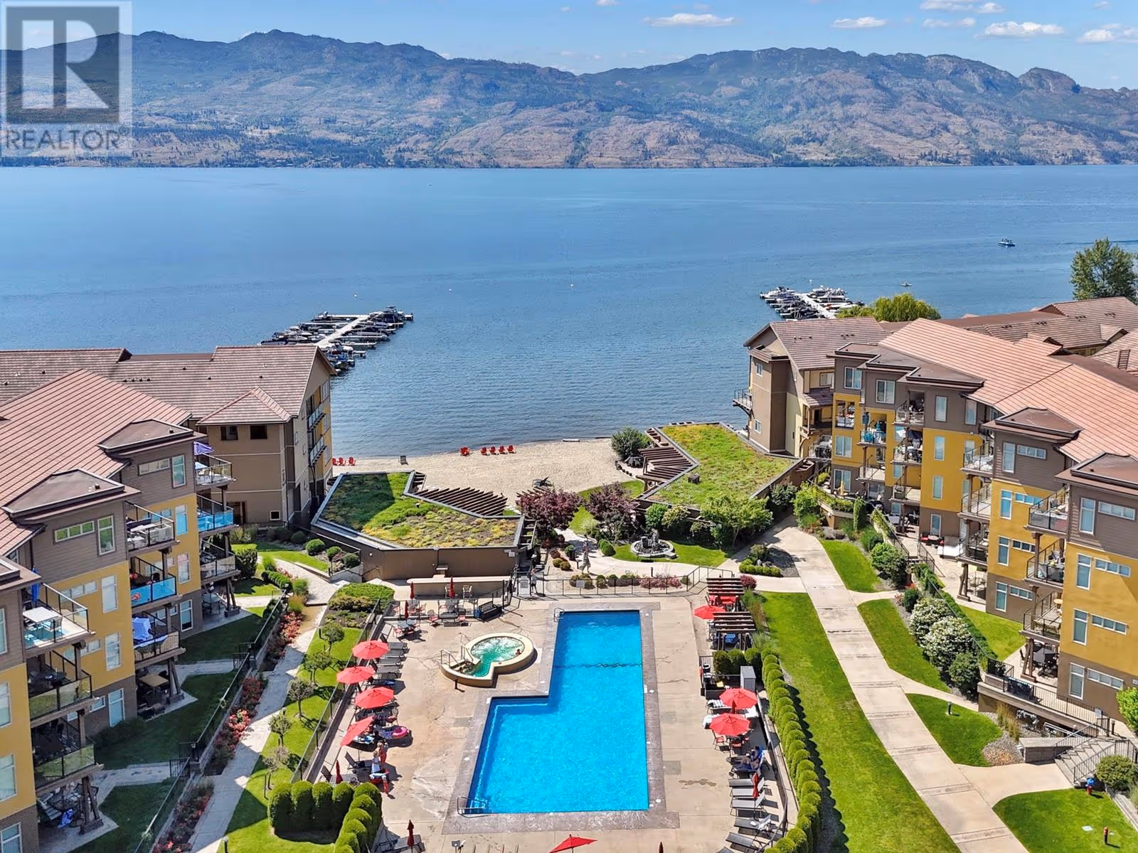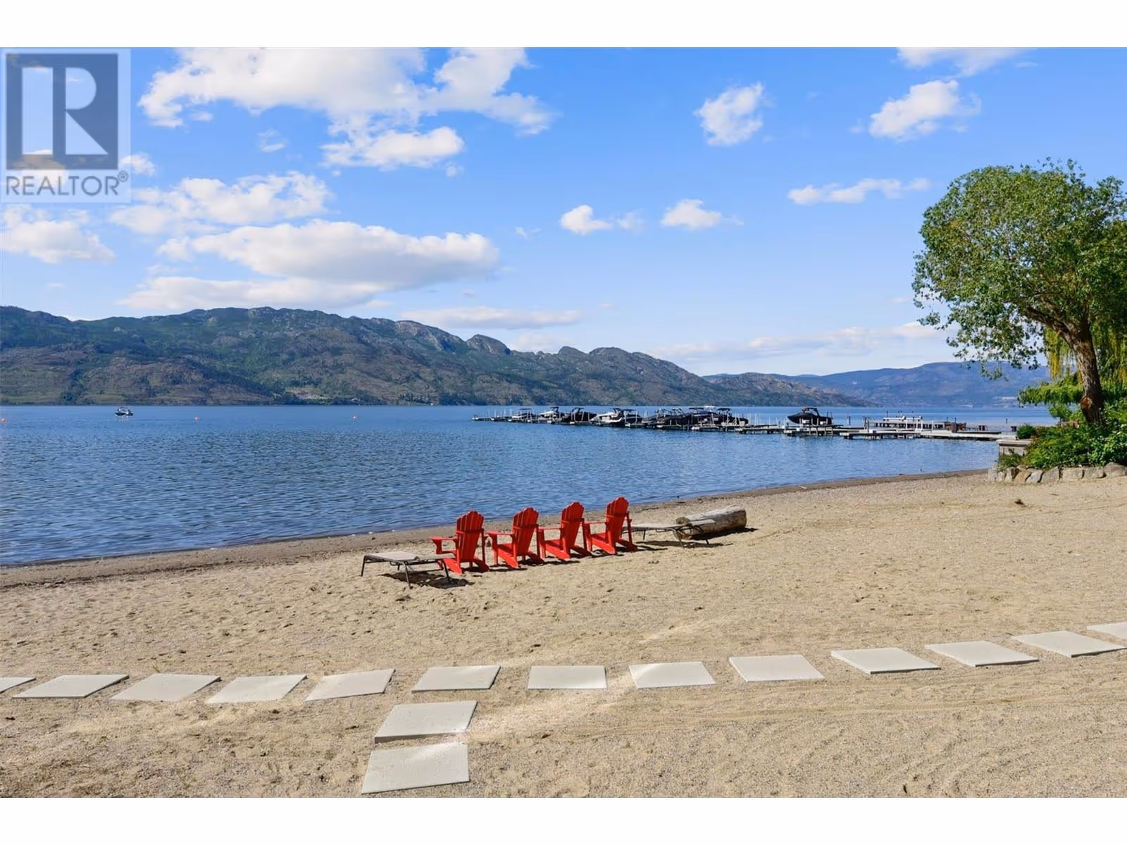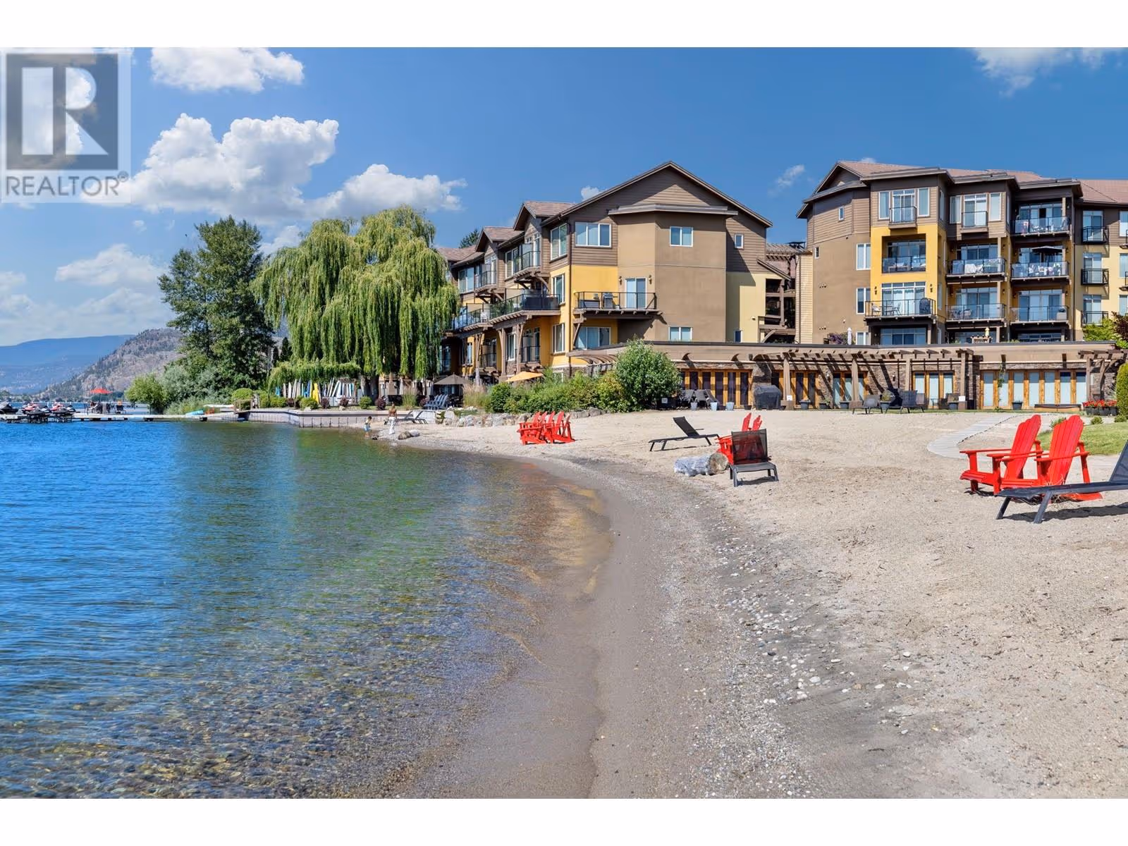 Luxury Beachfront Living & a Rare Short-Term Rental Opportunity! Welcome to Barona Beach Lakefront Resort in West Kelowna. Barona Beach is one of the few condo developments in the region that allows short-term rentals, and is one of the only rental resorts you will find right on the water. This makes it an ideal opportunity for investors, or for those seeking a beachfront resort lifestyle. This exclusive 155-unit community offers 600 feet of private sandy beach, heated pool, hot tub, gym, events room, movie theater, beauty salon, dog park, and community garden to grow your own fruit/veggies. Nestled along the Westside Wine Trail and only a five-minute drive to 17 renowned wineries. Welcome to unit 2303! When you step inside this top-floor, 2bd /2bth unit; you'll be captivated by its highly desirable location in the resort, and the wealth of luxurious upgrades & finishes. Brand-new appliances | updated kitchen cabinets and hardware | Quartz countertops | high-end faucets and door finishings | stylish custom backsplash | new professional painting throughout | custom window blinds | high-end industrial lighting. The spacious and private balcony offers gorgeous views of lush orchards and Okanagan Lake, perfect for sipping your morning coffee in peace, entertaining, or enjoying stunning sunsets on warm Okanagan Summer nights. Don’t miss this rare chance to own a lakefront retreat with investment / revenue potential in one of Kelowna’s most sought-after communities! (id:58842)