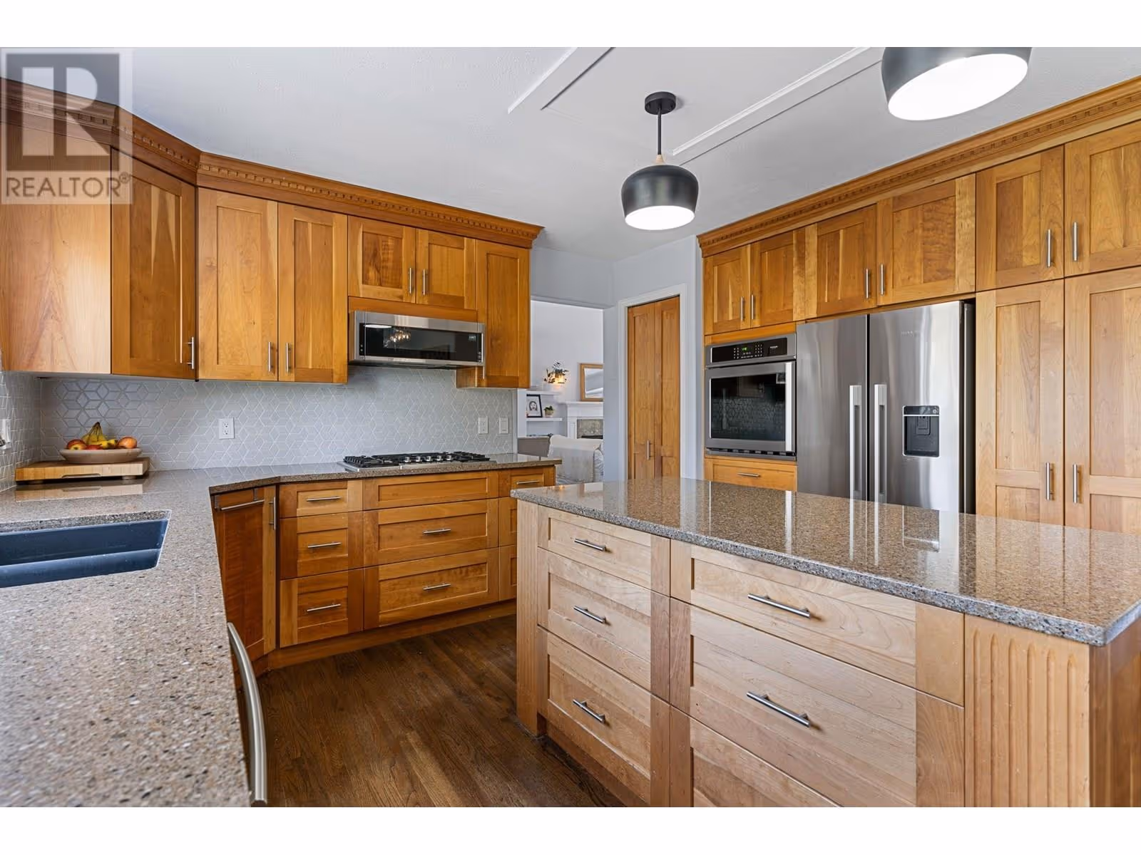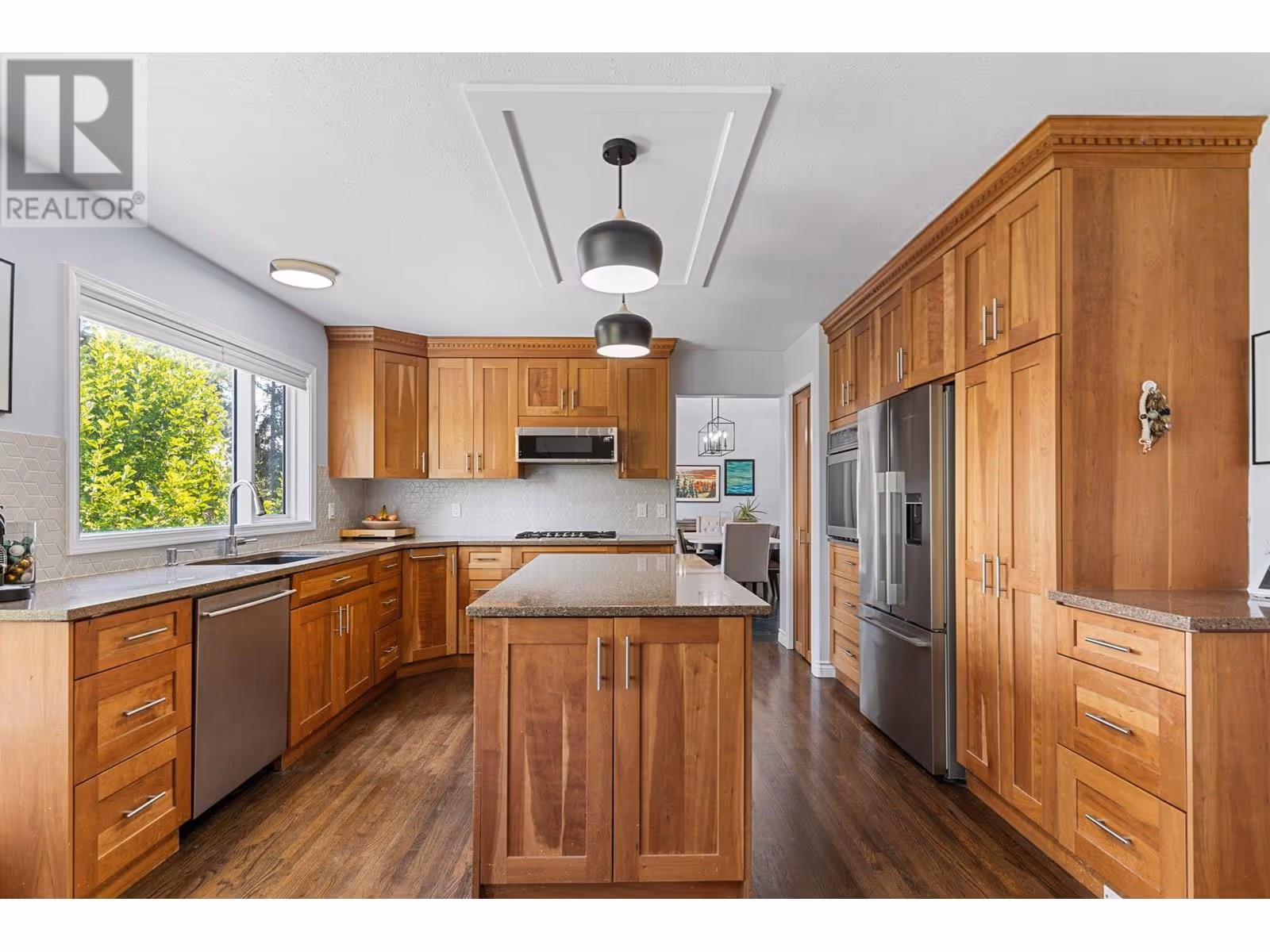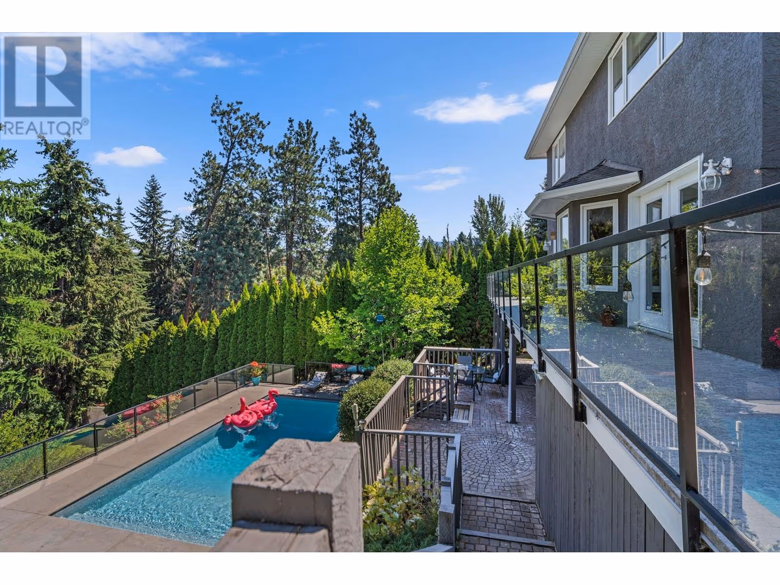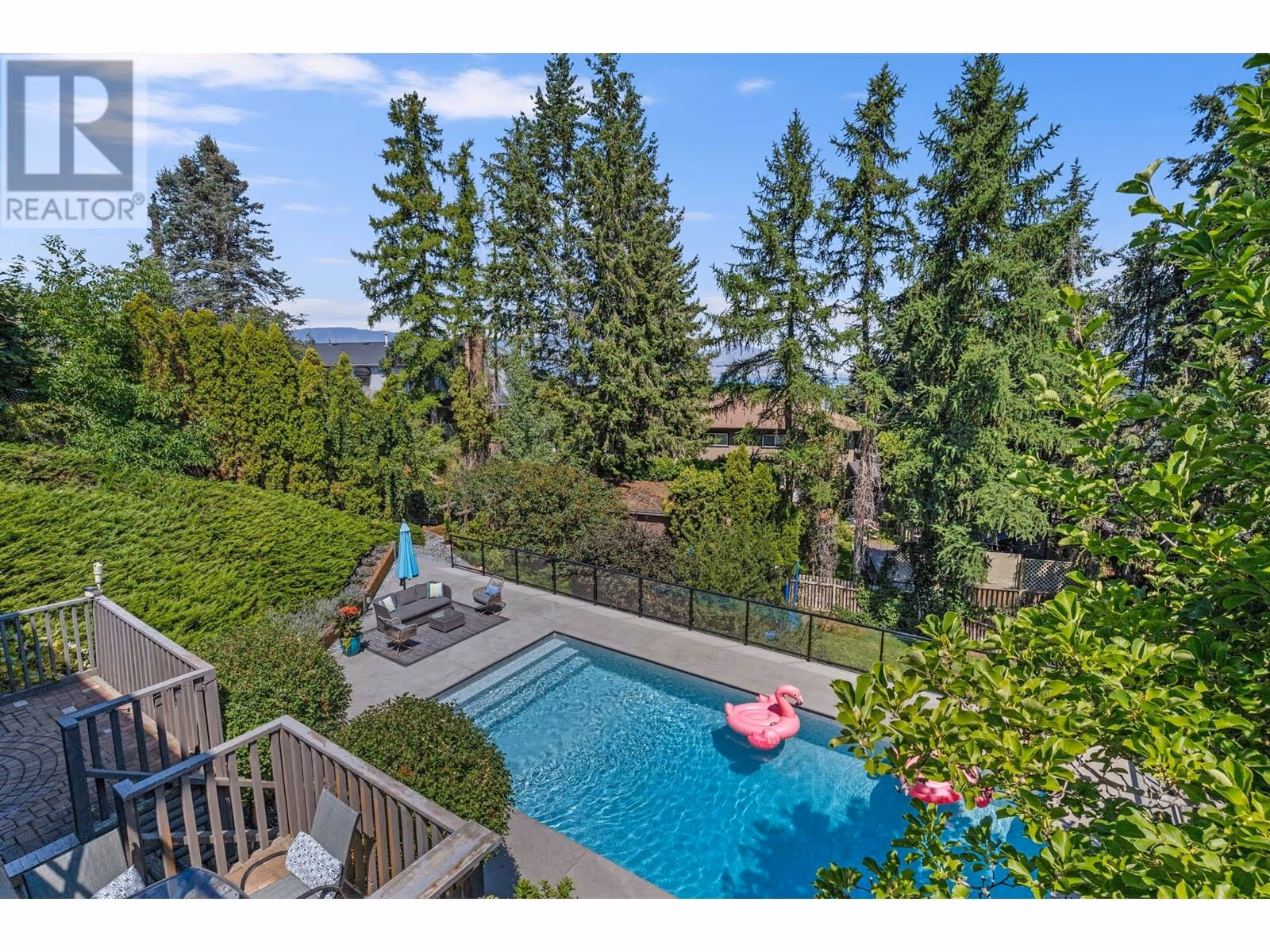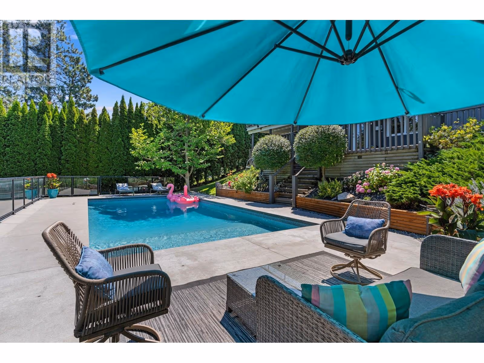 Beautifully updated two-storey plus walk-out basement family home nestled in the desirable neighborhood of Upper Mission, known for its safe streets, and family-friendly atmosphere. You'll love the curb appeal, with lush landscaping, RV parking, and a flat driveway for easy access. Step inside to a grand entryway that opens into a stylish front sitting room and formal dining area, featuring site-finished oak hardwood throughout. The updated kitchen offers stainless steel appliances, ample cabinetry, and a modern design that flows seamlessly into the cozy family room—perfect for everyday living and entertaining. Upstairs are two bright bedrooms, a full 4-piece bathroom plus a large primary suite. The primary suite is a true retreat, with French doors, lake and mountain views, and a fully renovated ensuite featuring dual sinks, a jetted soaker tub, a private toilet room, and a walk-in steam shower. The basement offers versatility—it’s currently set up as a large rec room and guest space, but could easily be converted into a one-bedroom suite. The tiered backyard is a private oasis with mature landscaping and a inground salt water pool, ideal for summer enjoyment and entertaining. Located within walking distance to Chute Lake Elementary, Walking Trails, Parks, Coffee Shop and Restaurant. (id:58842)
