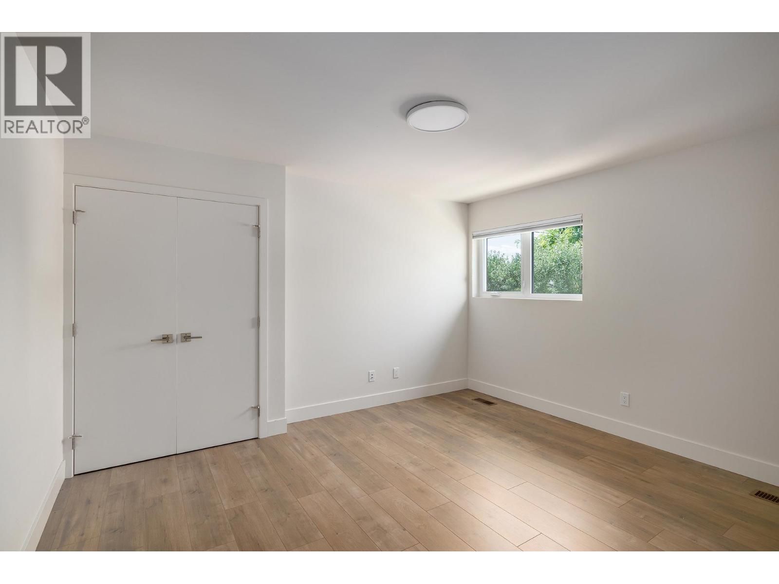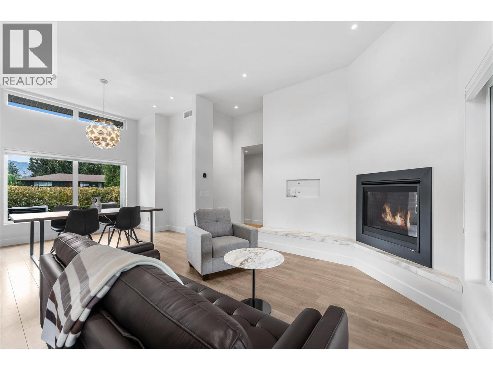 Discover modern living steps to Sarsons Beach. This stunning contemporary residence is nestled in the heart of Kelowna’s coveted Lower Mission and is just a short stroll to the shores of Sarsons Beach. This sleek, single-level home blends modern design with functional living. Thoughtfully designed with 2 bedrooms and 2 bathrooms, this contemporary home features soaring 12-foot ceilings, transom windows, and seamless flow between the open-concept kitchen, dining, and living spaces, perfect for hosting gatherings. The kitchen is equipped with soft-close cabinetry, granite countertops, a large walk-in pantry, and a centre island with seating for two — ideal for everyday living or entertaining. Step outside to your private front patio, beautifully framed by mature hedging, or unwind in the large, grassy backyard complete with a covered patio and natural gas hookup. The primary suite offers a spacious walk-in closet and a 4-piece ensuite with heated tile floors. Additional highlights include a single-car garage with a storage nook, large crawl space, and efficient systems including a Trane furnace, central air conditioning, and on-demand hot water. Located in a quiet, sought-after neighbourhood near top schools, parks, and the lake, this home offers timeless appeal in one of Kelowna’s most desirable settings. (id:58842)