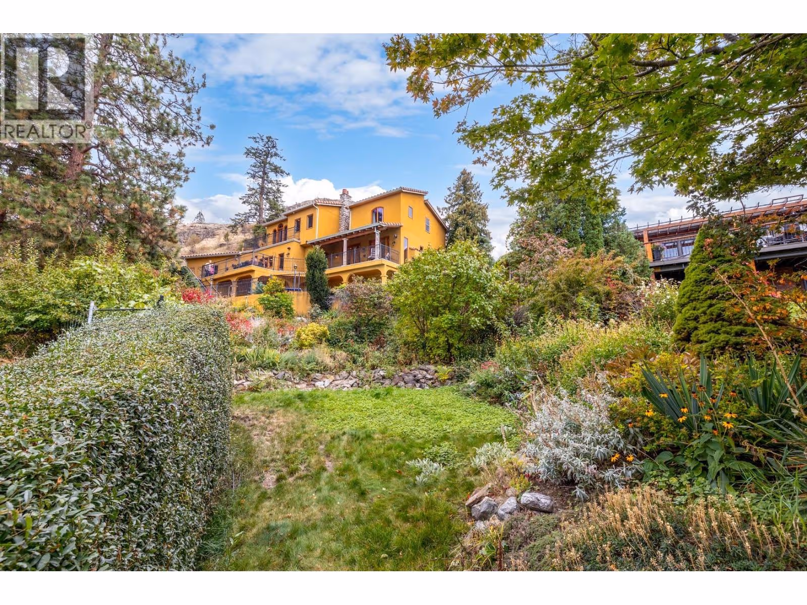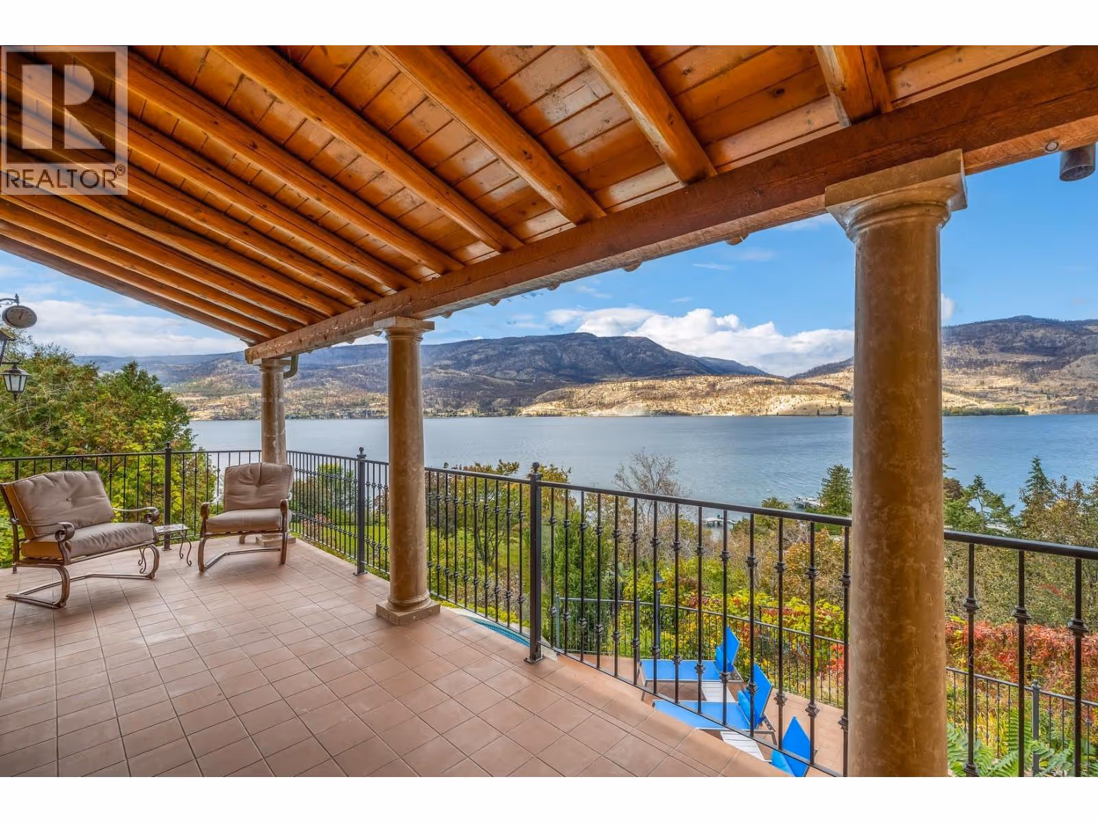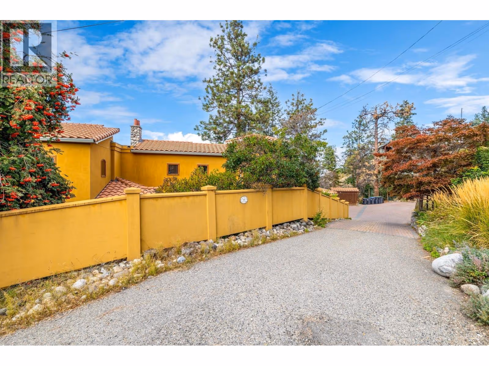 Welcome to this Mediterranean-inspired home in Poplar Point, the best uninterrupted views of Okanagan Lake and surrounding mountains. With 4 bedrooms and 4 baths across three levels, this property combines timeless design, and privacy in a highly desirable location just minutes to downtown Kelowna. The main level impresses with high ceilings, maple hardwood floors, and expansive wood-casement windows framing Okanagan Lake. The chef’s kitchen features stone countertops, Viking gas cooktop, Gaggenau wall oven, Sub-Zero fridge, and a central island perfect for entertaining. A formal dining room with a brick-surround fireplace and direct courtyard access complements the living room, where double French doors open to a lakeview deck. Upstairs, the primary retreat offers a private balcony, walk-in closet, and spa-style ensuite with an oversized tub and dual-head shower. A guest room with Murphy bed, 3-piece bath, and laundry complete the level. The walk-out lower floor offers a self-contained 1-bedroom + den suite with private kitchen, living area, and direct pool access—perfect for extended family or guests. Outdoors, multiple patios, lush landscaping, and a kidney-shaped pool set the stage for summer gatherings. Nestled on a quiet cul-de-sac, just steps from Knox Mountain’s hiking and biking trails and minutes to the lake, this property offers an ideal setting to enjoy Okanagan living at its finest. (id:58842)