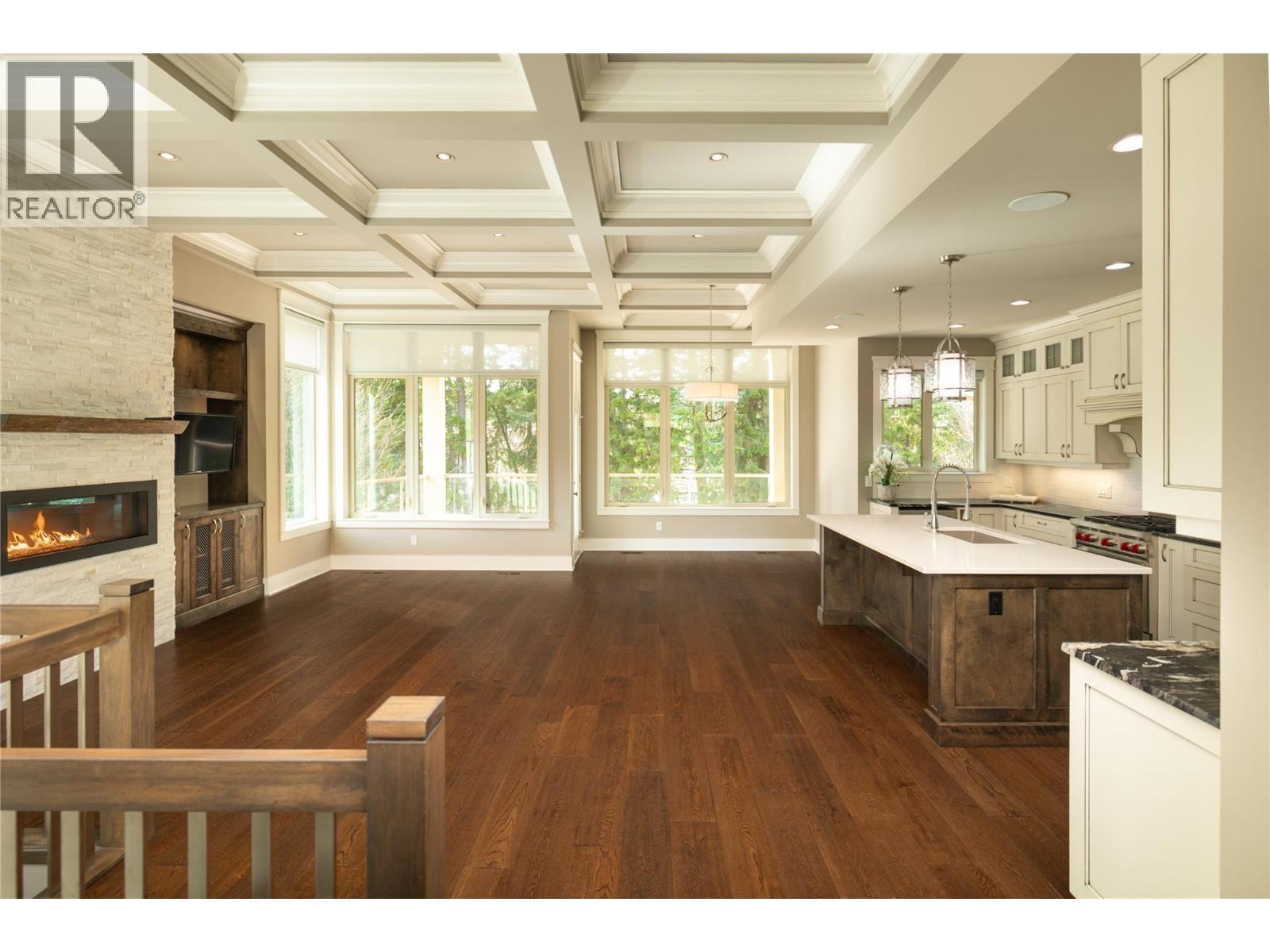 Set within the sought-after community of Gallaghers Canyon, this beautifully finished home offers timeless design, thoughtful upgrades, and a private setting surrounded by mature greenery. Striking curb appeal with stone and Hardie siding, a covered entry, and a charming front patio welcomes you in. Inside, tall ceilings and coffered detailing create a refined feel throughout. The kitchen blends style and function with classic white cabinetry, large island, Wolf range, and walk-in pantry. The living room centres around a floor-to-ceiling stone fireplace with custom built-ins, while a main floor office/den with custom ceiling detail adds versatility. The primary suite is a true retreat with crown moulding accents, designer wallpaper, and a well-appointed ensuite featuring dual sinks, a soaker tub, and walk-in shower. Cohesive cabinetry and finishes carry throughout the home. The lower level is designed for entertaining, offering a spacious recreation area, family room with built-ins, and a stunning wet bar with storage. Walk out to a covered patio overlooking private, lush greenspace. Two additional bedrooms and a full bathroom complete the space. Low-maintenance landscaping, built-in speakers, and electric blinds add to the home’s comfort and convenience. Enjoy the Gallaghers lifestyle with access to golf, fitness centre, indoor pool, tennis courts, clubhouse, and scenic walking trails—just minutes from everyday amenities. (id:58842)