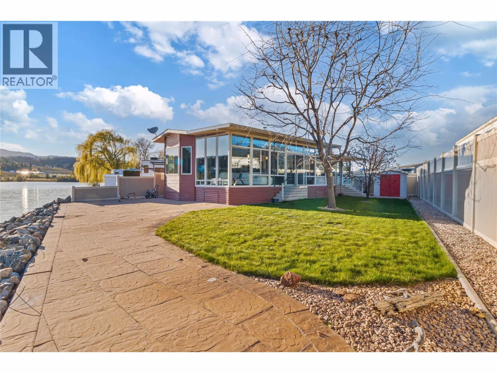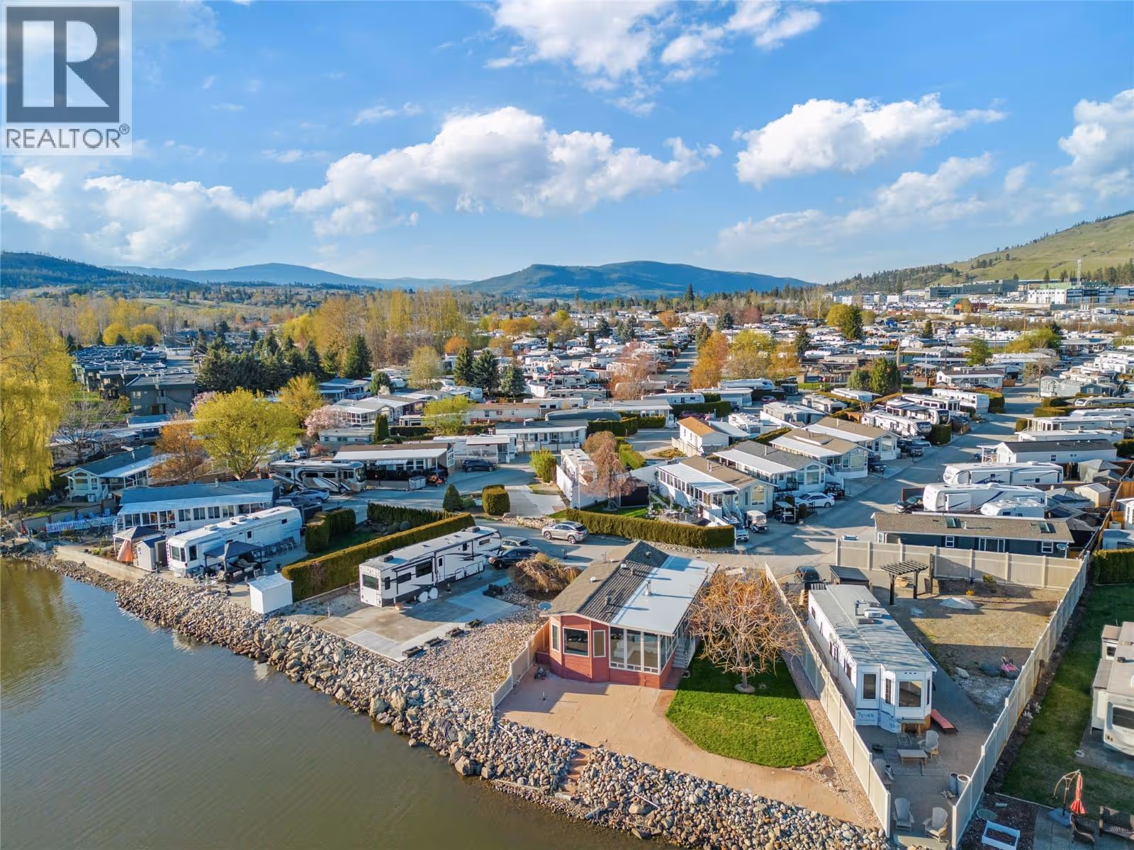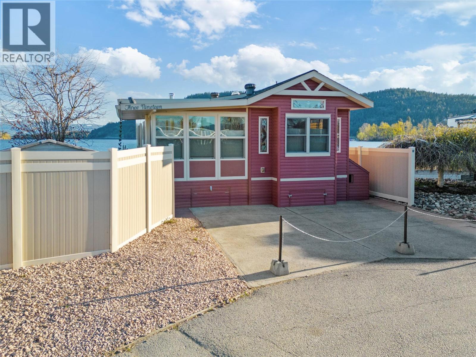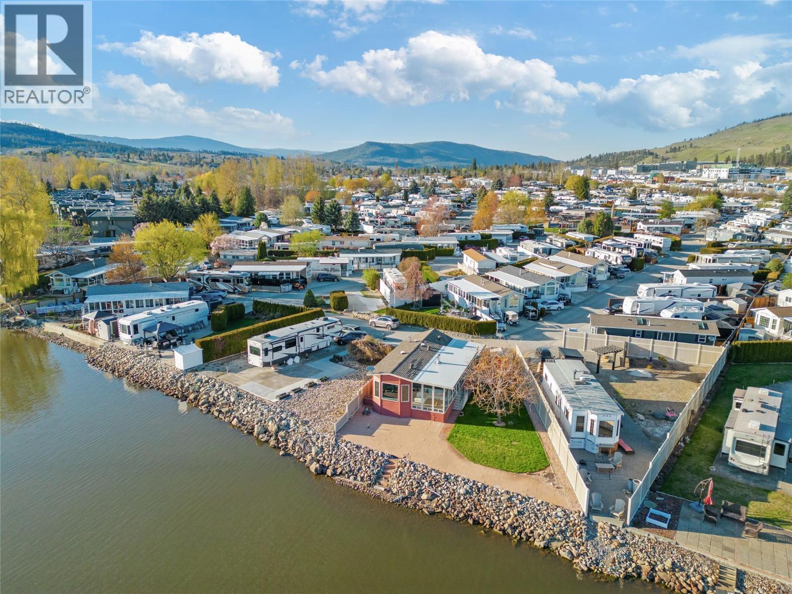 WATERFRONT AND MOUNTAINS Panoramic view! #319, 415 Commonwealth Road Kelowna BC (Holiday Park Resort), Winner of 4 Thompson Okanagan Housing Awards. This custom built home (2012) has all possible luxury features you can dream of: 9ft vaulted ceiling, porcelain tiles, cherrywood cabinets (with soft close) and finishes throughout, lux laminate flooring, 42 inch Malm Gas Carousel Fireplace, Backsplash, Silestone Quartz counters, Solar tubes in 3 locations and much much more! One level living is perfect fit for elderly owners. As per Systems in the house: Watersoft B.C. Econominder Water softener, Counter top faucet, U.V. Reverse Osmosis drinking water. One of the largest lot in the park offers Private Landscaped property with stone lakefront patio, unobstructed lake and mountain views facing south best exposure you can get. Fully fenced for your pets safety. Lawn and flower pot irrigation/sprinklers. 2 spacious parking for cars and your golf cart. Shed for your tools. Lease term to 2046. Annual maintenance fee for 2025 is $5188 including water, sewer, all park amenities with year round activities! NO Property Transfer Tax! Any Rental allowed (with park approval)! Golf courses, award winning wineries, world class ski hills (Big White and Silver Star). Resort offers 2 outdoor swimming pools, one inside pool, tennis & pickle ball, gym, hot tubs, billiards, 6 hole Par 3 Golf Course! What better lifestyle can you get? (id:58842)