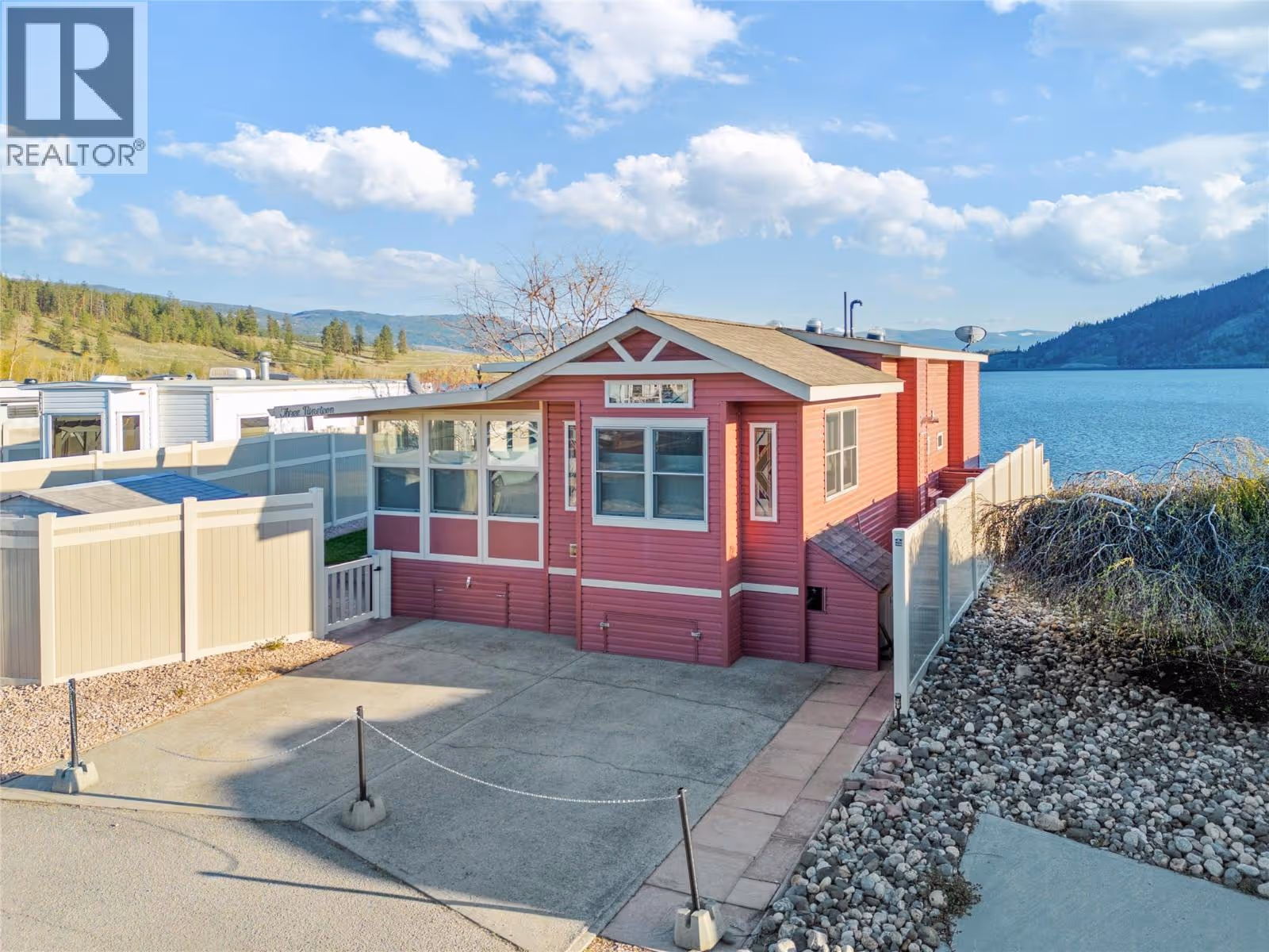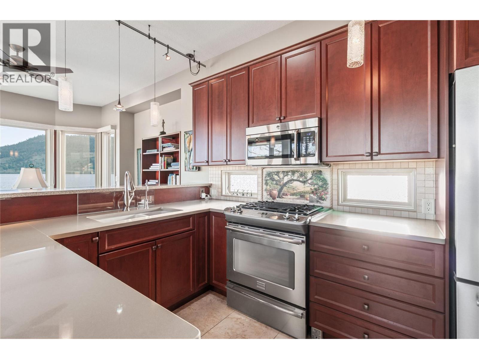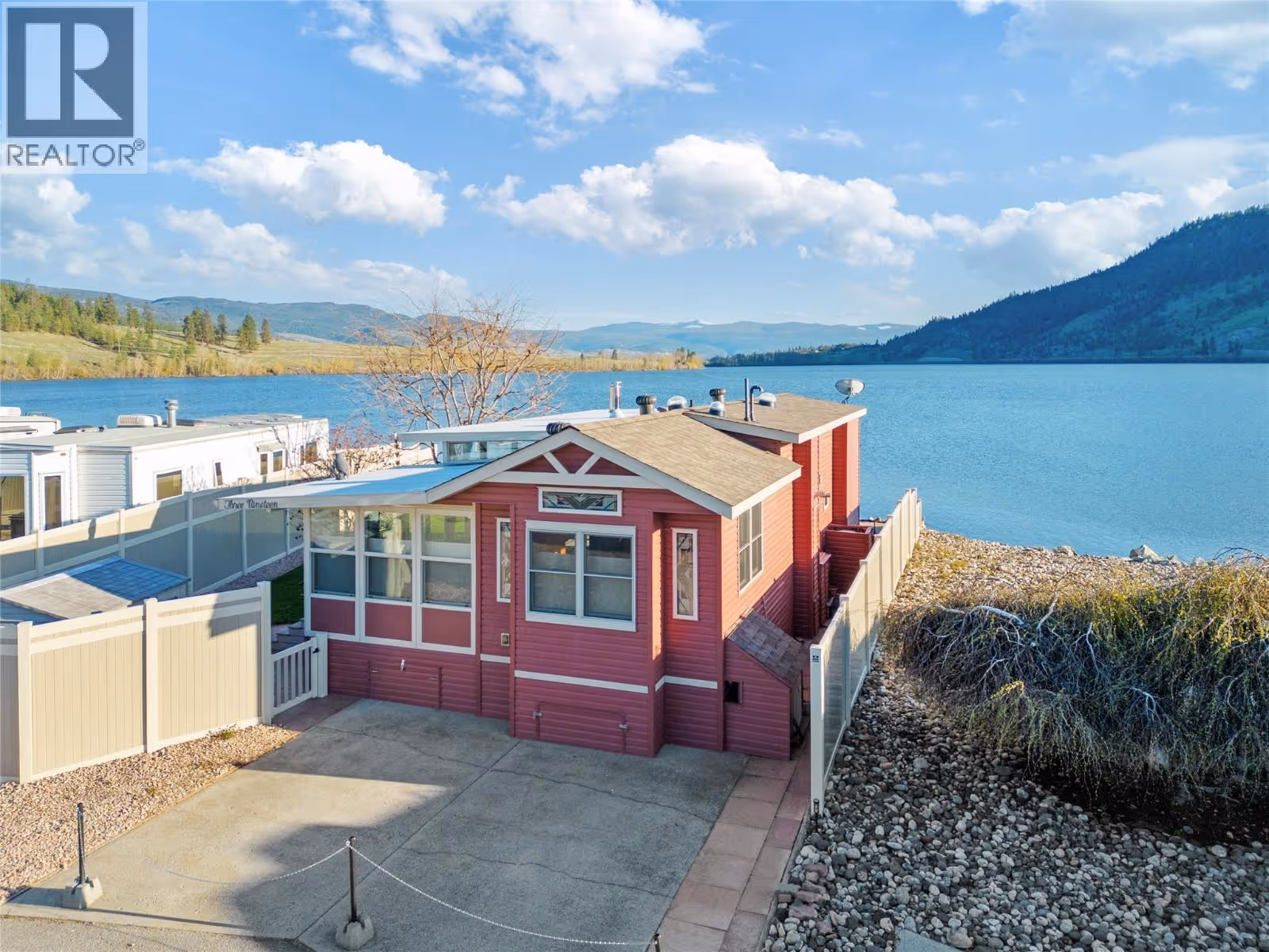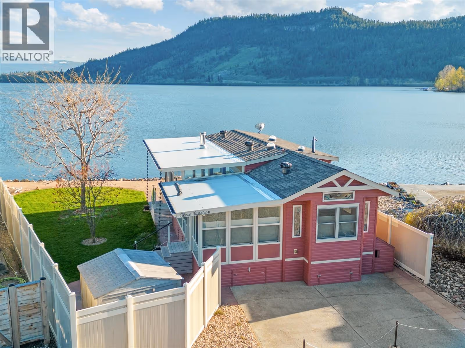 WATERFRONT AND MOUNTAINS Panoramic view! #319, 415 Commonwealth Road Kelowna BC (Holiday Park Resort), Winner of 4 Thompson Okanagan Housing Awards. This custom built home (2012) has all possible luxury features you can dream of: 9ft vaulted ceiling, porcelain tiles, cherrywood cabinets (with soft close) and finishes throughout, lux laminate flooring, 42 inch Malm Gas Carousel Fireplace, Backsplash, Silestone Quartz counters, Solar tubes in 3 locations and much much more! One level living is perfect fit for elderly owners. As per Systems in the house: Watersoft B.C. Econominder Water softener, Counter top faucet, U.V. Reverse Osmosis drinking water. One of the largest lot in the park offers Private Landscaped property with stone lakefront patio, unobstructed lake and mountain views facing south best exposure you can get. Fully fenced for your pets safety. Lawn and flower pot irrigation/sprinklers. 2 spacious parking for cars and your golf cart. Shed for your tools. Lease term to 2046. Annual maintenance fee for 2025 is $5188 including water, sewer, all park amenities with year round activities! NO Property Transfer Tax! Any Rental allowed (with park approval)! Golf courses, award winning wineries, world class ski hills (Big White and Silver Star). Resort offers 2 outdoor swimming pools, one inside pool, tennis & pickle ball, gym, hot tubs, billiards, 6 hole Par 3 Golf Course! What better lifestyle can you get? (id:58842)