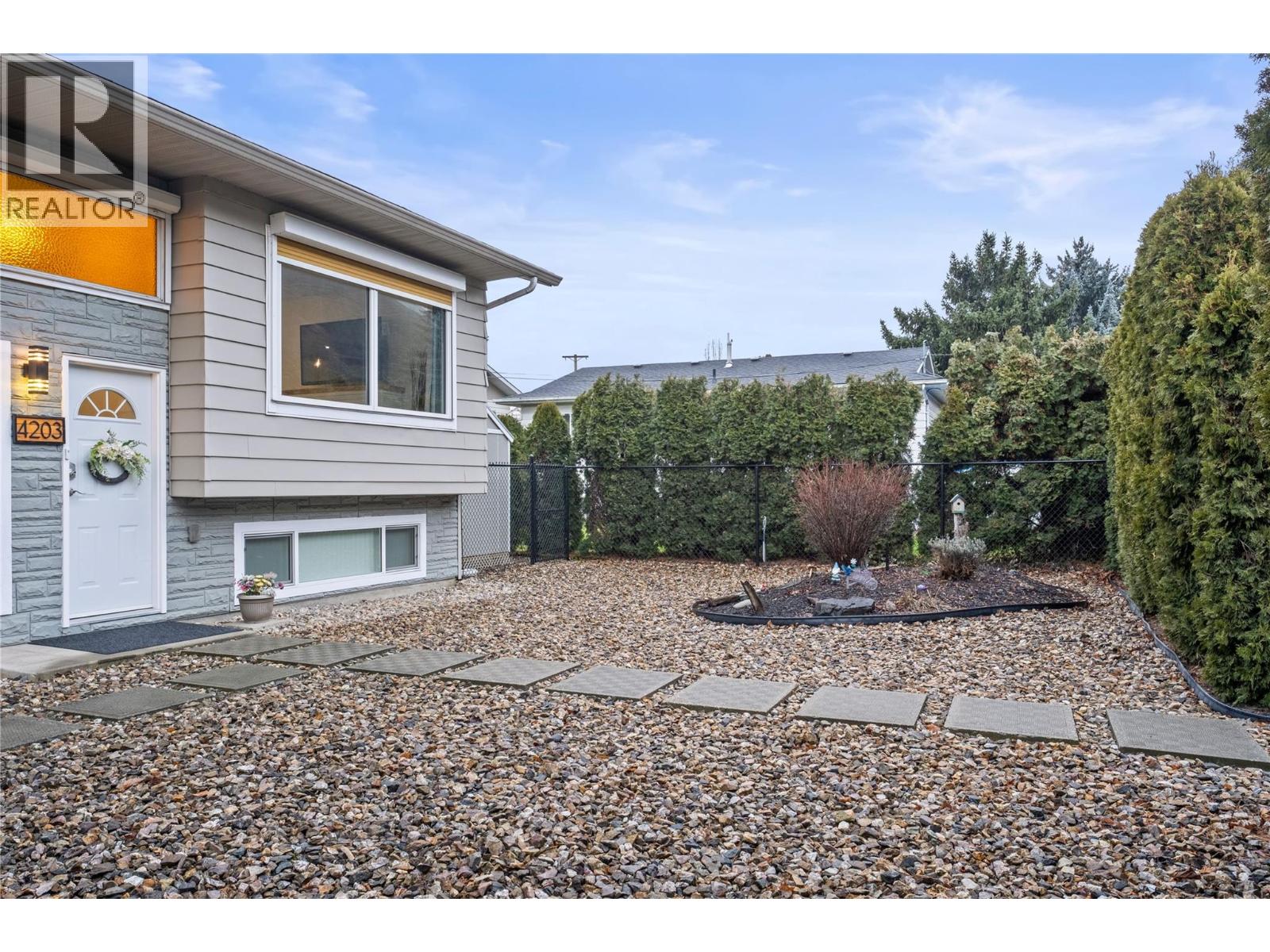 Welcome to 4203 Alexis Park Drive, a thoughtfully renovated home offering flexibility, comfort, and low-maintenance living in a well-located Vernon neighbourhood. This property features two fully self-contained living spaces, ideal for extended family, rental income, or those seeking a mortgage helper, while still functioning as a single cohesive residence. Both levels have been extensively updated with modern kitchens, in-suite laundry, quality finishes, and excellent separation between living areas. Outside, enjoy low-maintenance, xeriscaped landscaping, irrigation, and newer fencing, along with a wired 10’ x 12’ workshop and a separate 6’ x 8’ wooden storage shed, providing valuable space for equipment, hobbies, or additional storage. The location supports an active and convenient lifestyle. The home is within walking distance to the new Recreation Centre, the Grey Canal trail system, Alexis Park Elementary School, shopping, restaurants, and transit, with Swan Lake Bird Sanctuary just minutes away. Easy access to parks, trails, and daily amenities makes this an ideal spot for those who value both convenience and outdoor recreation. With major upgrades already completed and a strong rental component in place, this is a turnkey opportunity offering versatility, income potential, and long-term value in an established Vernon neighbourhood. (id:58842)