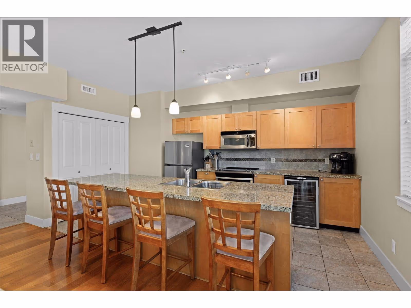 BEST BANG FOR YOUR BUCK! OVER 2000 SQFT FOR UNDER $1M | SHOP AND COMPARE VALUE | 3 SUITES IN ONE | 3 KITCHENS | 3 BEDROOMS+DEN | 4 BATHROOMS | 3 DOORS | ONE OF A KIND OPPORTUNITY! Discover an exceptional opportunity to own over 2,100 sq. ft. of versatile living space with 3 SELF CONTAINED SUITES! Perfect for multiple families, multi-generational living, or investors. Enjoy all the amenities at your doorstep—dine at the onsite restaurant, THE LANDING, unwind at the SPA, hit the TENNIS COURTS, putting greens, take a dip at the SWIMMING POOLS, or head out for a paddle board from the SANDY BEACH. There is also a gym, theatre, and owners' lounge. A true lock-and-leave lifestyle with zero stress! Suite 301 is the primary residence, offering one bedroom plus den(or 2nd bedroom) configurations, a spacious open-concept layout, 5pc ensuite, and a covered patio with beautiful CITY, MOUNTAIN, VINEYARD views. Suite 301A adds a formal entry, an additional bedroom, a GALLERY STYLE kitchen, FULL BATHROOM and comfortable living space. Suite 301B mirrors the charm with its own open-concept design, bedroom with access to a second outdoor DECK area, plus a full bathroom featuring a walk-in shower coupled with another gallery style kitchen. Have the best of both worlds - summer vacation time subsidized by rental pool income! Heating/cooling & and resort amenities included in your strata fee. This is your chance to own a piece of Okanagan paradise. (id:58842)