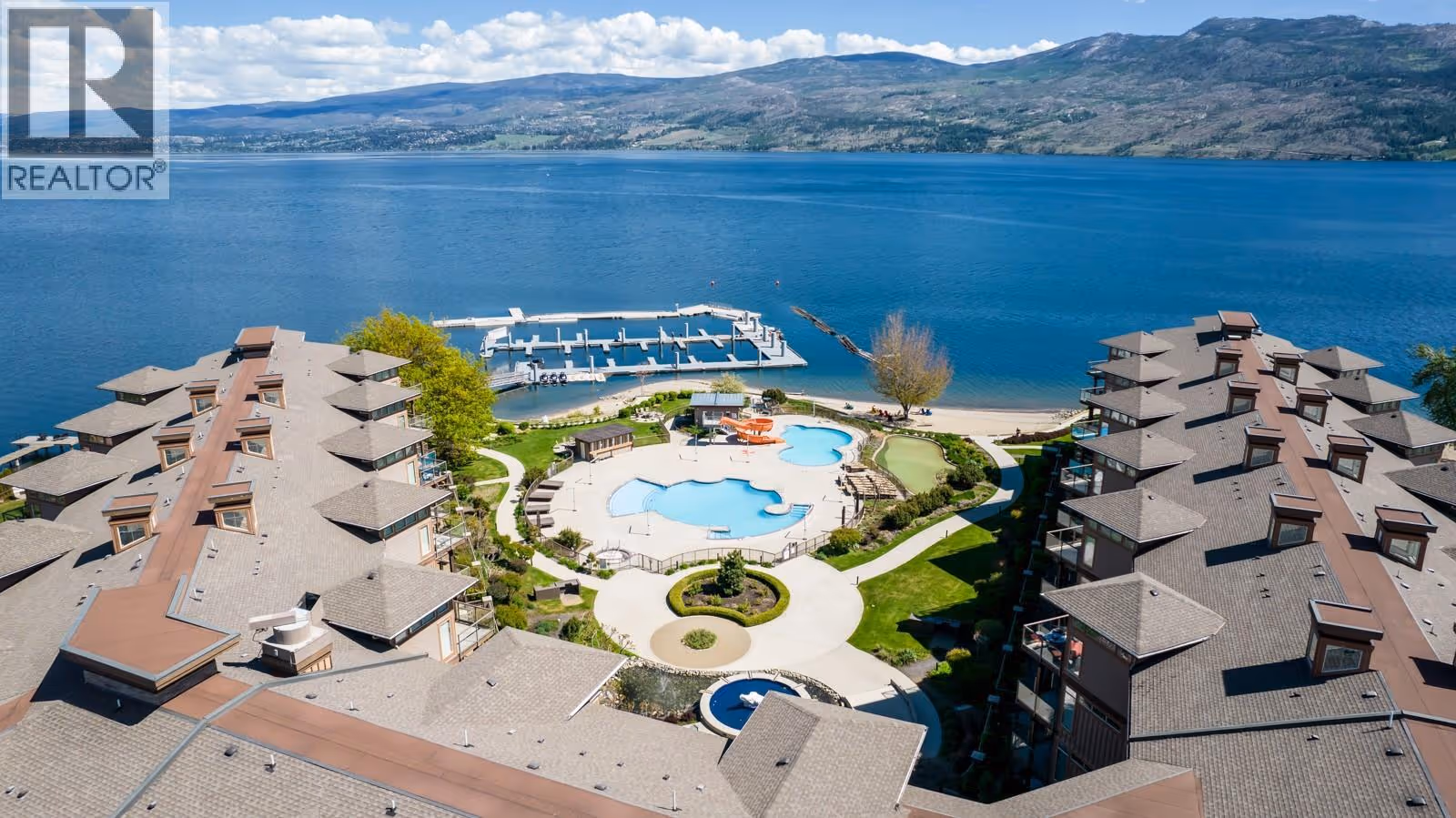 Indulge in the ultimate lifestyle with this extraordinary opportunity to claim your oasis at the finest Lakefront Resort in the Okanagan! Picture yourself waking up to a breathtaking sunrise as you sip your morning coffee on your expansive covered balcony, all while soaking in the stunning views of the LAKE. Marvel at the panoramic scenery, featuring horse pastures, Mt. Boucherie, and the picturesque Gellatly Bay. This rare floor plan offers a thoughtfully designed split bedroom layout, with a spacious primary bedroom featuring its own private deck. The second bedroom comes with a convenient cheater 5pc ensuite. The open concept living space encompasses a full kitchen, dining area, and living room, creating the perfect setting for entertainment. Step through French double doors that lead to a second covered deck, enhancing the indoor-outdoor living experience. The kitchen is a chef's delight, boasting granite countertops, maple cabinetry, and NEWER appliances. #304 participates in the professionally managed rental pool, offering you an opportunity to generate revenue and offset carrying costs! Enjoy access to world-class amenities such as pools, hot tubs, a sandy beach, marina, community park, spa, the acclaimed Landing Restaurant, wineries, lake activities, tennis, golf, and more. Situated on irreplaceable Lakefront acreage, this property includes a private beach adjacent to a historic nut farm. Your rare chance to own an upscale fully furnished condo in the Cove. (id:58842)