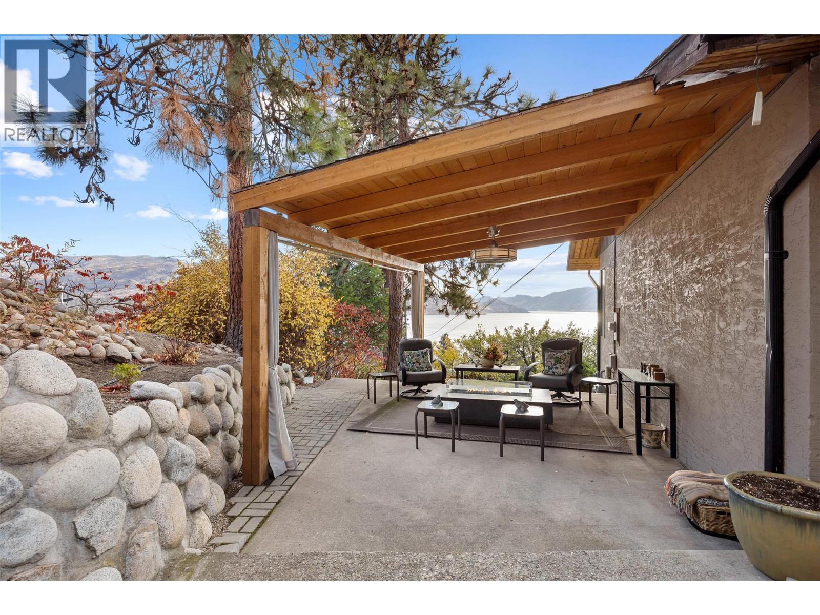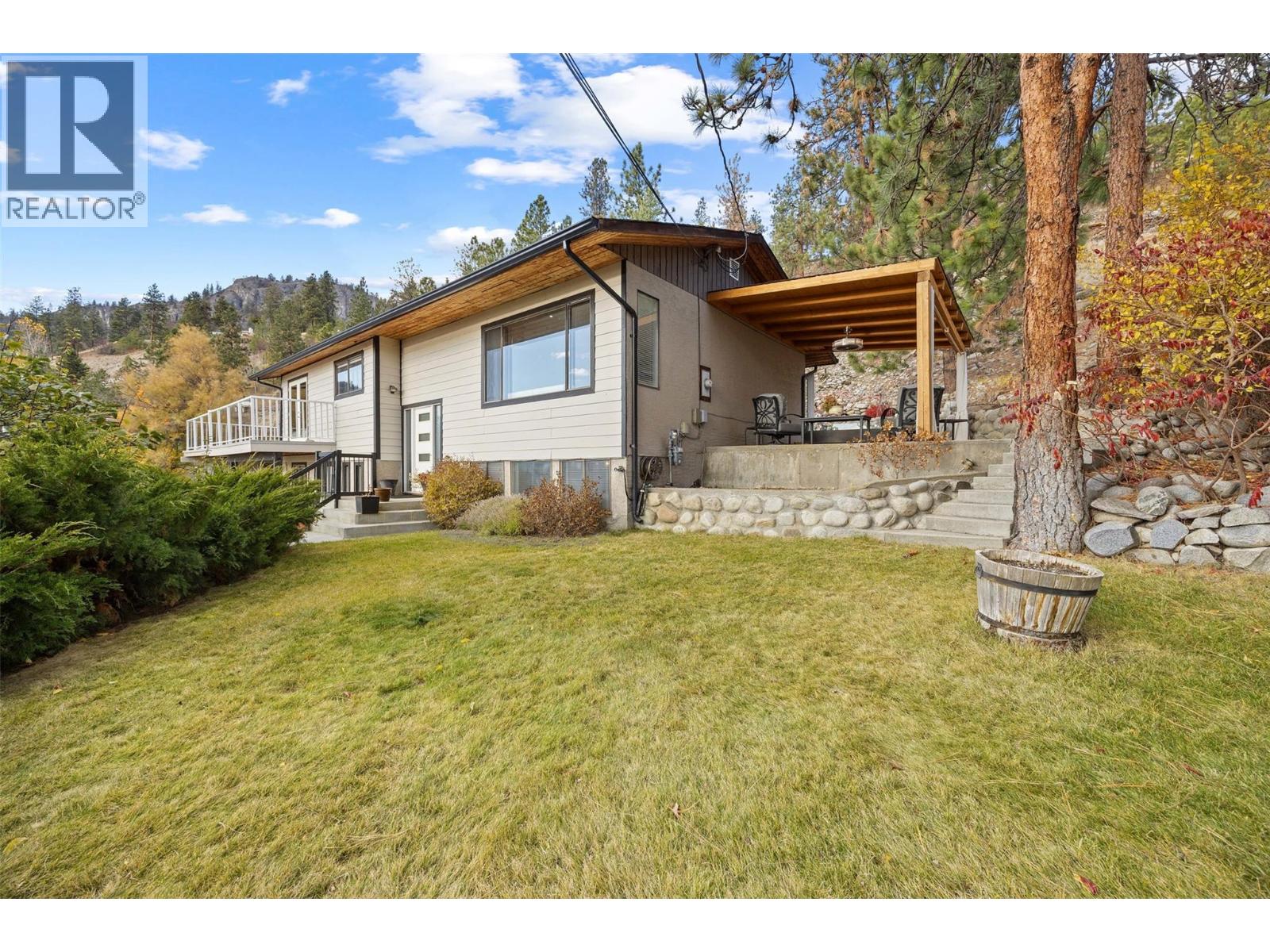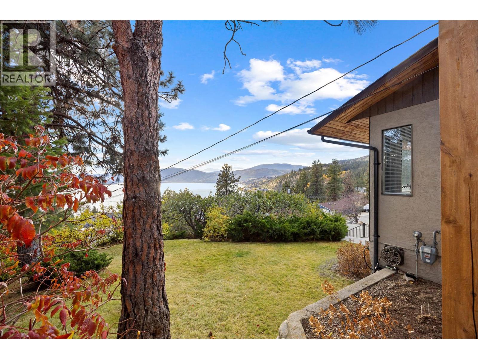 Nestled in the hills of Peachland, this 4-bedroom, 3-bath home captures outstanding views of Okanagan Lake and the surrounding mountains. Designed for the Okanagan lifestyle, this home features three distinct outdoor living spaces: a spacious lakeview deck with newer vinyl and glass railings to take in the endless views, a stone patio perfect for outdoor dining and entertaining, and a private side-yard retreat surrounded by gardens, greenery and views ~ ideal for quiet mornings or playtime with pets The main floor is bright and inviting, highlighted by hardwood flooring, skylight, and an updated kitchen with island that flows seamlessly into the open-concept dining and living areas. Double doors from the dining room open onto the stone patio, creating effortless indoor-outdoor living. The primary bedroom offers lake views, deck access, and a 3-piece ensuite, while a second bedroom and main bath with a soaker tub complete the main level. The lower level adds flexibility with a family room, two additional bedrooms, and a separate entrance ~ perfect for guests, a home office, or a potential suite. All of this is just minutes from Peachland’s vibrant Beach Avenue, where you can enjoy coffee shops, restaurants, pubs, beaches, and the scenic lakefront promenade. Whether you’re sipping morning coffee on the deck or dining under the stars, this home delivers the perfect blend of privacy, comfort, and true Okanagan living. (id:58842)
