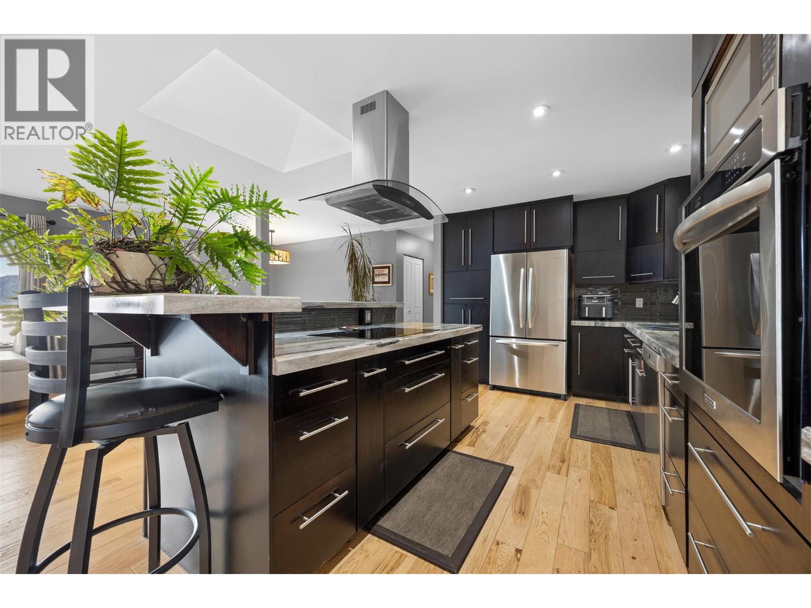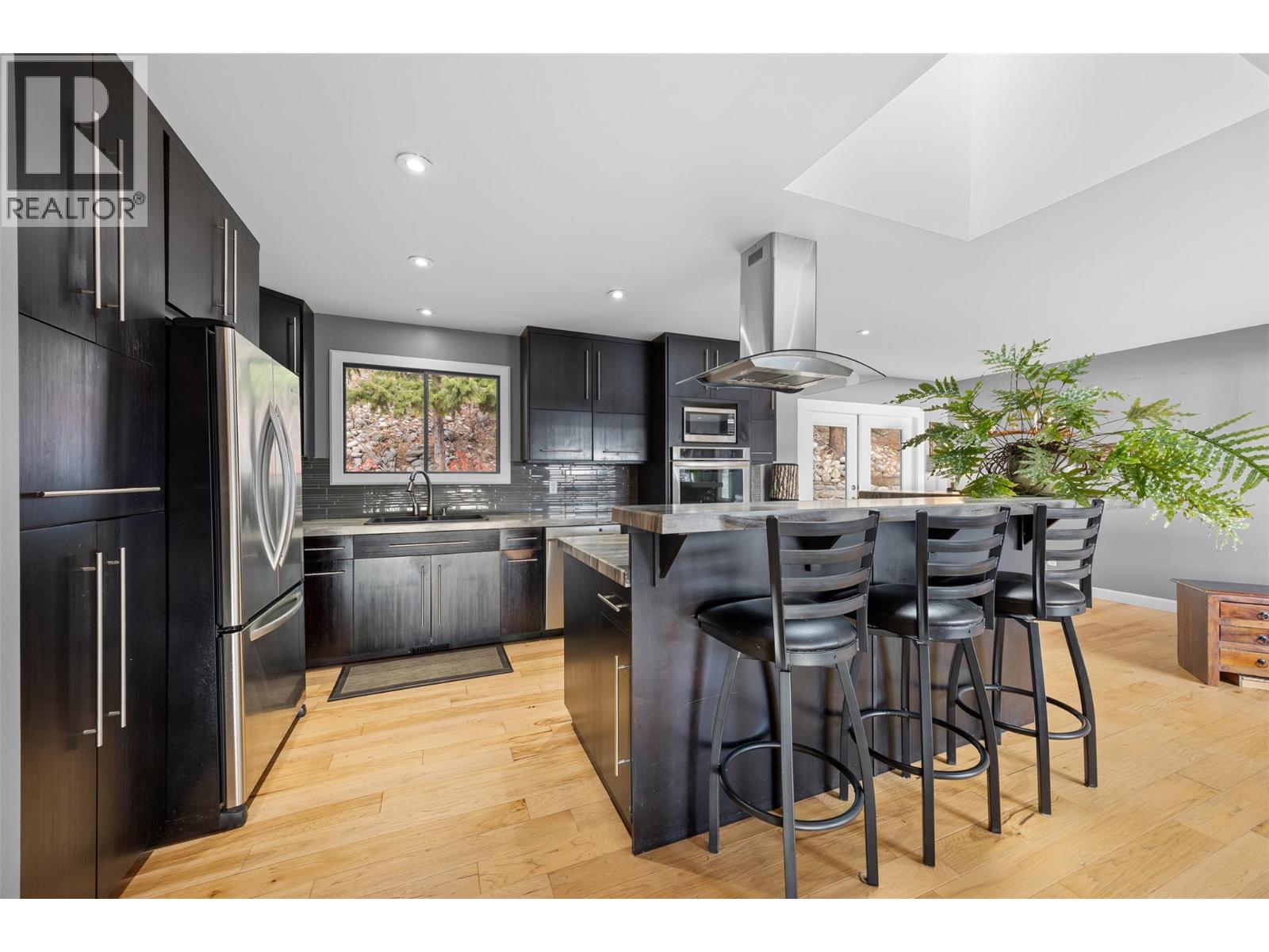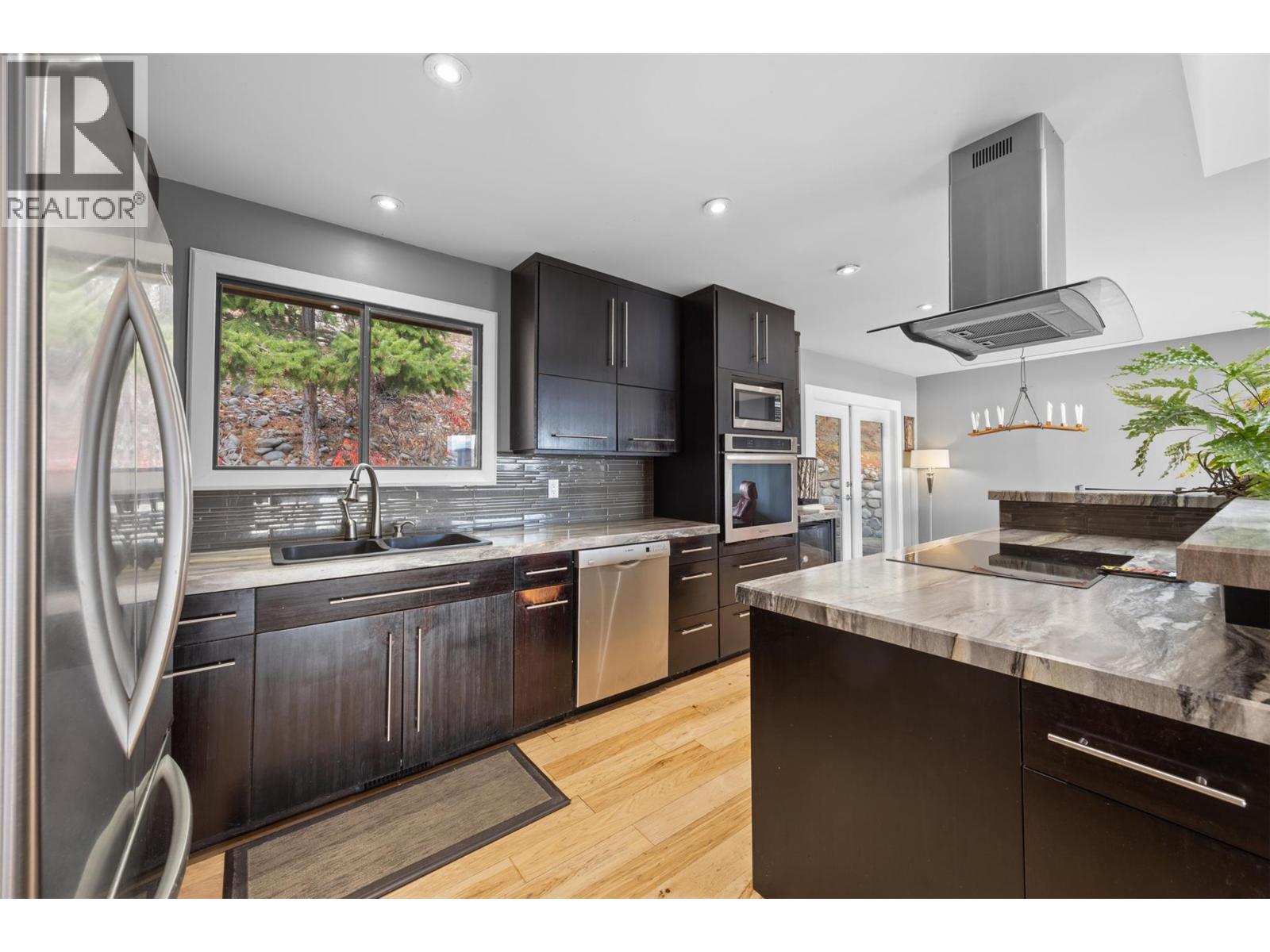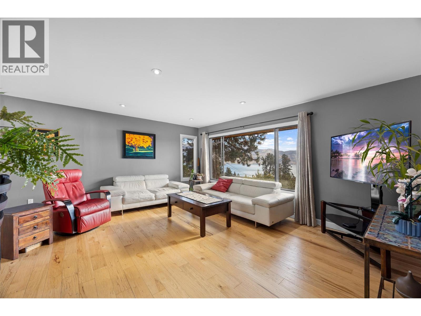 Nestled in the hills of Peachland, this 4-bedroom, 3-bath home captures outstanding views of Okanagan Lake and the surrounding mountains. Designed for the Okanagan lifestyle, this home features three distinct outdoor living spaces: a spacious lakeview deck with newer vinyl and glass railings to take in the endless views, a stone patio perfect for outdoor dining and entertaining, and a private side-yard retreat surrounded by gardens, greenery and views ~ ideal for quiet mornings or playtime with pets The main floor is bright and inviting, highlighted by hardwood flooring, skylight, and an updated kitchen with island that flows seamlessly into the open-concept dining and living areas. Double doors from the dining room open onto the stone patio, creating effortless indoor-outdoor living. The primary bedroom offers lake views, deck access, and a 3-piece ensuite, while a second bedroom and main bath with a soaker tub complete the main level. The lower level adds flexibility with a family room, two additional bedrooms, and a separate entrance ~ perfect for guests, a home office, or a potential suite. All of this is just minutes from Peachland’s vibrant Beach Avenue, where you can enjoy coffee shops, restaurants, pubs, beaches, and the scenic lakefront promenade. Whether you’re sipping morning coffee on the deck or dining under the stars, this home delivers the perfect blend of privacy, comfort, and true Okanagan living. (id:58842)