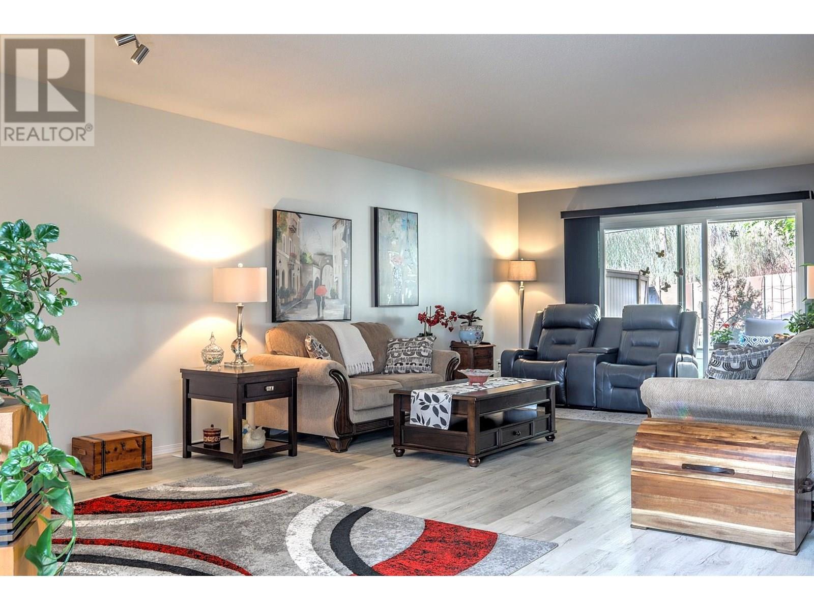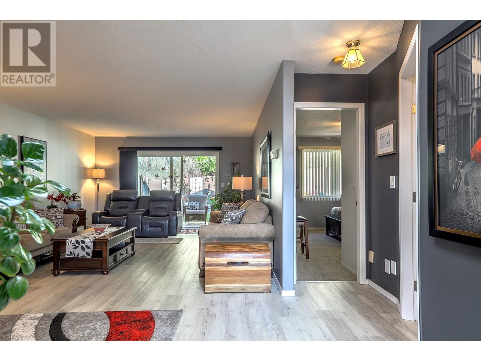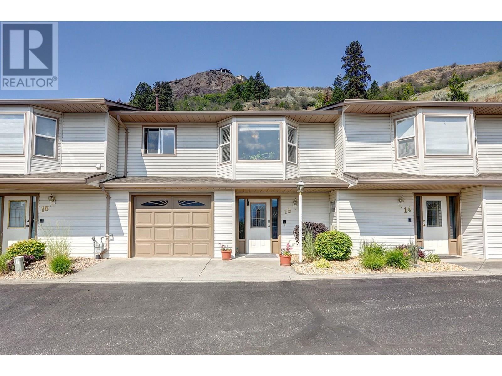 Unit 15 in the Landsdowne Complex is one of the few units that offers a garage (not just a carport). When you enter the main entrance you have your garage with plenty of built in storage, a 4 piece bathroom, second bedroom and a large den/office area as well. Upstairs the stairs you enter into the middle of the main living area. The kitchen and dinning area both take advantage of the beautiful view looking East over the city and both Highway 6 and Silver Star. Newer appliances and updates to the backsplash and lighting give the unit a modern and updated feel. The living room has a gas fireplace at one end and big and bright patio doors on the other leading out to a magical little green space. The outdoor area has both covered and uncovered area with tiled floors that are heated under the covered portion of the patio! This is a one owner home that has been well cared for and maintained with many updates over the years. The most recent include the new appliances (2022), paint, vinyl flooring, carpet downstairs bedroom, hall and stairs. Some new lighting, switches and bathroom counters to name a few. Please review bylaws for full pet restrictions but generally it is one dog or one cat, not to exceed 15"" at the shoulder. Some exceptions apply as listed in the bylaws. 55+ Age Restriction. (id:58842)