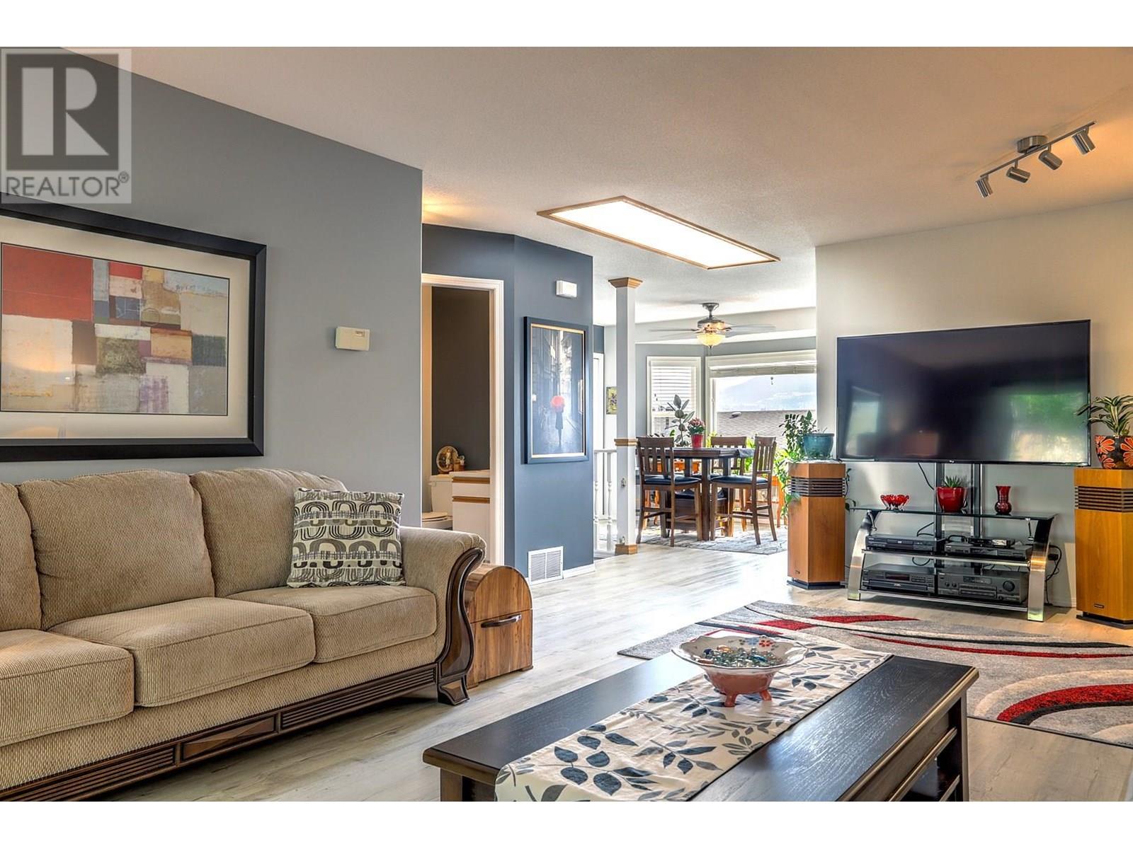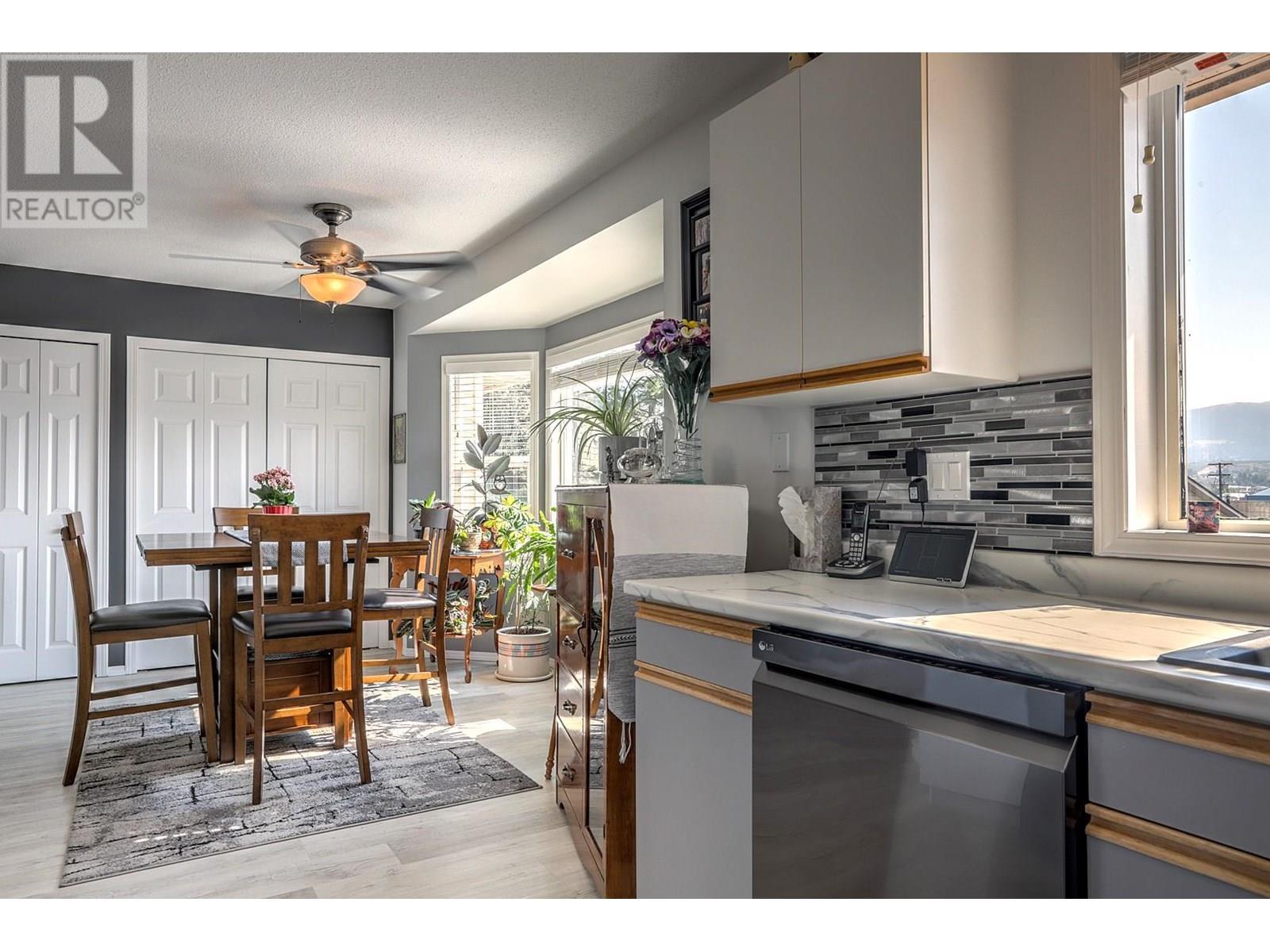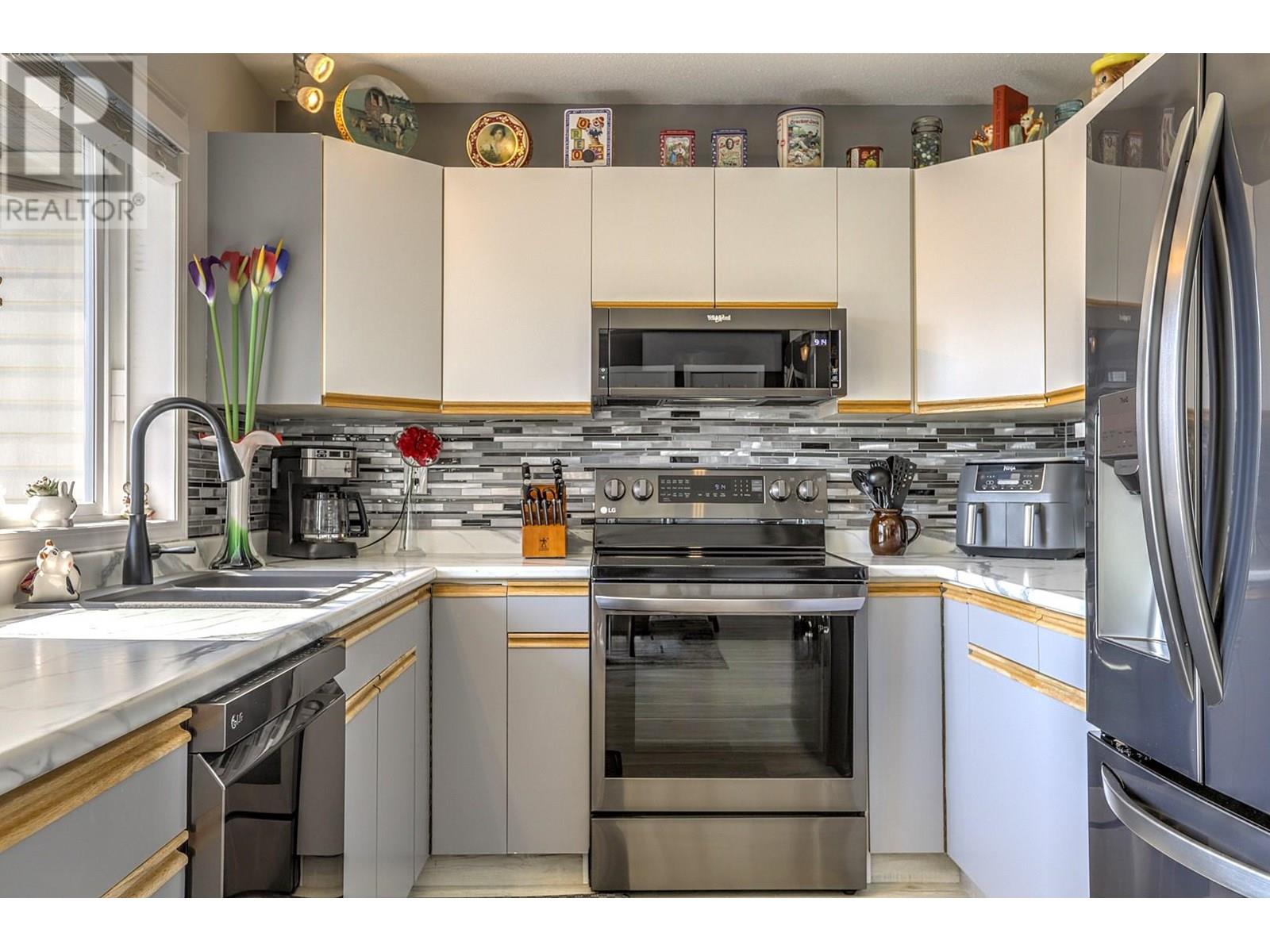 Unit 15 in the Landsdowne Complex is one of the few units that offers a garage (not just a carport). When you enter the main entrance you have your garage with plenty of built in storage, a 4 piece bathroom, second bedroom and a large den/office area as well. Upstairs the stairs you enter into the middle of the main living area. The kitchen and dinning area both take advantage of the beautiful view looking East over the city and both Highway 6 and Silver Star. Newer appliances and updates to the backsplash and lighting give the unit a modern and updated feel. The living room has a gas fireplace at one end and big and bright patio doors on the other leading out to a magical little green space. The outdoor area has both covered and uncovered area with tiled floors that are heated under the covered portion of the patio! This is a one owner home that has been well cared for and maintained with many updates over the years. The most recent include the new appliances (2022), paint, vinyl flooring, carpet downstairs bedroom, hall and stairs. Some new lighting, switches and bathroom counters to name a few. Please review bylaws for full pet restrictions but generally it is one dog or one cat, not to exceed 15"" at the shoulder. Some exceptions apply as listed in the bylaws. 55+ Age Restriction. (id:58842)