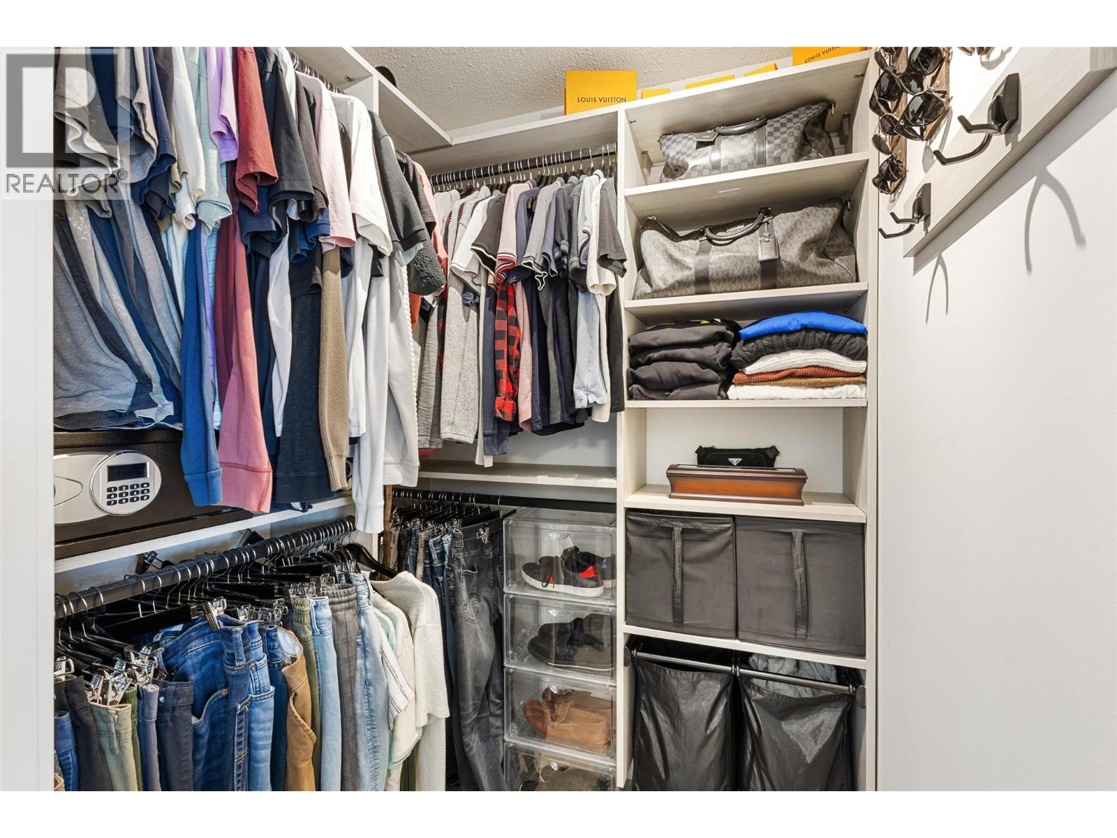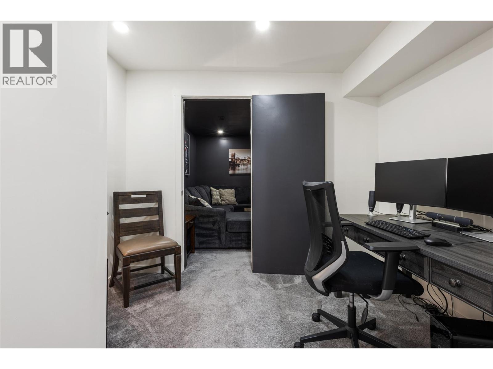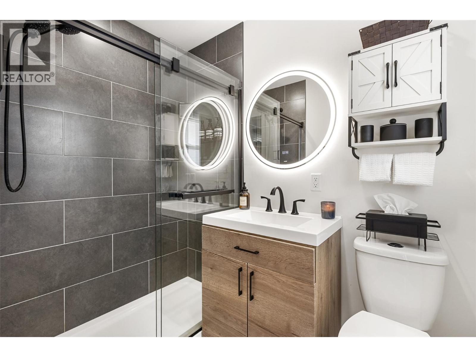 Welcome to this beautifully renovated rancher with a fully finished walkout basement, tucked away on a quiet cul-de-sac with panoramic lake and mountain views from nearly every room. Extensively updated with modern finishes, the main level features a spacious primary bedroom with a sleek ensuite, custom built-in closets, and sliding door access to a view balcony. The open-concept kitchen with brand-new stainless steel appliances flows into the living room with a cozy gas fireplace. A generous guest bedroom that comfortably fits a king bed, a four-piece main bathroom, and an oversized single-car garage complete the main level. The bright walkout basement offers exceptional flexibility with a private office, flex space, theatre-grade insulated media room, workshop/storage room, and new washer and dryer. A self-contained one-bedroom in-law suite with a private entrance provides excellent potential for extended family or rental income. Set on a landscaped 0.22-acre lot, the fully fenced yard includes in-ground sprinklers, a hot tub on the lower patio, and RV parking. This home offers modern comfort, functionality, and stunning natural surroundings perfect for enjoying the Okanagan lifestyle. ***Extensive updates include: All plumbing upgraded to PEX, Electrical outlets and switches upgraded, GFI outlets added in bathrooms, venting upgraded throughout, upgraded natural gas meter, A/C installed, new flooring throughout, interior and exterior paint, all trim replaced, door handles replaced, Pot lights added in basement, Theatre-grade insulation added to downstairs media room, Updated fireplace surrounding, built-in closets, backsplash kitchen, cabinets new hardware, appliances in main home, new appliances in suite, All main floor bathrooms fully renovated, new window coverings, landscaping, tree removal, fencing added, Hot tub, new septic 2018, new roof in 2015. (id:58842)