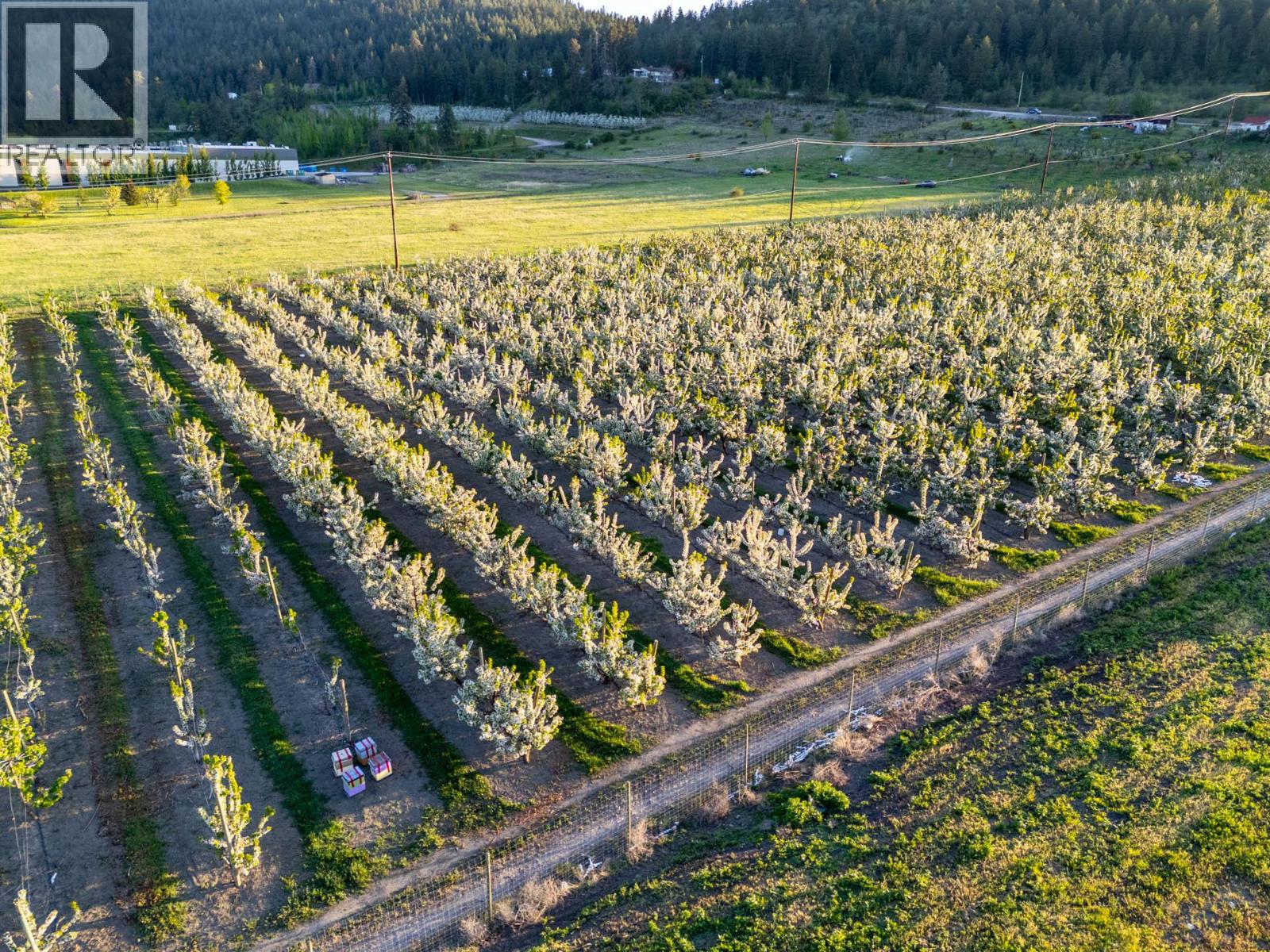 9.85 acre cherry orchard with Highway 97 Frontage and in City of Kelowna Limits, just minutes from the core of Lake Country. Newer plantings but in full production, this orchard presents a great opportunity for an orchardist/farmer to add to their portfolio. The property is deer fenced and has been well maintained. There is no lease on the property, meaning an orchardist can come in and enjoy the 2024 crop. The four bedroom, two bathroom home has two kitchens and is ideal for a rental or for farm worker accommodations (its current use). Property is serviced by municipal water. The land is agriculturally zoned and in the ALR. Sprinklers are micro sprinklers. Orchard is planted to a mix of staccato, Skeena, Sentennial, Regina, and Santina planted in 2018-2020. Good rootstocks with mix of Mazzard, Gisela 6 / 5. Some sweetheart nursery stock planted. Contact agent for precise information. Access via Shanks road and by appointment only. (id:58842)