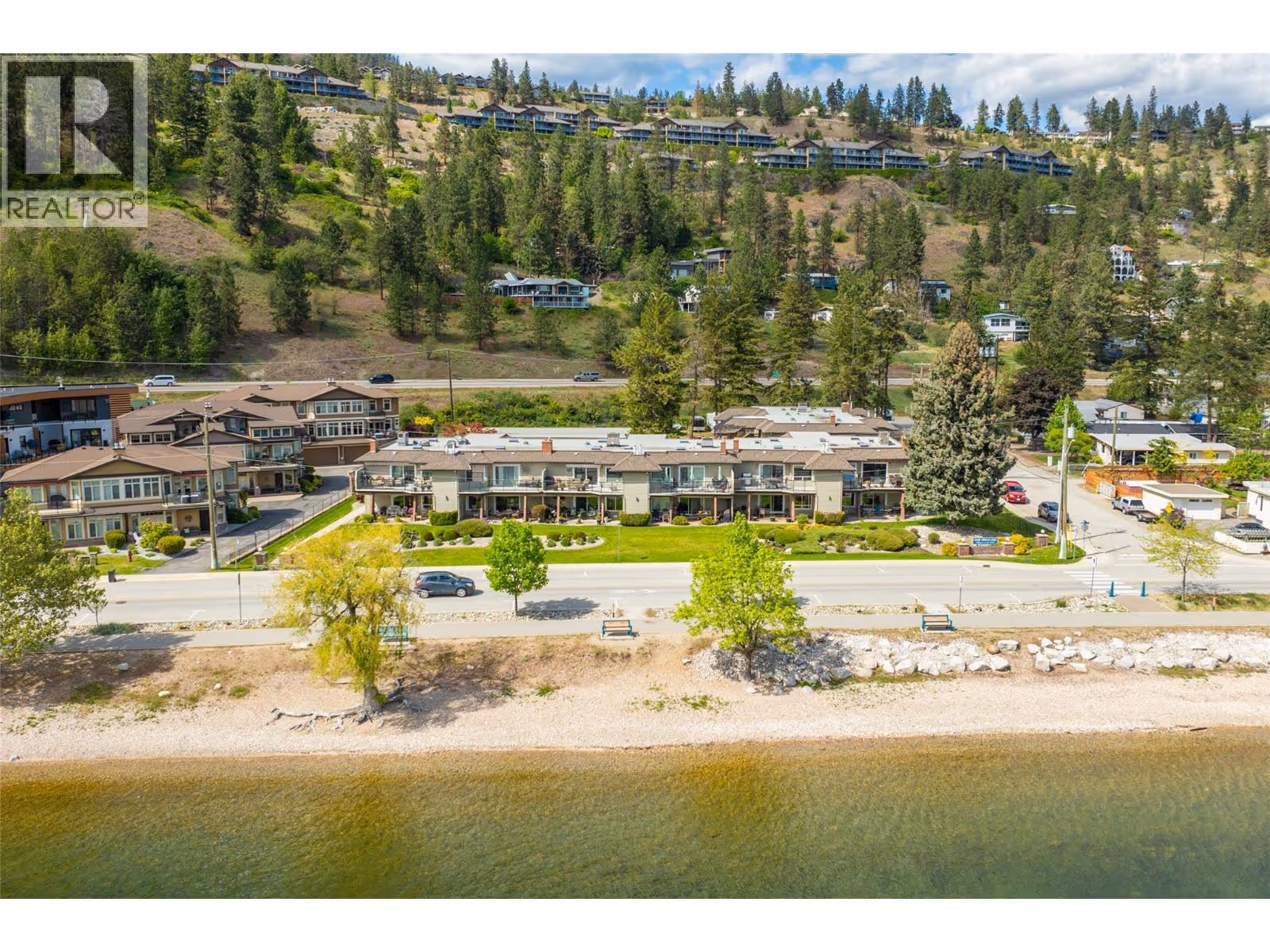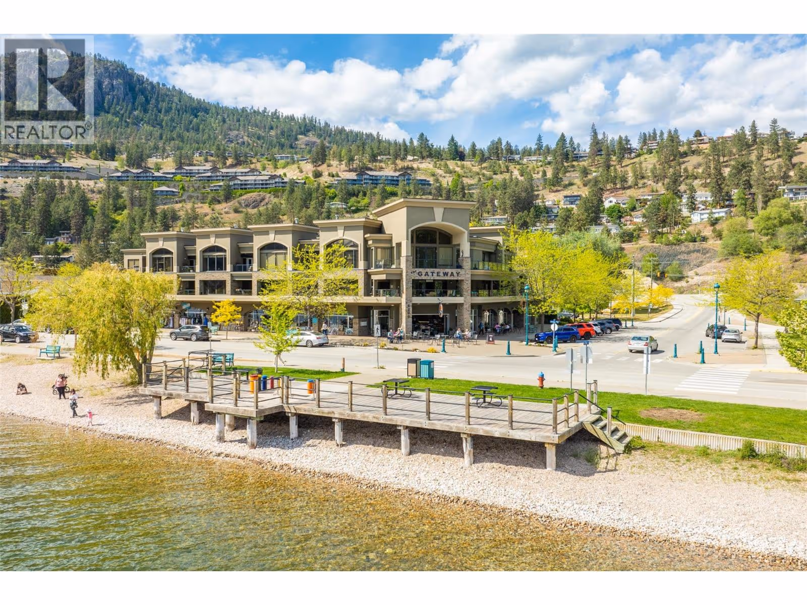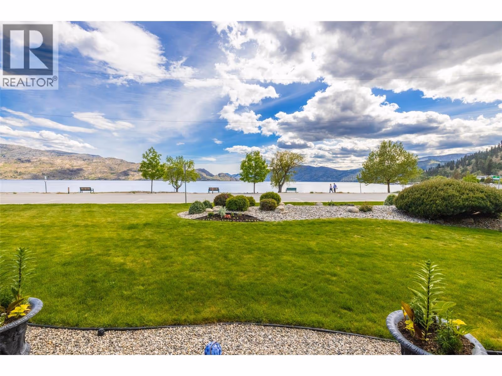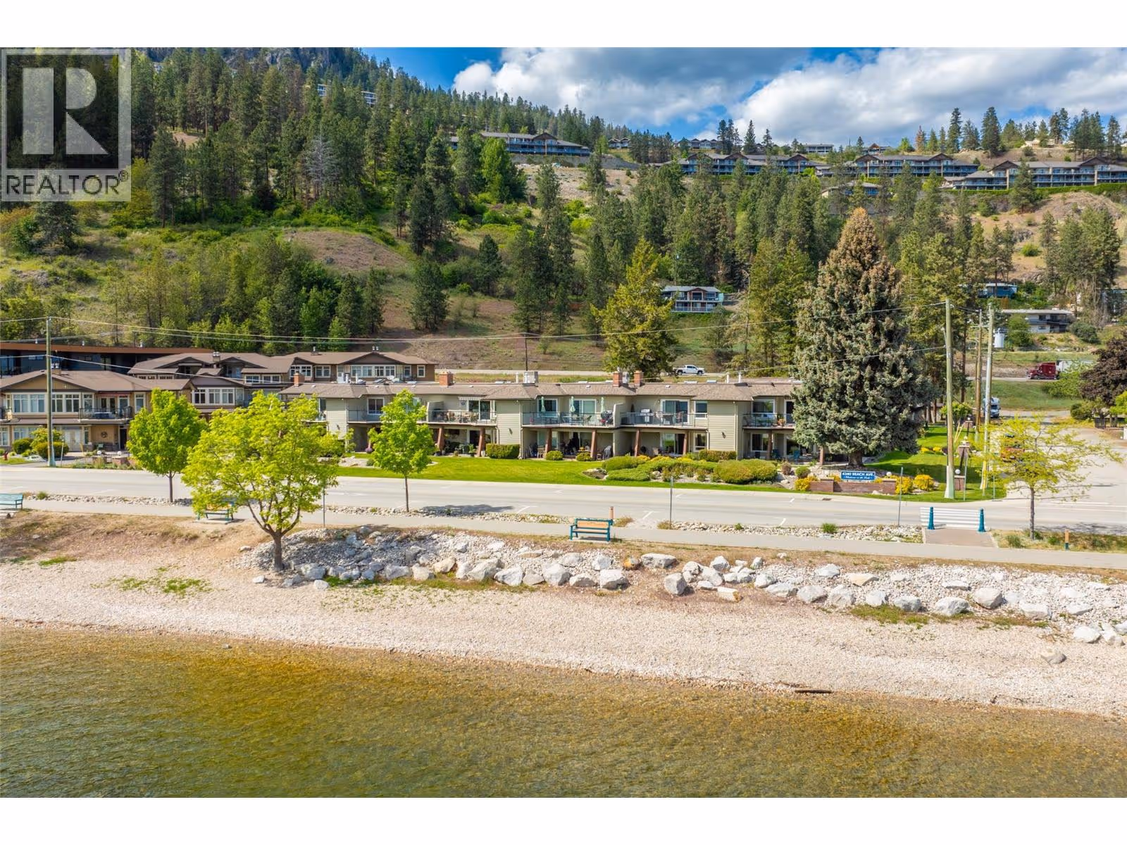 Discover serenity and sophistication in this exquisite 2-bedroom, 2-bathroom SEMI WATERFRONT ground floor condo, boasting a million-dollar vista of the tranquil lake. Meticulously renovated over the years, this residence showcases modern elegance promising a lifestyle of comfort and balance. Pride of ownership is clearly evident. Step onto the spacious covered tiled patio, a sanctuary for relaxation amidst breathtaking lake panoramas. Revel in the comfort and the convenience of low strata fees, ensuring both comfort and affordability. The generously sized master bedroom boasts an opulent ensuite featuring a beautiful shower epitomizing indulgence and functionality. The second bedroom is spacious and bright. Open concept dining room-living room featuring a gas fireplace. Beautiful kitchen with plenty of cabinets and under cabinet lighting, in-suite laundry and so much more. Nestled in the coveted ""Chateaux on the Lake,"" this 55+ community offers you, assigned parking with storage shed in front, additional private storage sheds additional parking for boats or RVs, and a charming common area. Enjoy leisurely strolls along the centennial beach walkway, with an array of shops and restaurants just a stone's throw away. Embrace a lifestyle of ease and elegance on Beach Avenue, where every moment is an invitation to savor the tranquility of lakeside living. Experience the pinnacle of affordable luxury – make ""Chateaux on the Lake"" your home today. (Note: No pets allowed.) (id:58842)