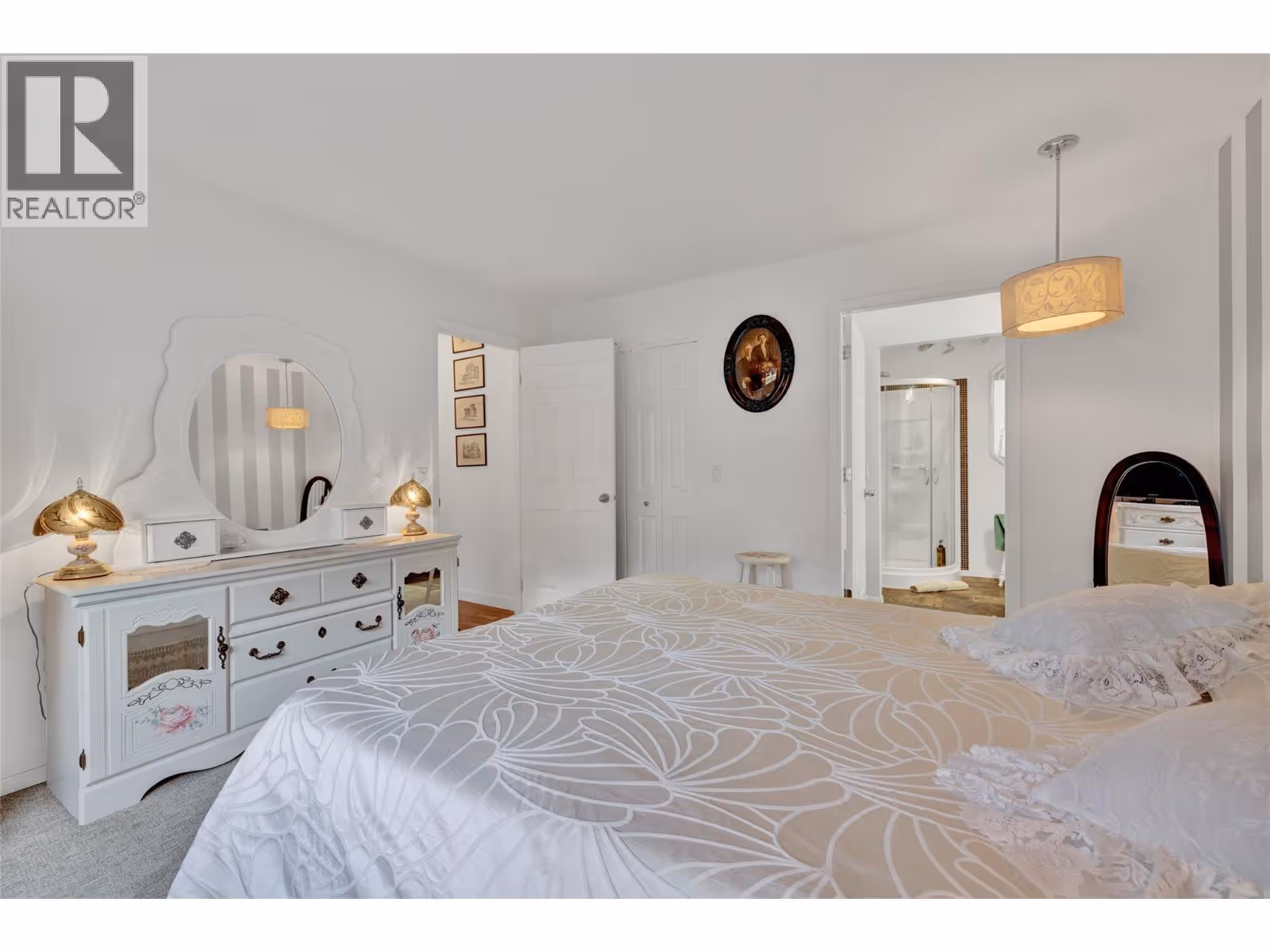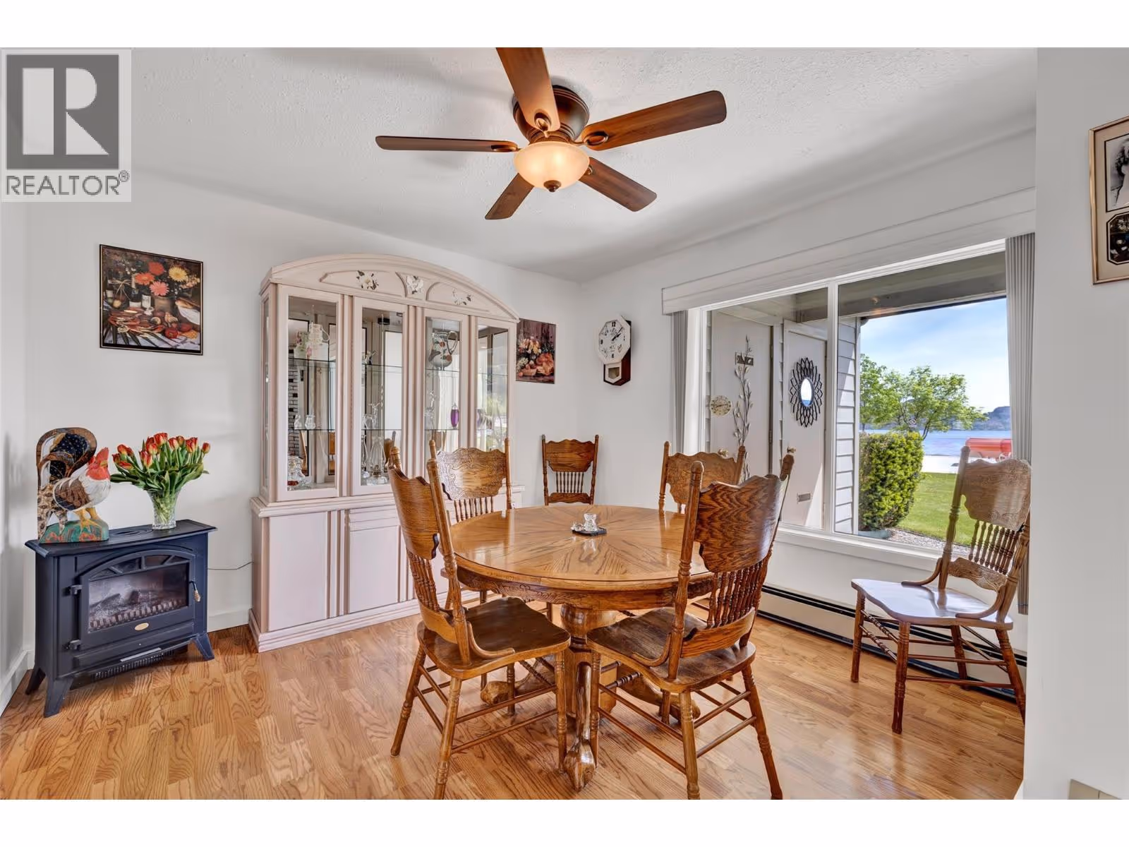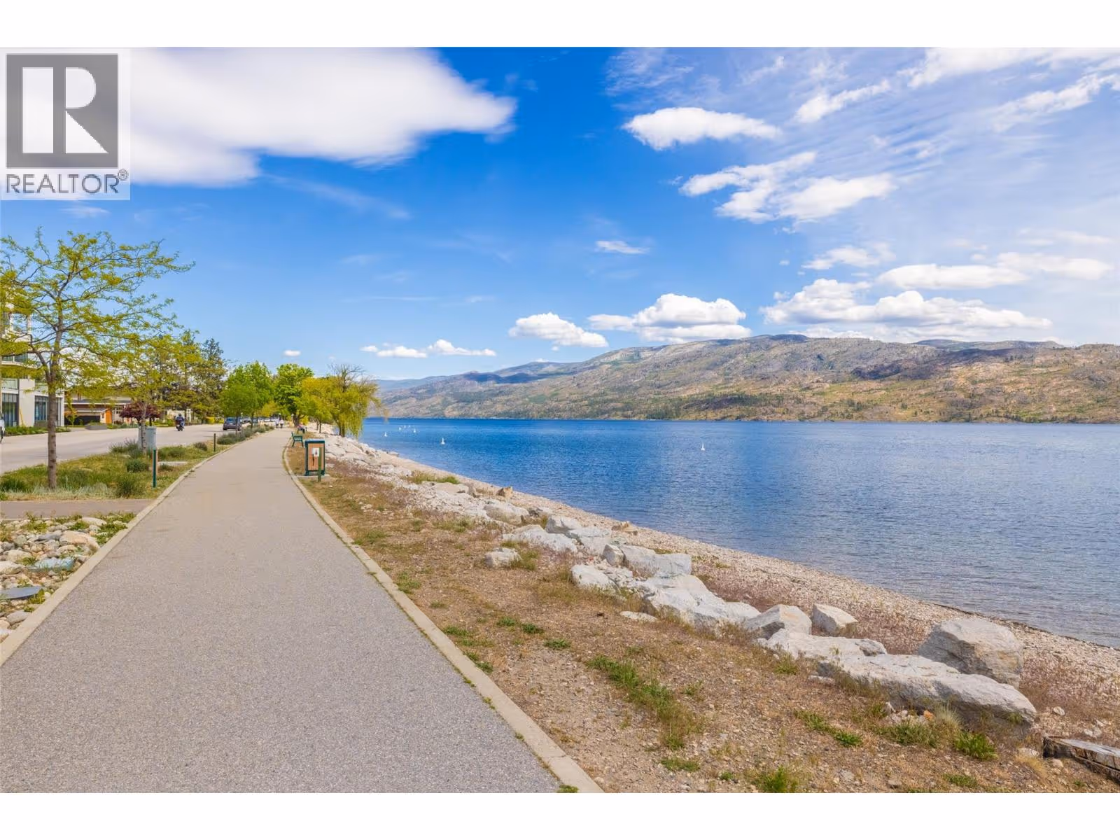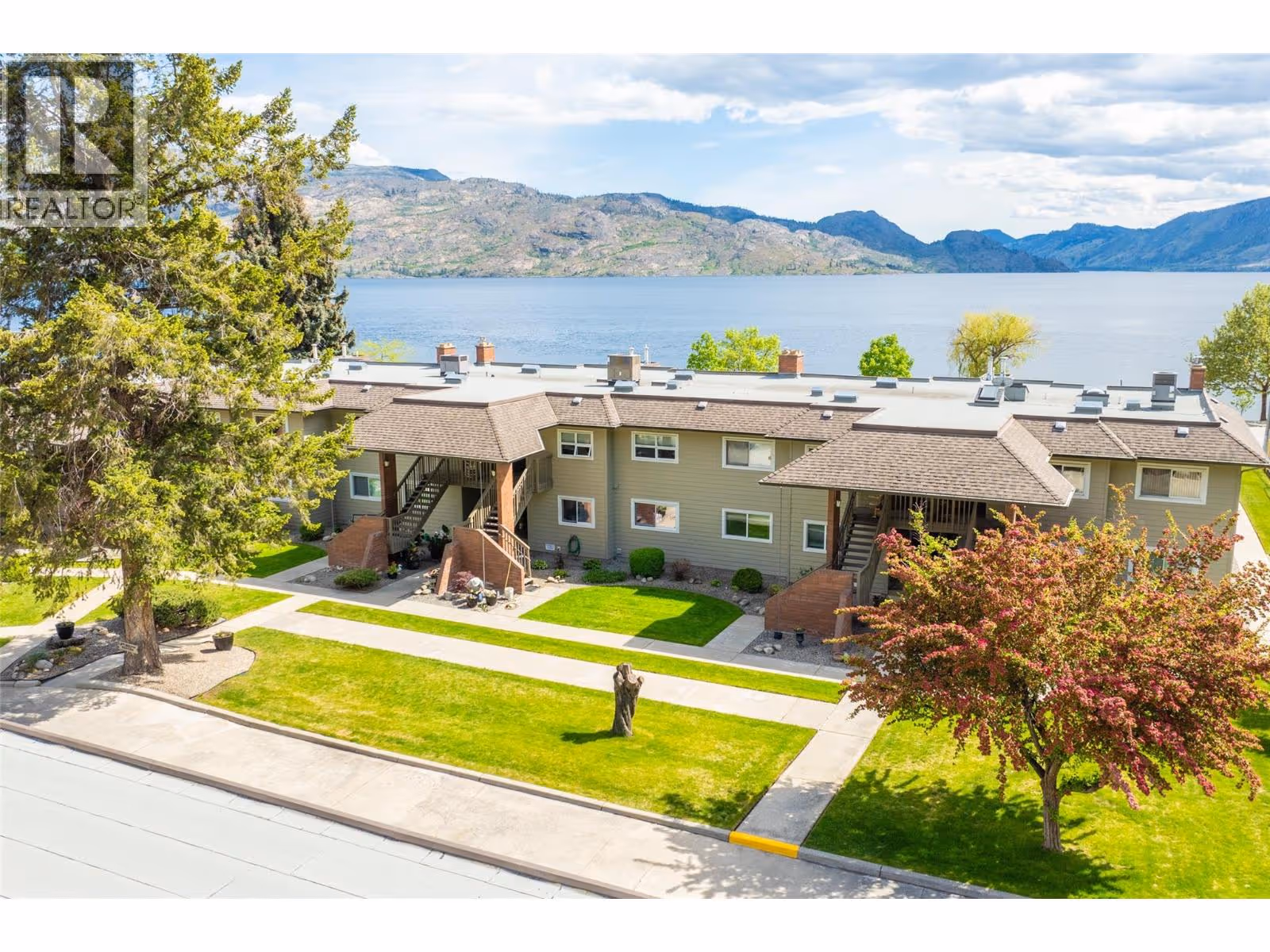 Discover serenity and sophistication in this exquisite 2-bedroom, 2-bathroom SEMI WATERFRONT ground floor condo, boasting a million-dollar vista of the tranquil lake. Meticulously renovated over the years, this residence showcases modern elegance promising a lifestyle of comfort and balance. Pride of ownership is clearly evident. Step onto the spacious covered tiled patio, a sanctuary for relaxation amidst breathtaking lake panoramas. Revel in the comfort and the convenience of low strata fees, ensuring both comfort and affordability. The generously sized master bedroom boasts an opulent ensuite featuring a beautiful shower epitomizing indulgence and functionality. The second bedroom is spacious and bright. Open concept dining room-living room featuring a gas fireplace. Beautiful kitchen with plenty of cabinets and under cabinet lighting, in-suite laundry and so much more. Nestled in the coveted ""Chateaux on the Lake,"" this 55+ community offers you, assigned parking with storage shed in front, additional private storage sheds additional parking for boats or RVs, and a charming common area. Enjoy leisurely strolls along the centennial beach walkway, with an array of shops and restaurants just a stone's throw away. Embrace a lifestyle of ease and elegance on Beach Avenue, where every moment is an invitation to savor the tranquility of lakeside living. Experience the pinnacle of affordable luxury – make ""Chateaux on the Lake"" your home today. (Note: No pets allowed.) (id:58842)