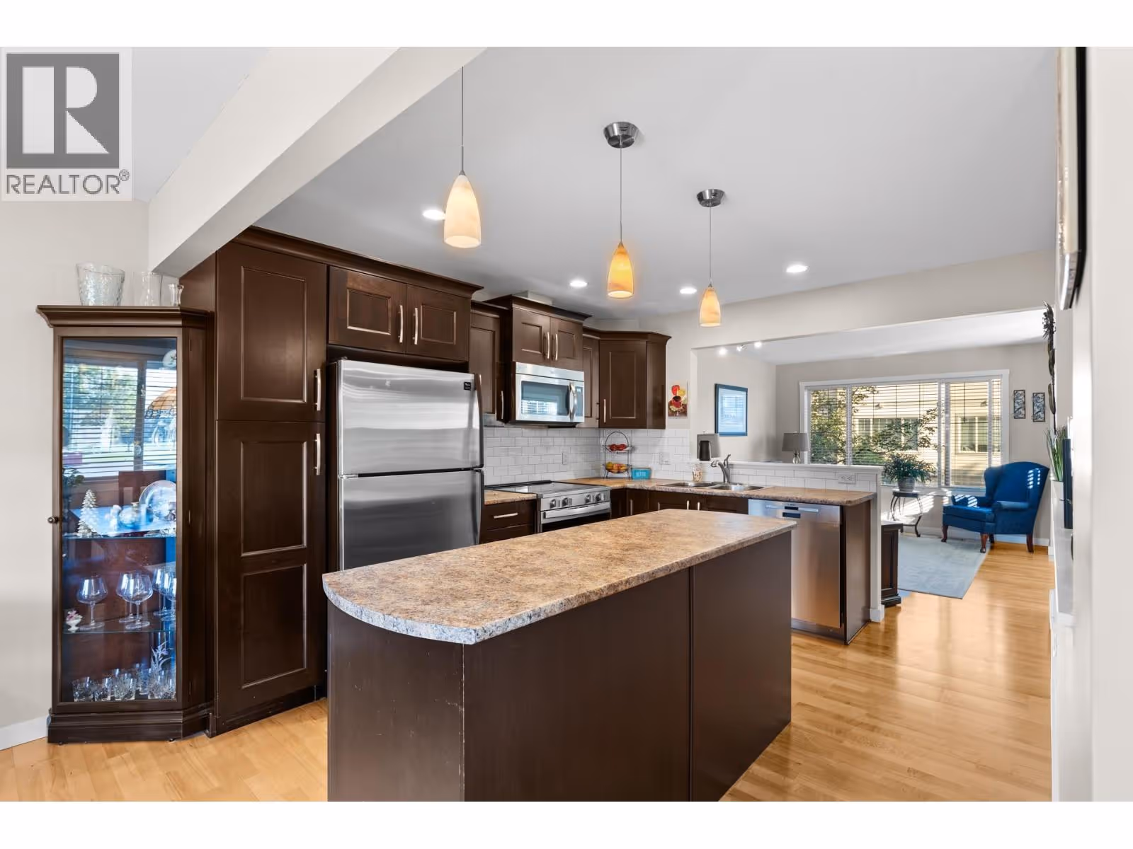 Welcome to Lovely Capstone Lane, a VERY PET FRIENDLY COMMUNITY! This wonderful TRUE CORNER townhome boasts 2 PRIMARY BEDROOMS and a great floor plan throughout. The main floor starts with an open concept eat-in kitchen with large island, numerous cupboards and counter space + new stove and new dishwasher. Continue on to the spacious living room with corner electric fireplace. A 2-piece powder room completes this level. Walk up to view 2 PRIMARY BEDROOMS plus convenient laundry facilities all located on the 2nd floor. As you travel down to the garage level, take notice of the access to the ULTRA PRIVATE PATIO perfect for the BBQ and extended outdoor entertainment. The 35’ x 11’ Tandem garage has many options; great for 1 vehicle, motorcycles, electric bikes, snowboards, all other recreational equipment or just STORAGE FOR EVERYTHING ELSE! Another outdoor parking spot is included in front of the garage. Bonus points for 2 DOGS, 2 CATS OR 1 OF EACH WITH NO HEIGHT RESTRICTION FOR THE DOG + VERY LOW STRATA FEES. A perfect location with the dog park across the street plus the YMCA pool and gym, community garden, huge sports fields and a BMX track all within walking distance plus a very short drive to all kinds of shopping, pubs, restaurants and coffee houses. Capstone Lane is well known throughout Kelowna for its stellar reputation, well-run strata and will appeal to families and professional couples alike. Come and Get it! (id:58842)