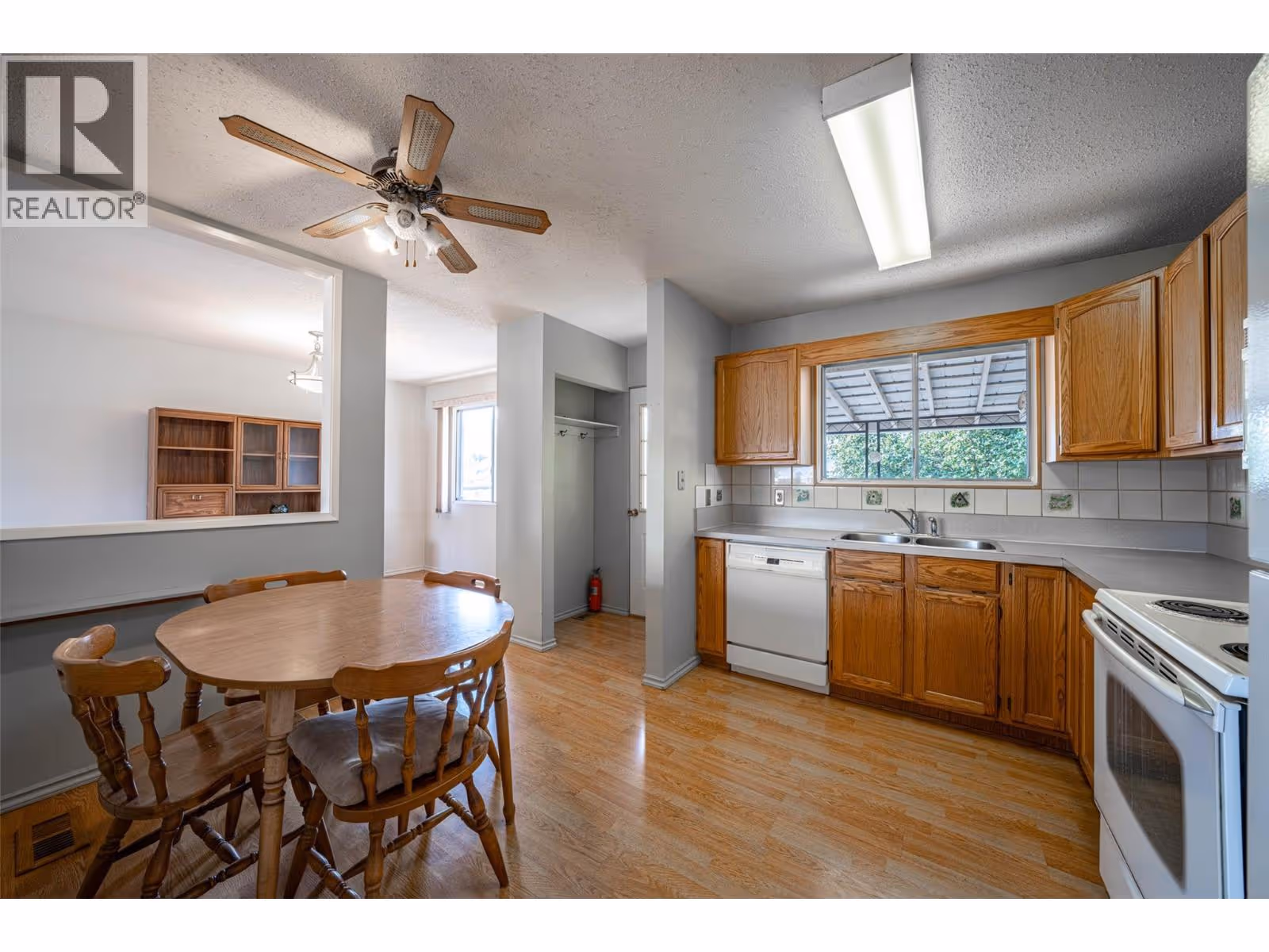 Welcome to 4402 16th Avenue, a great family home. This house features two bedrooms and two bathrooms, and is conveniently located near schools, shopping, recreation, and most amenities.The generous basement area currently has an oversized family room, which could easily be converted to include an additional bedroom. Upstairs, you'll find a spacious living and dining room area that opens to a charming country kitchen. The property also includes an alarm system that extends to the shop located in the backyard. The fenced backyard offers a storage shed, garden space, a covered deck, and timed yard lights for added convenience. The 15' x 31' shop is well-equipped with 220 amp plus 222 amp for a welder, a wood stove, it is insulated, and offers workbenches with drawers, and a roof rail. Both the house and the shop have metal roofs with snow reflectors installed within the last five years. The fridge is also new. (id:58842)