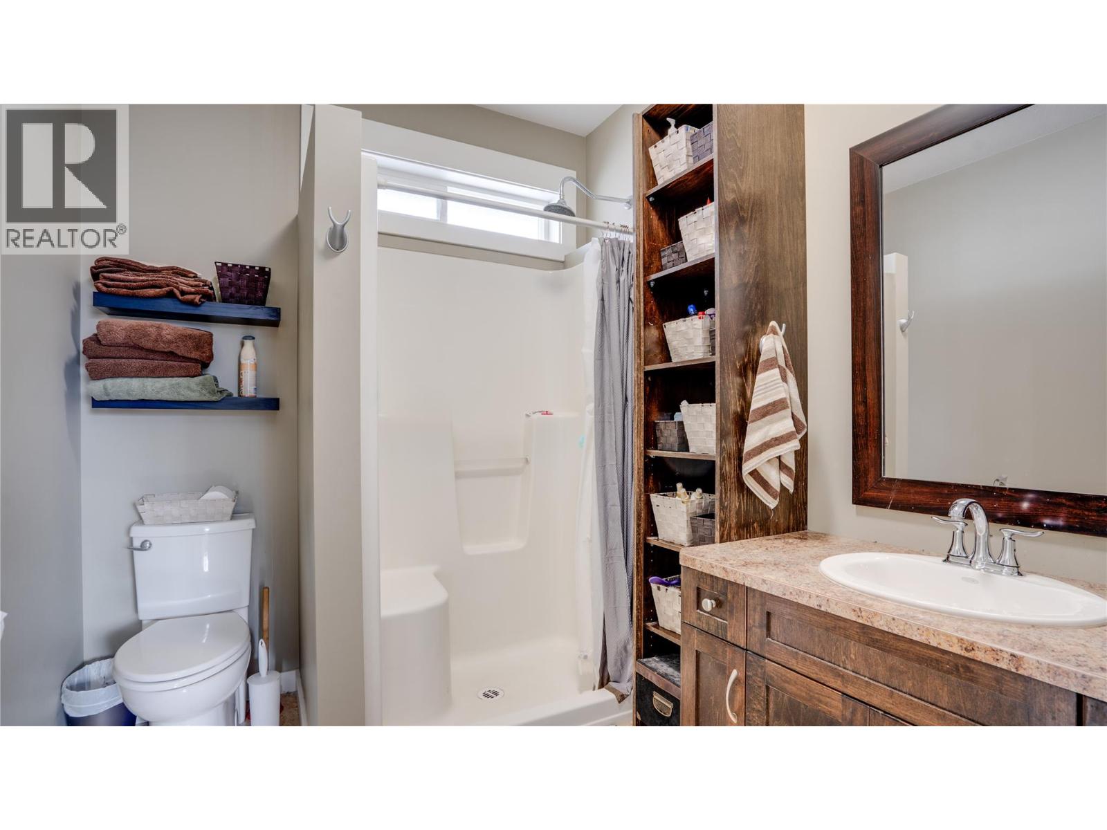 Great location just blocks to the mall and all amenities in Vernon's Harwood area! This bright, hard to find, detached Bare land Strata home with suite! Upper floor is the main living area with an island kitchen that walks out to a deck overlooking the backyard, plus 2 bedrooms and two baths. The Primary bedroom features a walk-in closet and full ensuite. Lower level is a bright above ground in-law suite of 1 bedroom and 1 bath, plus shared laundry and its own parking stall. Outside is a small easy care backyard for the kids and pets. (Strata fee $34.00/month) No Pet Restrictions! No age restrictions! This is perfect for someone needing a mortgage helper or simply a level entry suite for a family member. 3 parking spaces, including garage. This is part of a 4 home Bare Land Strata. Close to all amenities! (id:58842)