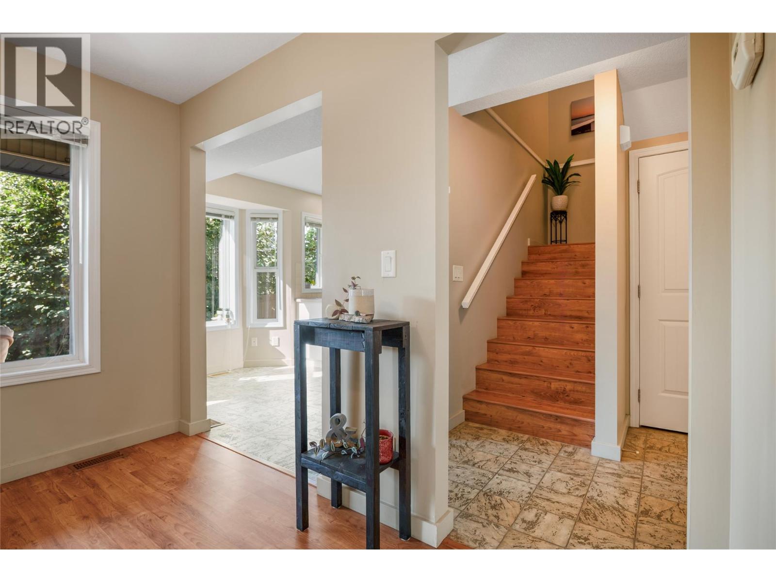 Welcome to this well maintained, 3 bedroom, 2.5 bathroom townhouse located in a desirable Vernon neighborhood, offering a functional layout and comfortable everyday living. With 1,314 sq. ft. of interior space, this home provides a thoughtful floor plan ideal for families or those seeking low maintenance living without sacrificing space. The main level opens to a south facing deck, allowing for all day sunshine, perfect for outdoor living, dining or relaxing. Upstairs you will find the primary bedroom which captures a lovely elevated view, creating a quiet retreat at the end of the day. Plus two additional bedrooms that offer flexibility for family, guests, or a home office. The exterior space is a standout feature, with a fully fenced yard complete with new 6 ft vinyl fencing which is ideal for privacy, children, or pets. A spacious crawlspace provides substantial additional storage, helping keep the home organized and clutter free. Parking is convenient with a single garage plus two additional spots, for a total of three. Situated within a well managed strata in a family friendly neighborhood. This home is within walking distance to city amenities, making day-to-day errands and activities easily accessible. A solid opportunity for young buyers looking for value, space, and a strong location in Vernon. (id:58842)