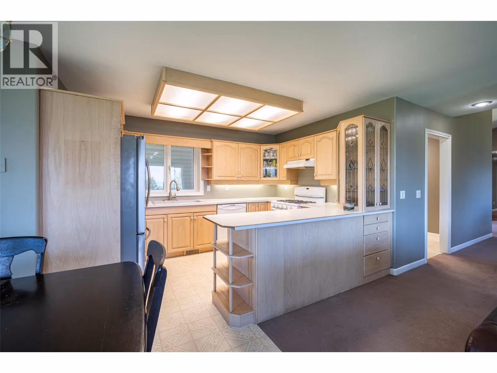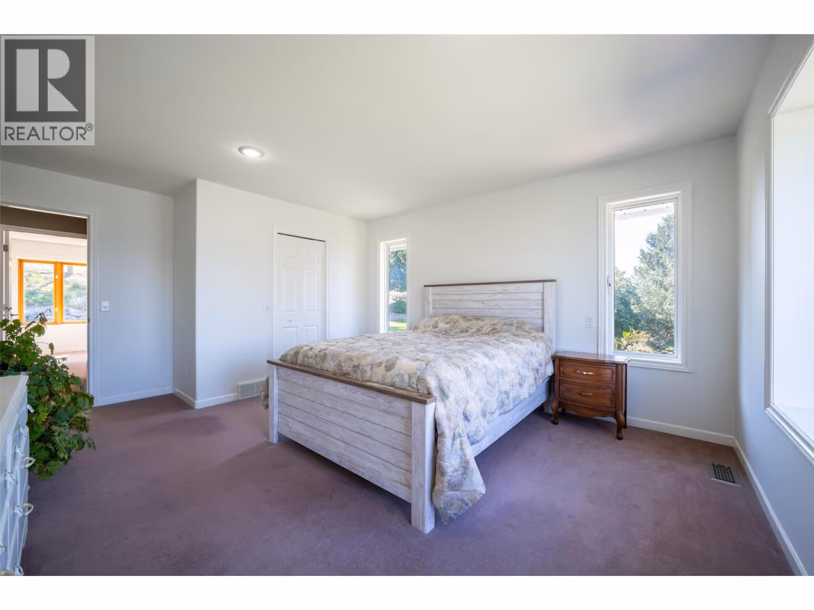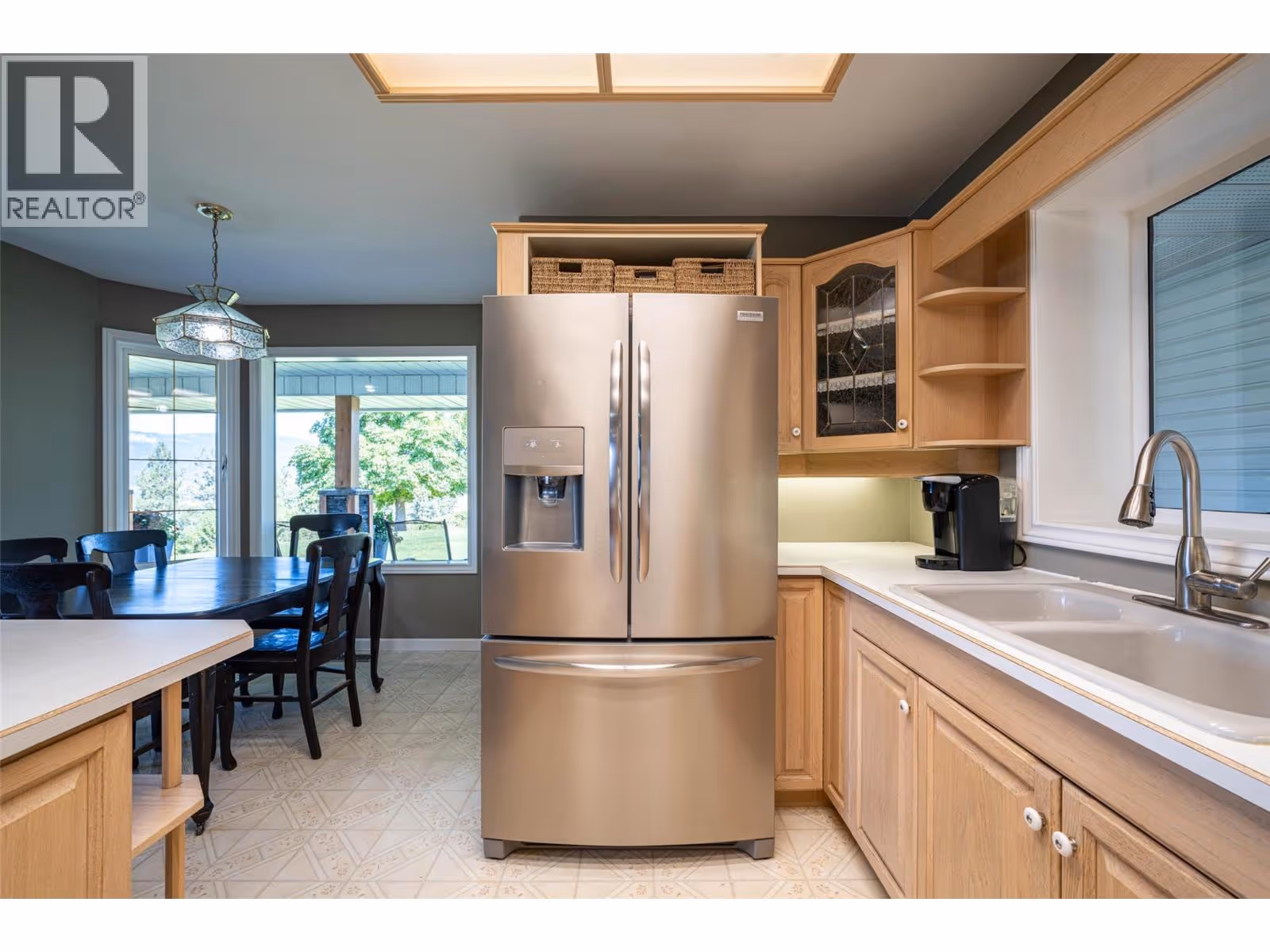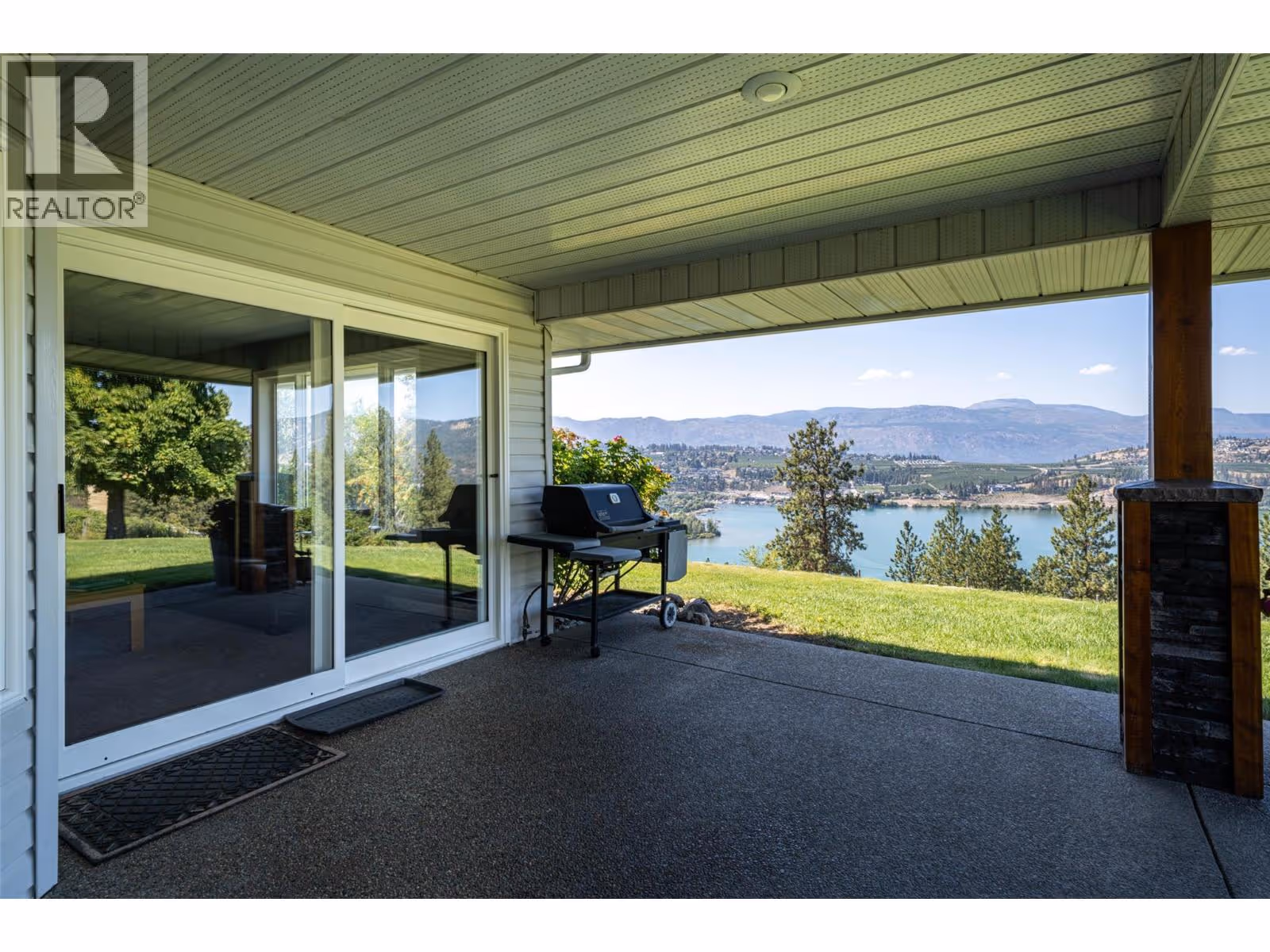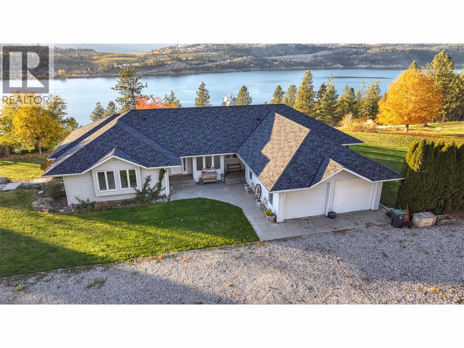 Come and enjoy the remarkable Valley views from this private 10 acre property overlooking Wood Lake. Large 4 bed/3 bath level entry rancher home with full walkout basement with self contained 1 bedroom suite. Backing onto a vineyard and located at the end of a no-through road this acreage allows you the privacy everyone desires with the convenience of being only 5 minutes to shopping, dining, rail trails and public beaches. The main level of the home has open kitchen / family room featuring a decorative gas fireplace and direct access to the covered patio to enjoy your morning coffee. Down the short hall is the dining room, sunken living room with vaulted ceilings along with ample windows to enjoy those views. At the south end of the home is the primary bedroom with a 3 pce. ensuite bath. 2 other bedrooms are located across the hall. Downstairs is the bright 1 bed/1 bath in-law suite with private rear entrance, vacant and ready for family or guests. Also on this lower level is a large family room, laundry, mechanical room with 200 amp service, gas furnace with central A/C. There is a detached, insulated double garage with covered breezeway 23'x23'. Easy maintenance mature landscaping and lawns surround the home with the convenience of underground sprinklers. Water is supplied by Alto Utilities with additional supply from a drilled well located at the bottom of the property off Oyama Rd. Access to the property at the end of Darlene Rd. (id:58842)