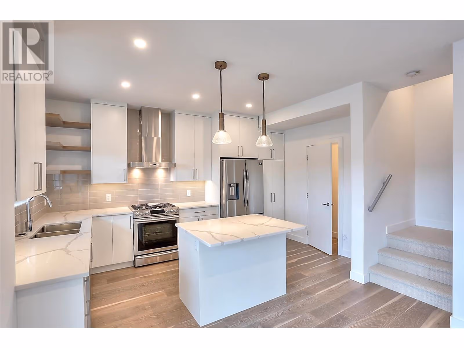 Welcome to this stunning, 4 bedroom modern townhouse, where luxury meets convenience in an unbeatable location just steps from the lake. Spanning multiple levels with elevator access to each floor including the rooftop deck, this beautiful home offers exceptional attention to detail. Open-concept layout featuring high ceilings, hardwood floors, and an abundance of natural light. The gourmet kitchen is a chef’s dream, with stainless steel appliances, custom cabinetry, and a spacious island ideal for both entertaining and everyday living. Enjoy the ultimate in convenience with your own private elevator, offering seamless access to all levels. The master suite is a true retreat, with a spa-inspired ensuite, double sinks and walk-in closet. 3 additional bedrooms and bathrooms provide ample space for family or guests. Step outside and discover a spectacular rooftop patio, perfect for hosting dinner parties, relaxing in the sun, or enjoying breathtaking views of the lake. Entertaining or unwinding, this outdoor space elevates your lifestyle to new heights. Additional features include a private garage, covered barbeque deck off the kitchen and storage throughout. Every aspect of this home has been meticulously designed to offer comfort and elegance. Located in the prominent Lower Mission, steps to the beach, with easy access to dining, shopping, and top notch school catchment, this luxury end unit townhouse offers an opportunity to live in style with unparalleled sophistication. (id:58842)