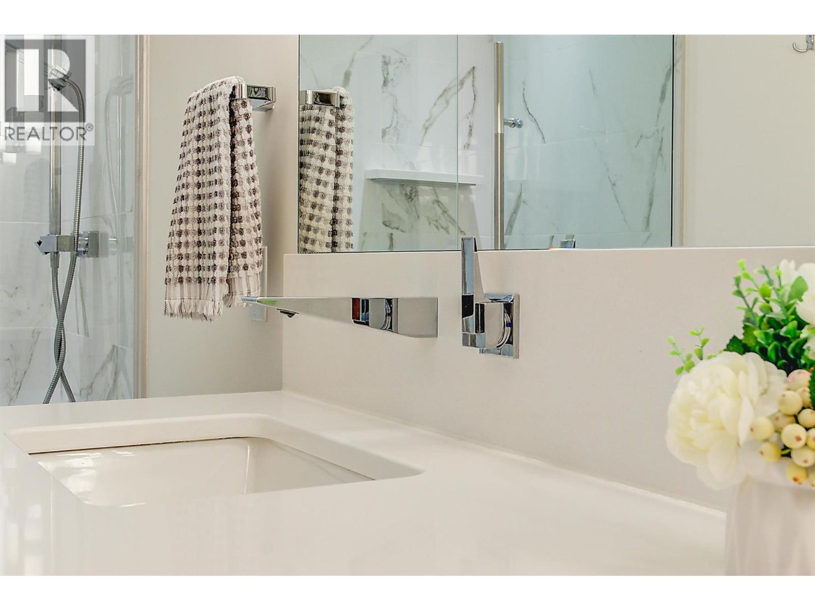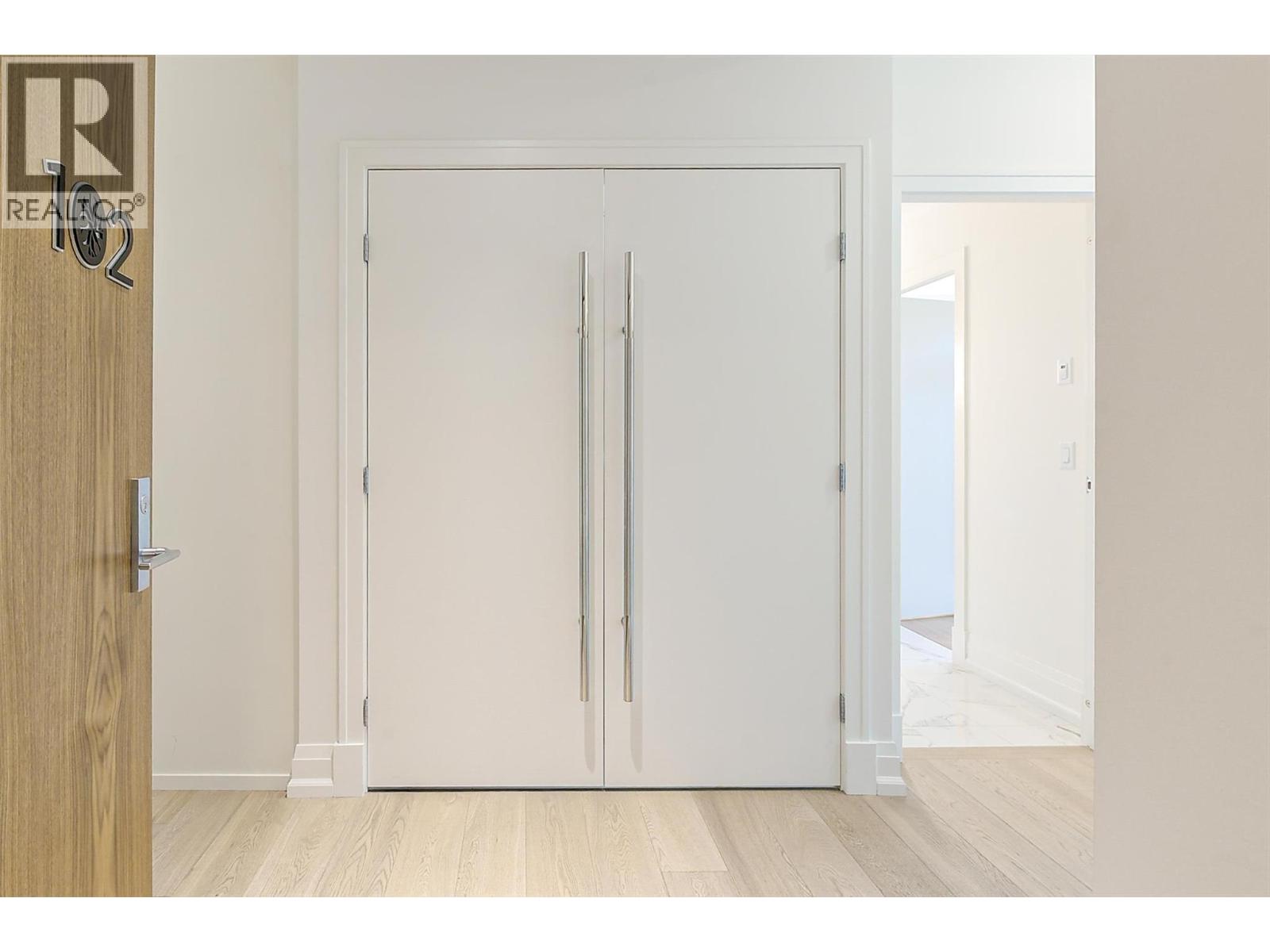 Exclusive Luxury in Sought-After Pandosy Area, Experience refined urban living in this elegant main-level condominium, part of a prestigious 6-storey concrete, steel, and brick building in the heart of Pandosy. Just steps from boutique shopping, dining, parks, beaches, and the hospital, this residence offers the perfect balance of convenience and sophistication. Dual Access: Enjoy two points of entry, including an additional private street entrance with video monitoring and secure fob access for peace of mind. Private Outdoor Living: A rare front-to-back layout offers two distinct outdoor spaces. Relax on the large, private front patio or entertain on the expansive 1,100+ sq. ft. rear patio backing onto tranquil Abbott Park. This space is pre-wired for a hot tub, features gas hookups for a BBQ and fire table, fully wired for an outdoor kitchen. Impressive Interiors Inside, 10-ft ceilings, oversized windows, engineered hardwood floors, solid wood doors, and a cozy gas fireplace create a sophisticated ambiance. Gourmet Kitchen The chef-inspired kitchen showcases an expansive island, handcrafted backsplash, upgraded cabinetry, quartz countertops, and high-end Bosch appliances. Behind the wine storage rack, you’ll find pre-wiring for a wine fridge. Premium Comforts: Two secure parking stalls with EV-ready charging, a private storage area, and the exclusivity of sharing the building with only 19 neighbors (just two units per floor) make this the ideal lock-and-leave lifestyle. (id:58842)