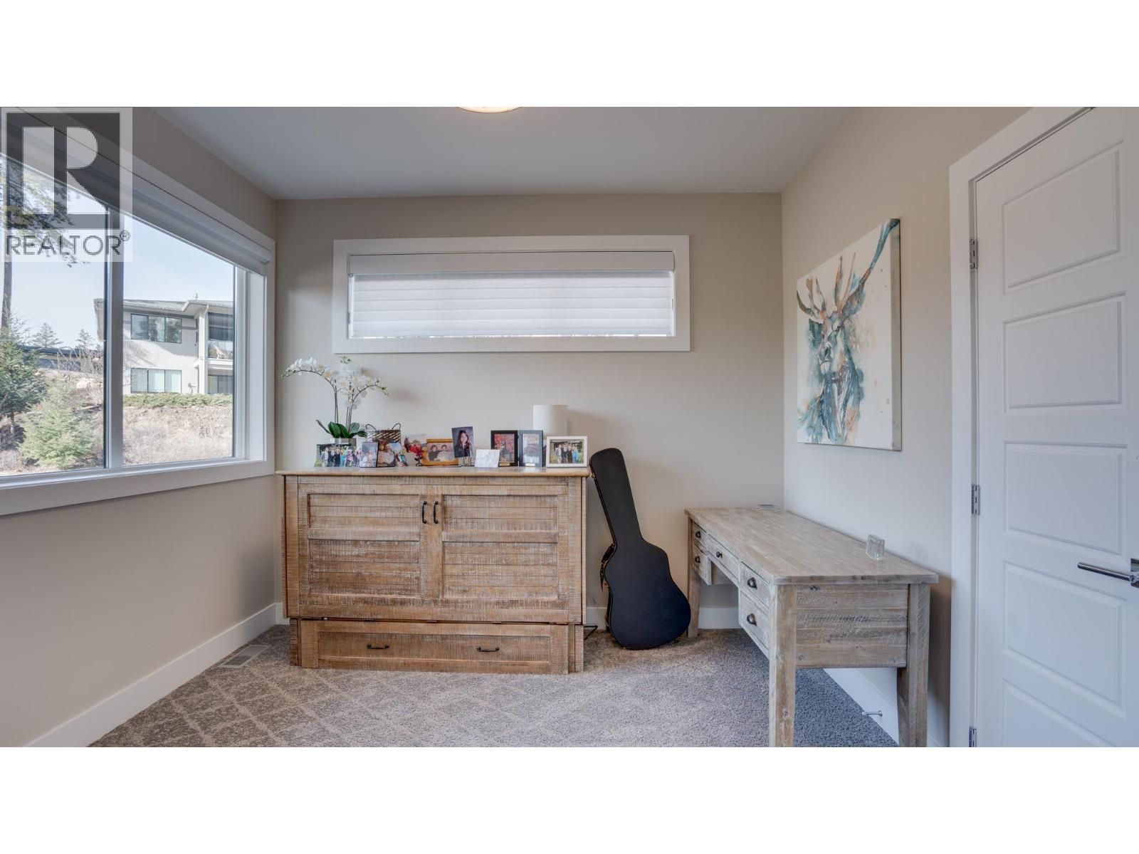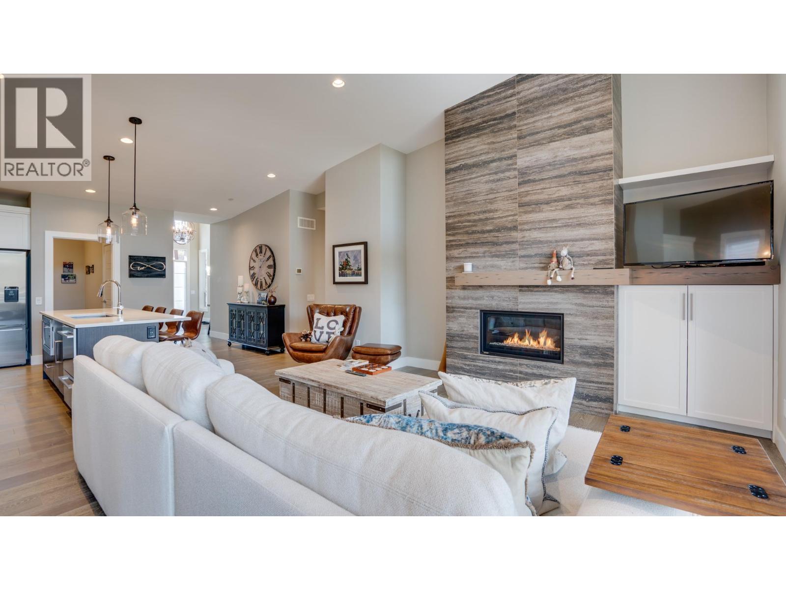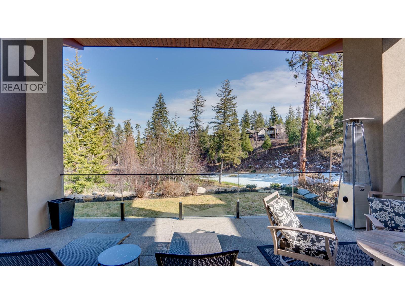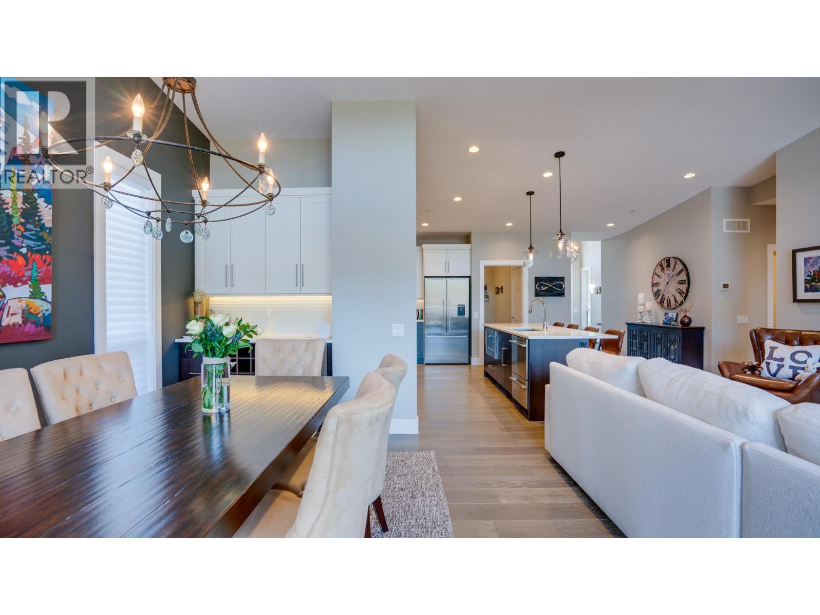 Nestled in the coveted Whitetail subdivision at Predator Ridge, this modern 1,784 sf rancher sits on a large corner lot with stunning views of the 3rd green. It offers 3 bdrms, 2 baths, and a dedicated laundry area, all flowing into an open-concept kitchen, living, and dining space that leads outdoors. The gourmet kitchen impresses with quartz countertops, s/s appliances (Fisher Paykel), a spacious island, an impressive butler's pantry, and a walk-in pantry, complemented by hardwood floors in neutral tones. The master suite features lrg windows overlooking the green and a spa-like ensuite with double sinks, a soaker tub, glass-enclosed shower, and heated tile floors. An expansive covered deck adds extra living space for entertaining or relaxing. Additional highlights include geothermal heating/cooling, an attached double garage with a cart bay, and a transferable golf membership. Designed for an easy “lock and leave” lifestyle, homeowners enjoy full landscaping services and extensive rec amenities included in the strata fee. With two world-class golf courses, a clubhouse, rec center, hiking/biking trails, yoga platforms, pickleball, and tennis, this community offers a true lifestyle retreat. Plus, with Kelowna Airport 23 minutes away, Silver Star Ski Resort 45 minutes away, and just nearby Sparkling Hill Wellness Hotel with its world-class spa, Predator Ridge is not just a home. Phase 2 Golf Membership available for $55,000, Plus transfer fee, EXEMPT FROM SPEC/VACANCY TAX (id:58842)
