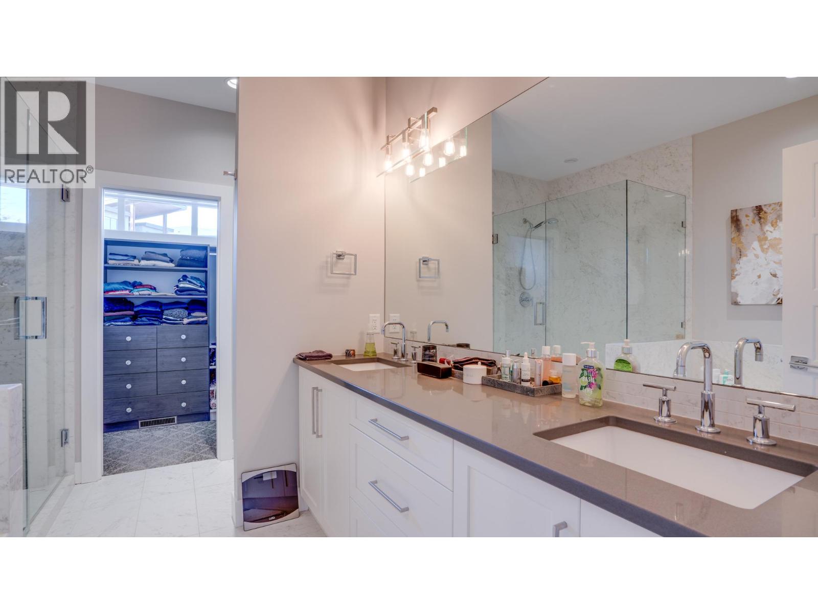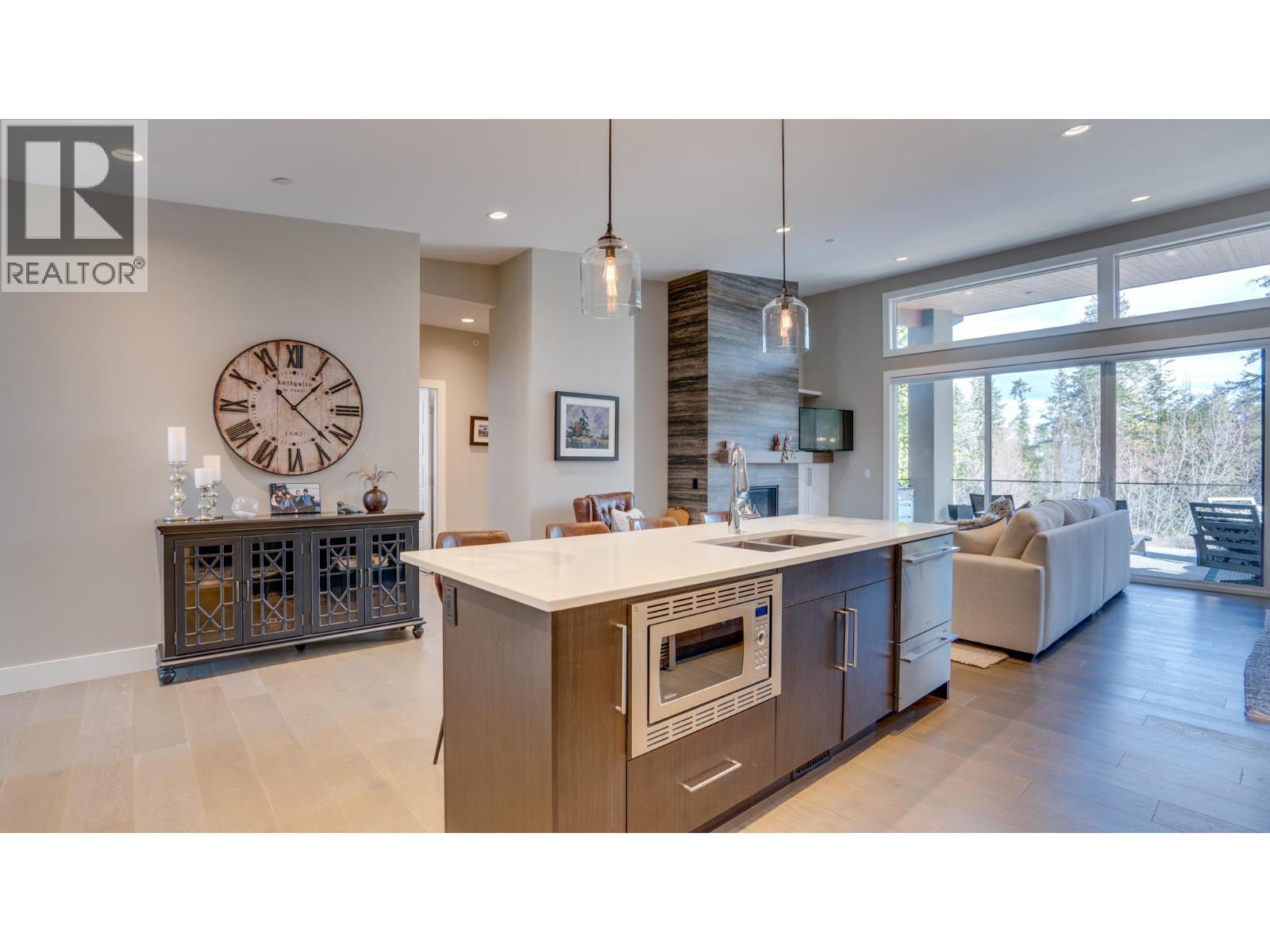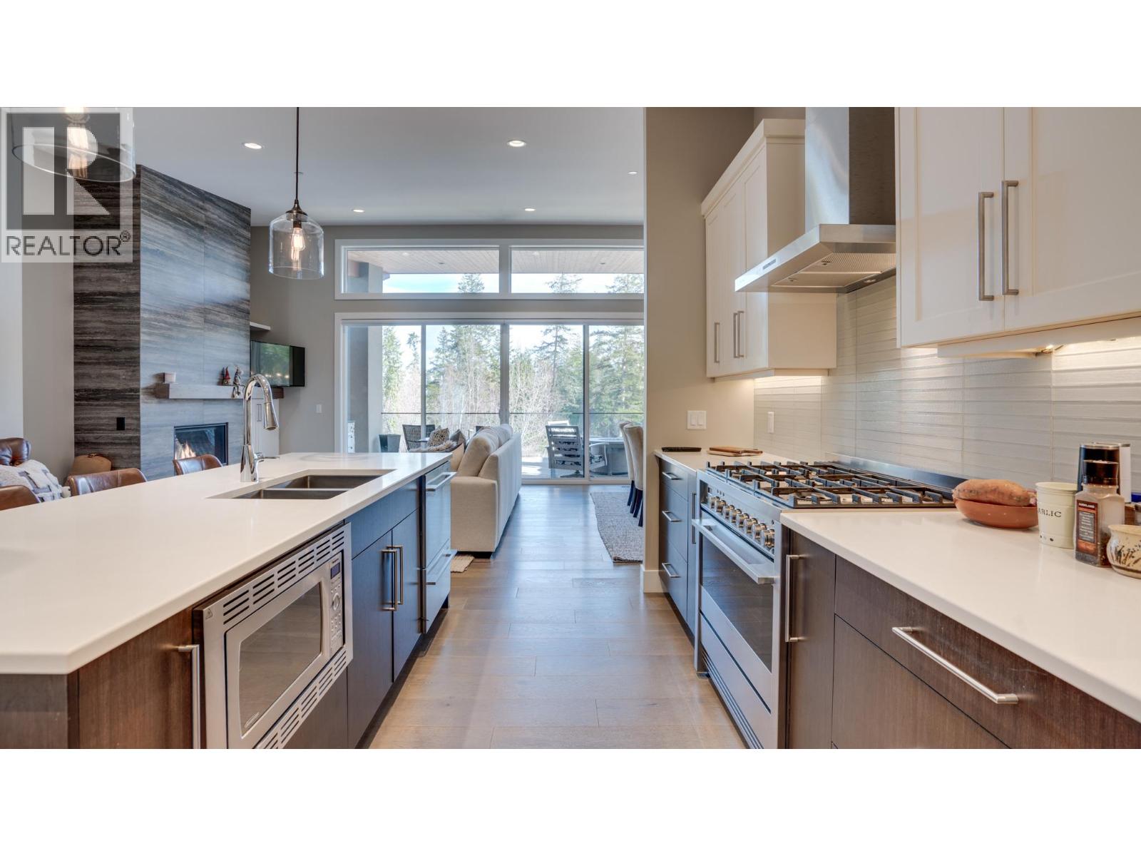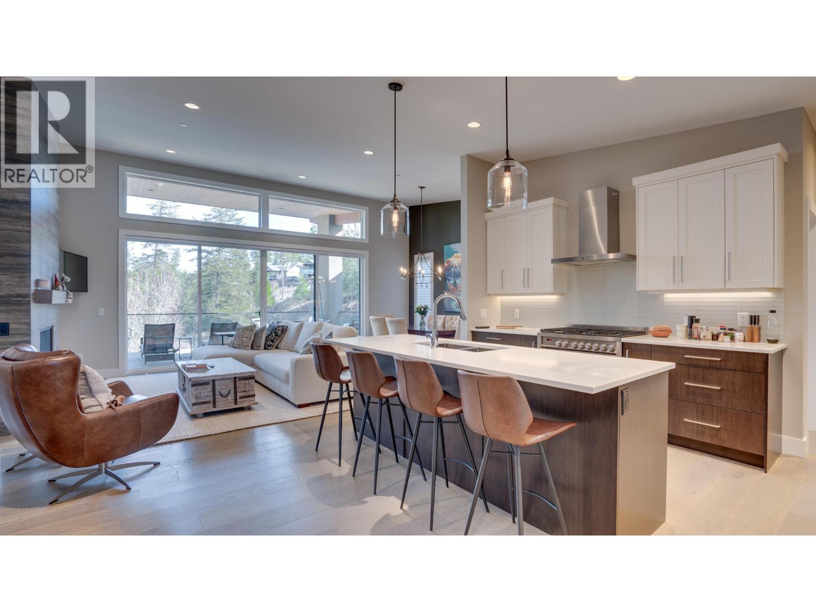 Nestled in the coveted Whitetail subdivision at Predator Ridge, this modern 1,784 sf rancher sits on a large corner lot with stunning views of the 3rd green. It offers 3 bdrms, 2 baths, and a dedicated laundry area, all flowing into an open-concept kitchen, living, and dining space that leads outdoors. The gourmet kitchen impresses with quartz countertops, s/s appliances (Fisher Paykel), a spacious island, an impressive butler's pantry, and a walk-in pantry, complemented by hardwood floors in neutral tones. The master suite features lrg windows overlooking the green and a spa-like ensuite with double sinks, a soaker tub, glass-enclosed shower, and heated tile floors. An expansive covered deck adds extra living space for entertaining or relaxing. Additional highlights include geothermal heating/cooling, an attached double garage with a cart bay, and a transferable golf membership. Designed for an easy “lock and leave” lifestyle, homeowners enjoy full landscaping services and extensive rec amenities included in the strata fee. With two world-class golf courses, a clubhouse, rec center, hiking/biking trails, yoga platforms, pickleball, and tennis, this community offers a true lifestyle retreat. Plus, with Kelowna Airport 23 minutes away, Silver Star Ski Resort 45 minutes away, and just nearby Sparkling Hill Wellness Hotel with its world-class spa, Predator Ridge is not just a home. Phase 2 Golf Membership available for $55,000, Plus transfer fee, EXEMPT FROM SPEC/VACANCY TAX (id:58842)