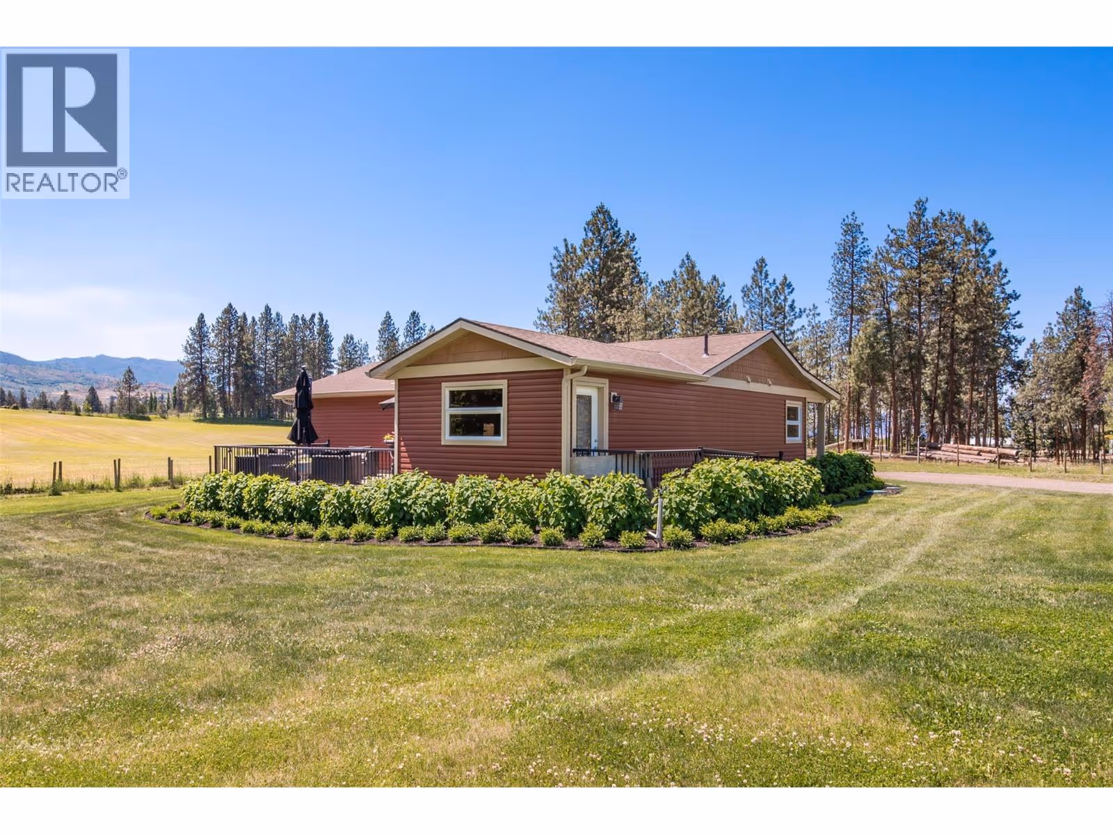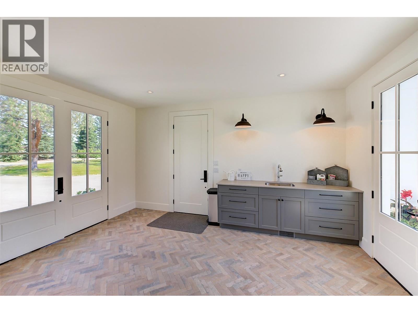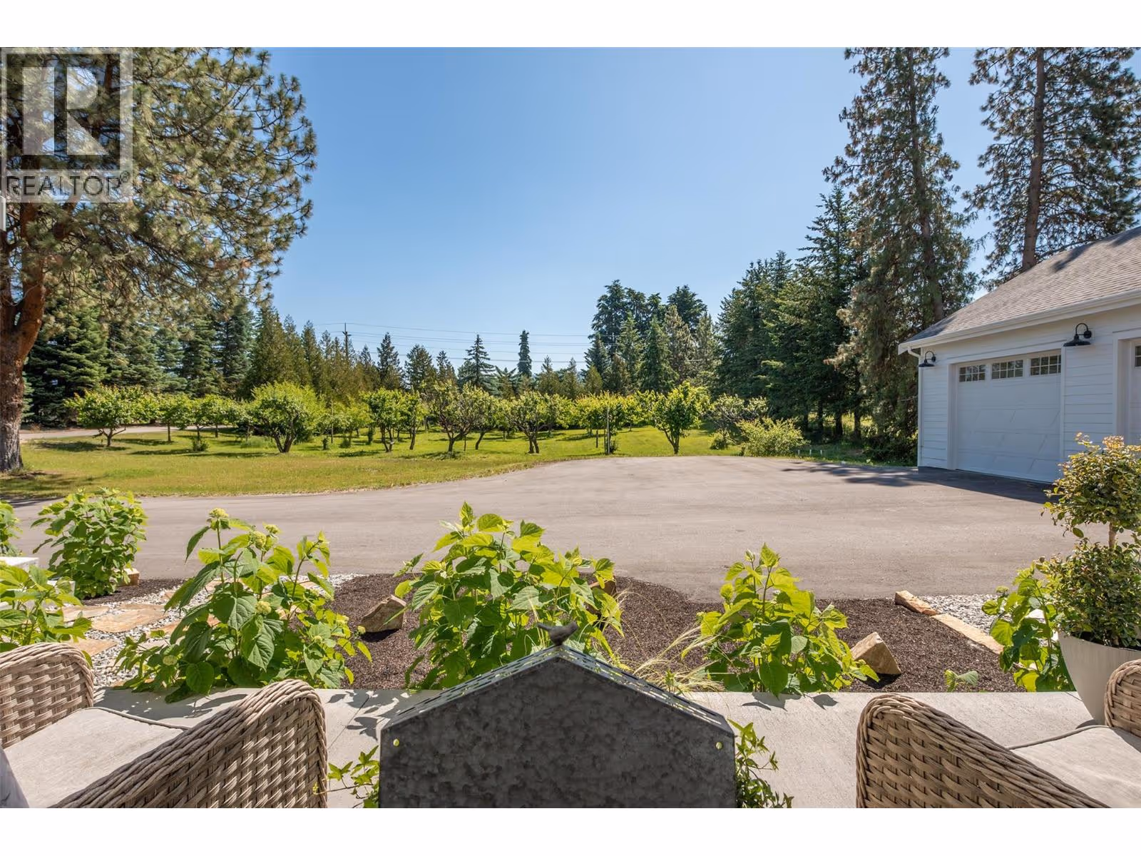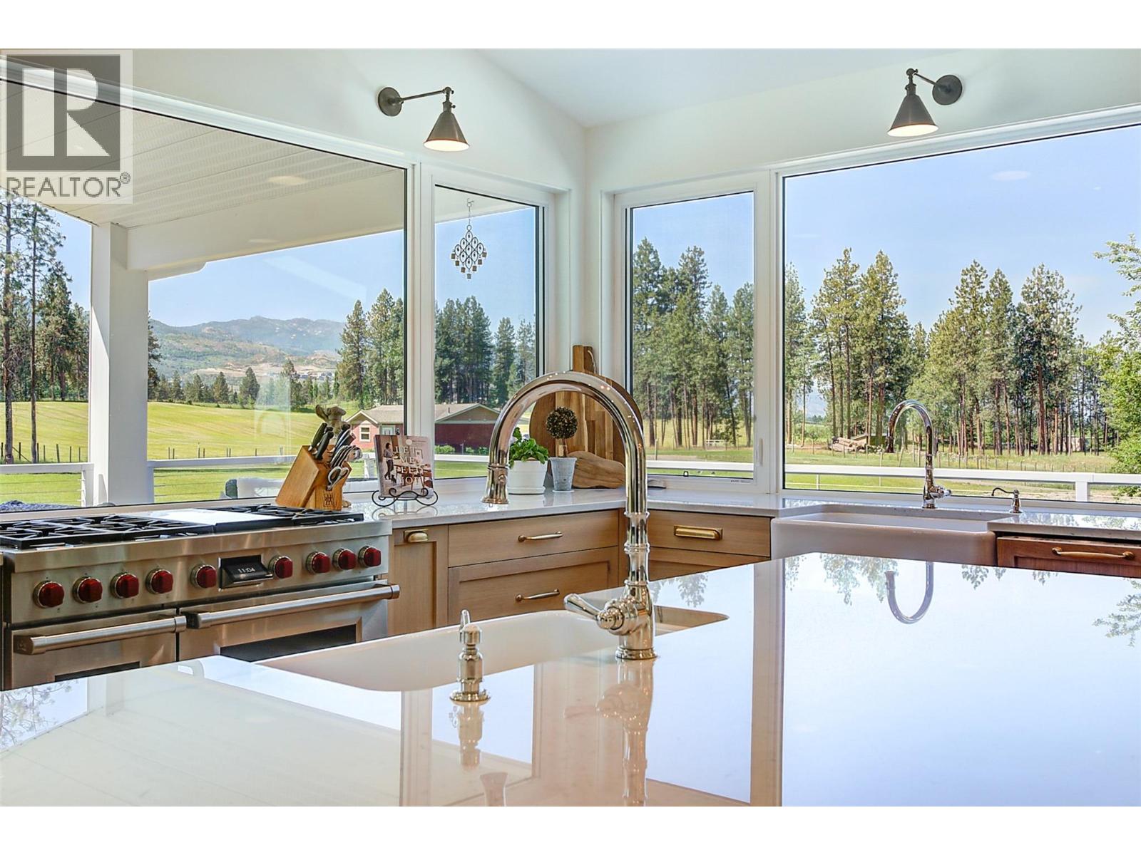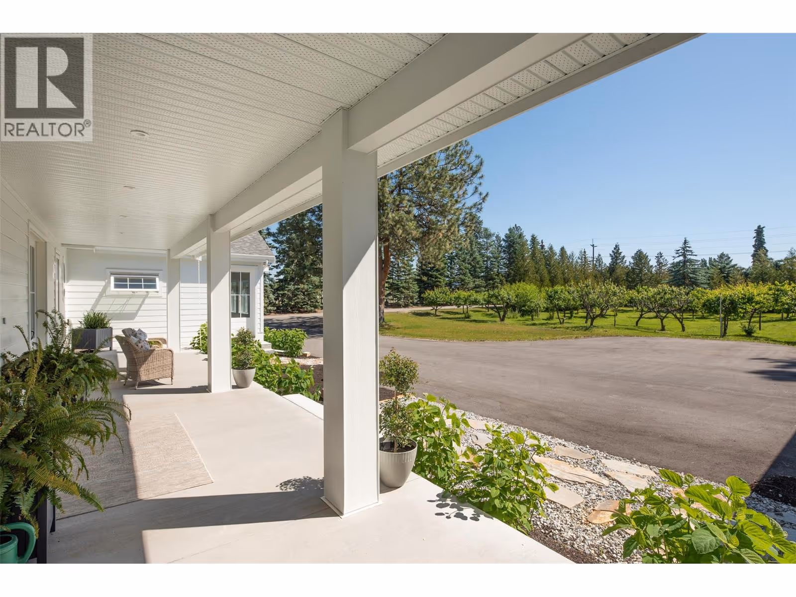 Picturesque & peaceful 12 acres in South East Kelowna. You will LOVE this near new MODERN farmhouse that blends timeless country elements with modern design and offers convenient one-level living. Finished with the utmost attention to detail & quality throughout including oak plank hardwood flooring, quartzite counters, brass hardware, custom tile work. The main living spaces are open & bright flowing seamlessly from the kitchen, dining & great room lending itself to creating family-oriented spaces for gathering and hosting. Great room features a custom cast, wood-burning fireplace with vaulted ceilings. A highlight of this home is the gourmet kitchen with professional appliances, an over-sized island and expansive windows bordering the kitchen capturing the stunning acreage views. Primary suite is a tranquil retreat with a show stopping en suite featuring a soaking tub, large white tiles extending up the walls, an open shower, gorgeous wood vanity. Multiple points of access open to the patios and wrap around porch. Separate access to the One bedroom suite. Basement is perfect for a home theater. Enjoy the backyard oasis with a pool and lounging area. Property offers a SECOND detached 2 bedroom home, + huge detached workshop, fenced for livestock & small orchard with variety of fruit trees. Incredible location with a close proximity to trails for hiking, biking, and horseback riding. Ideal setting for those in search of the tranquility of acreage living. (id:58842)