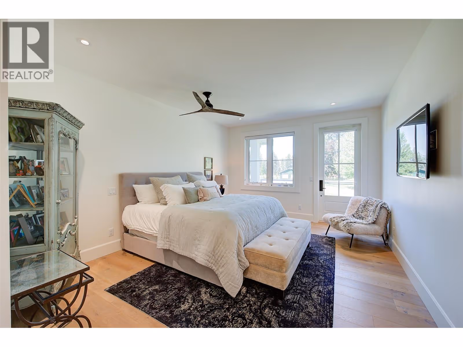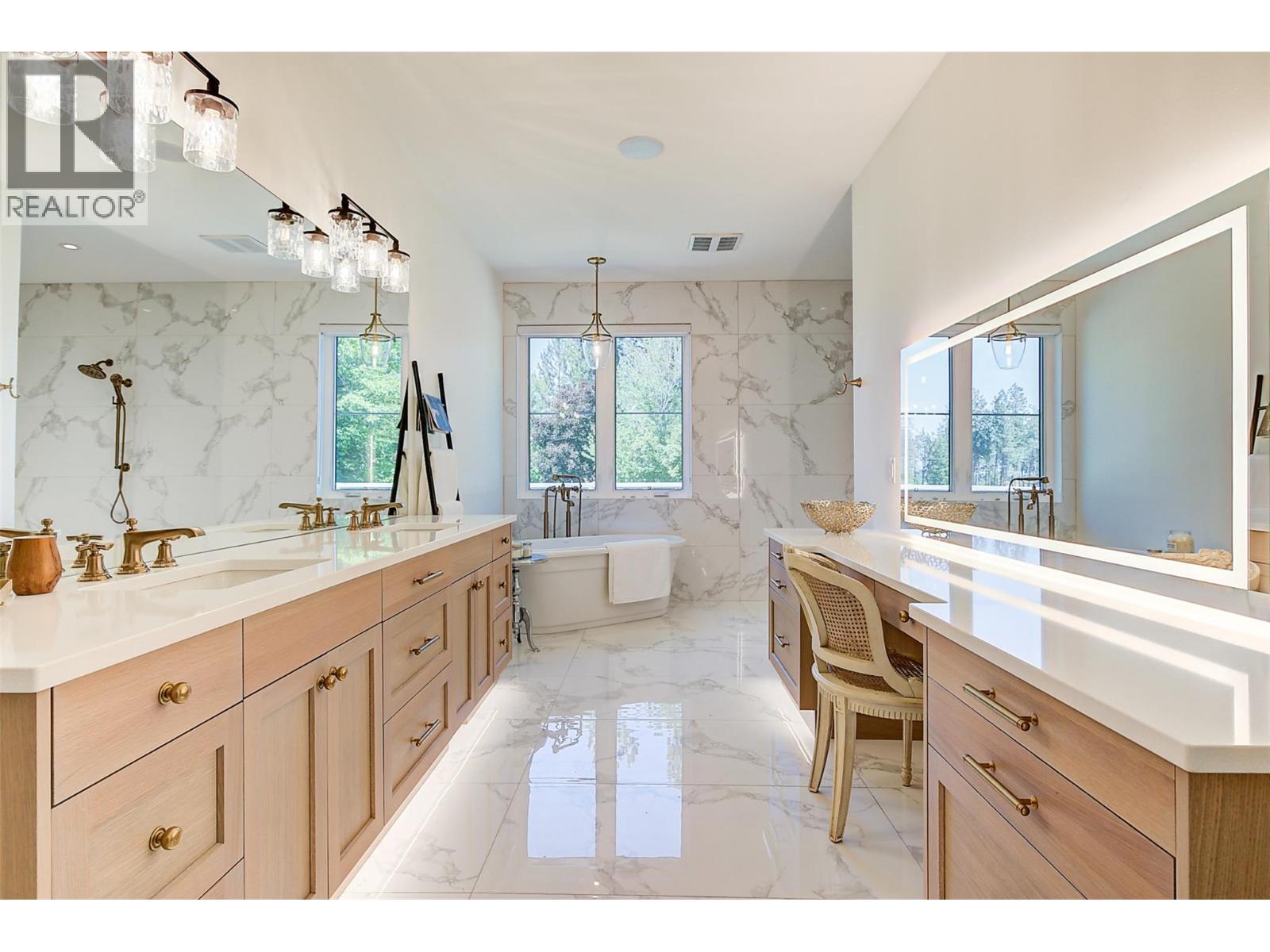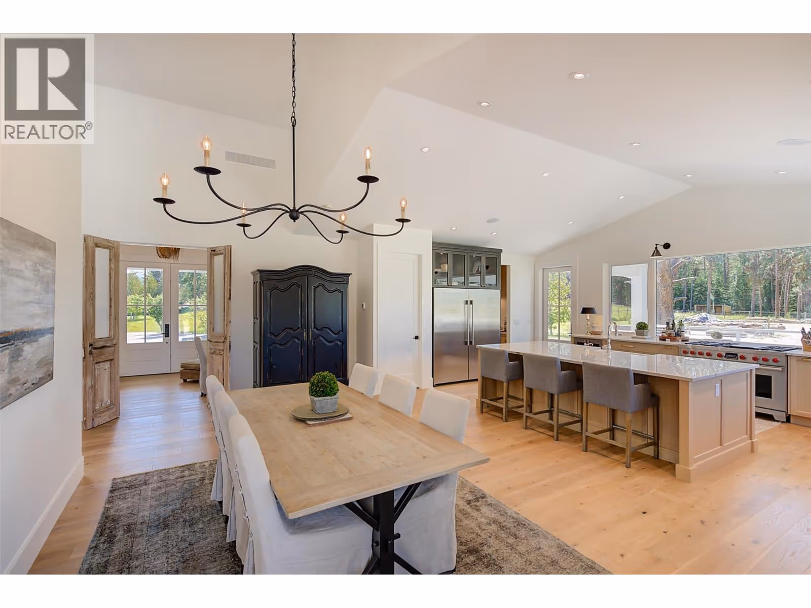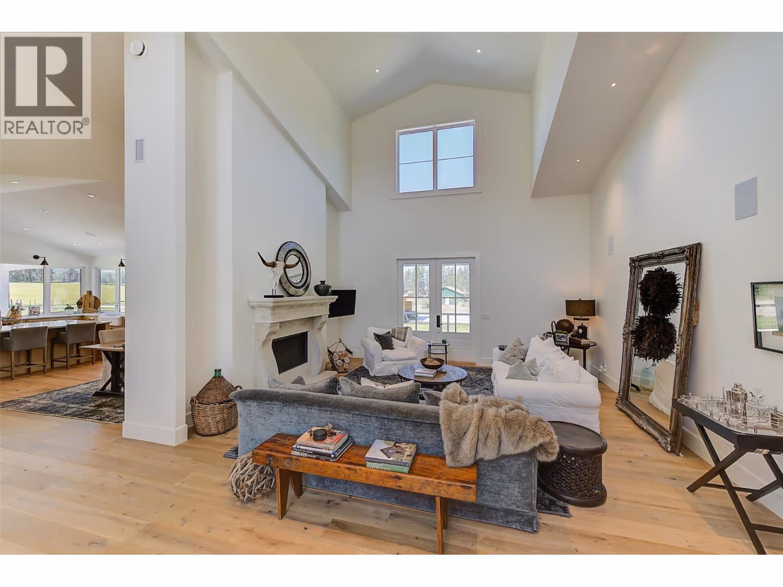 Picturesque & peaceful 12 acres in South East Kelowna. You will LOVE this near new MODERN farmhouse that blends timeless country elements with modern design and offers convenient one-level living. Finished with the utmost attention to detail & quality throughout including oak plank hardwood flooring, quartzite counters, brass hardware, custom tile work. The main living spaces are open & bright flowing seamlessly from the kitchen, dining & great room lending itself to creating family-oriented spaces for gathering and hosting. Great room features a custom cast, wood-burning fireplace with vaulted ceilings. A highlight of this home is the gourmet kitchen with professional appliances, an over-sized island and expansive windows bordering the kitchen capturing the stunning acreage views. Primary suite is a tranquil retreat with a show stopping en suite featuring a soaking tub, large white tiles extending up the walls, an open shower, gorgeous wood vanity. Multiple points of access open to the patios and wrap around porch. Separate access to the One bedroom suite. Basement is perfect for a home theater. Enjoy the backyard oasis with a pool and lounging area. Property offers a SECOND detached 2 bedroom home, + huge detached workshop, fenced for livestock & small orchard with variety of fruit trees. Incredible location with a close proximity to trails for hiking, biking, and horseback riding. Ideal setting for those in search of the tranquility of acreage living. (id:58842)