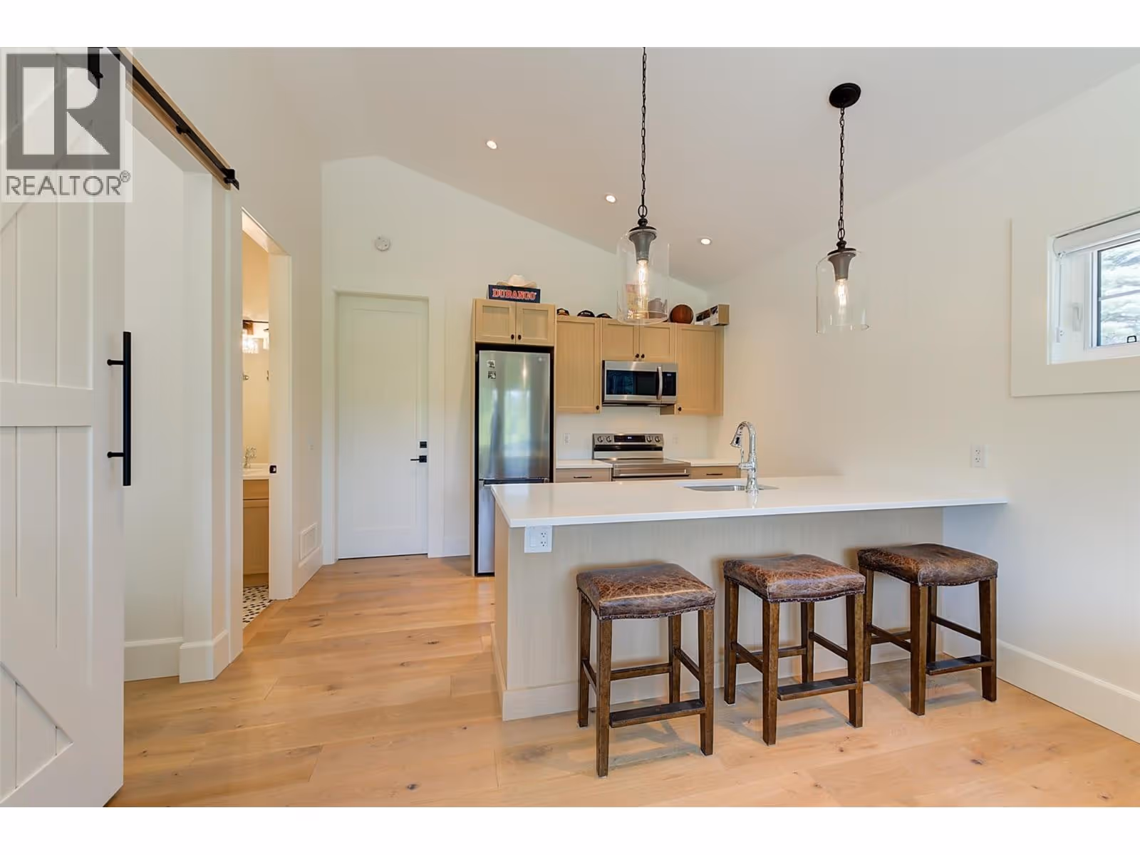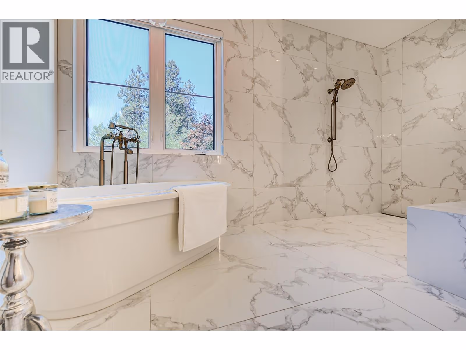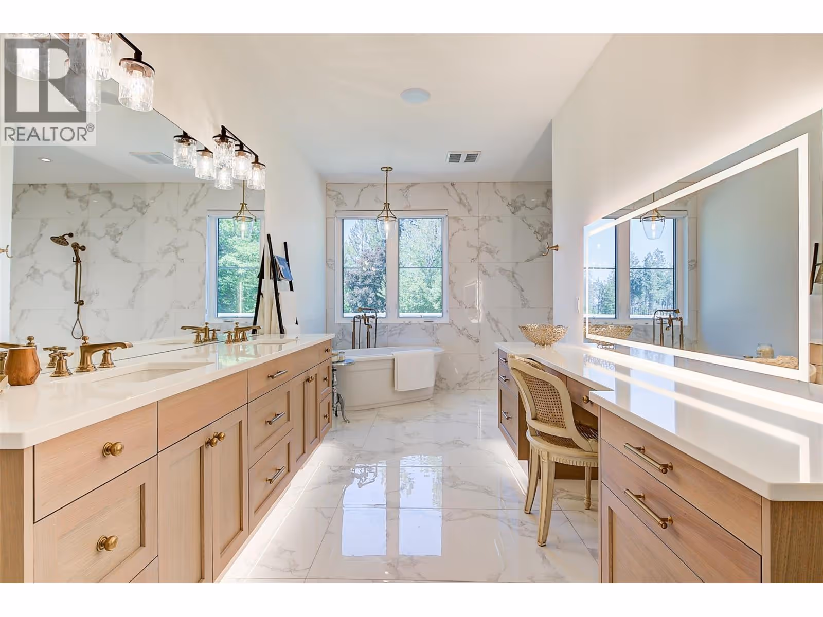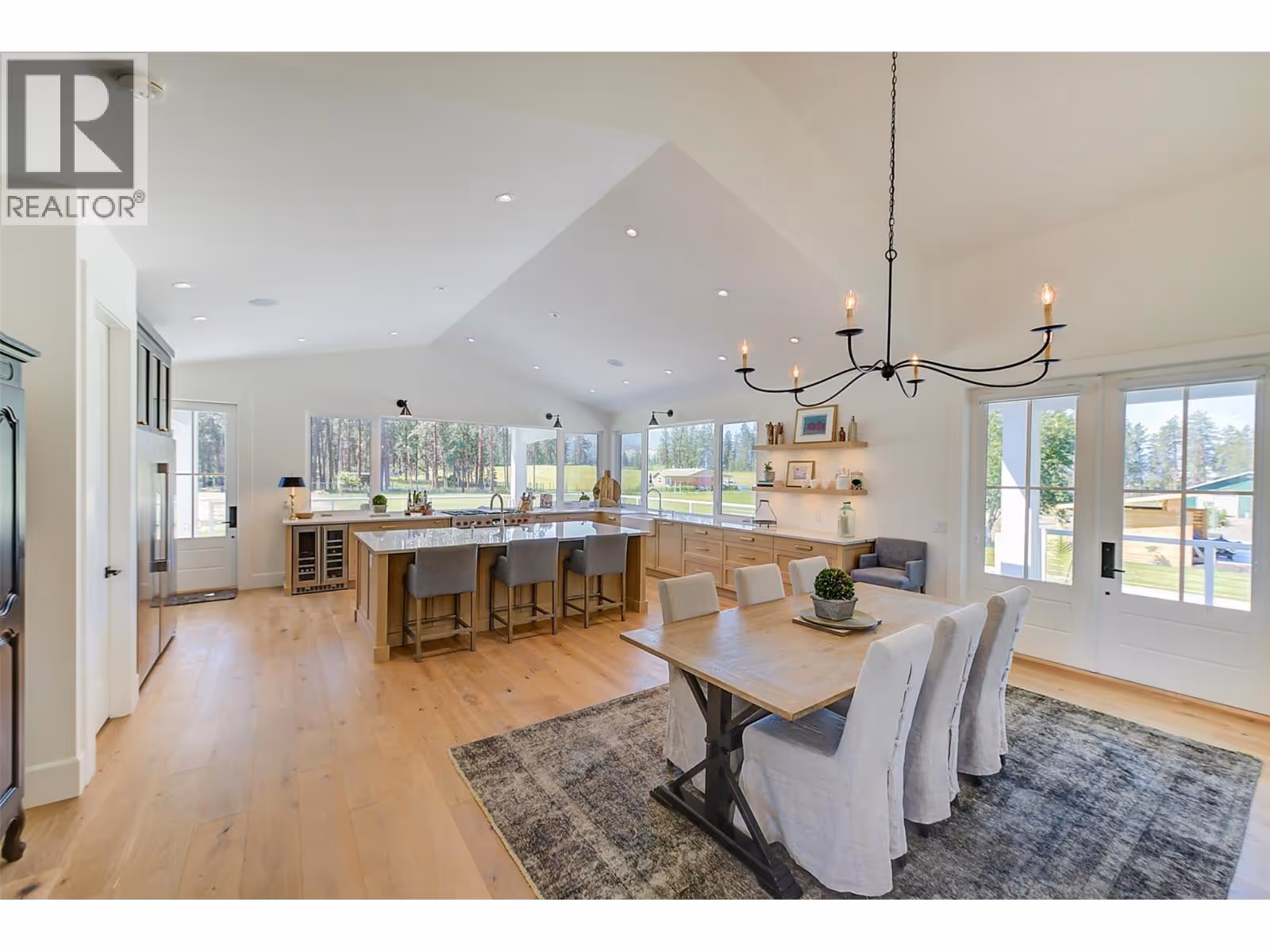 Picturesque & peaceful 12 acres in South East Kelowna. You will LOVE this near new MODERN farmhouse that blends timeless country elements with modern design and offers convenient one-level living. Finished with the utmost attention to detail & quality throughout including oak plank hardwood flooring, quartzite counters, brass hardware, custom tile work. The main living spaces are open & bright flowing seamlessly from the kitchen, dining & great room lending itself to creating family-oriented spaces for gathering and hosting. Great room features a custom cast, wood-burning fireplace with vaulted ceilings. A highlight of this home is the gourmet kitchen with professional appliances, an over-sized island and expansive windows bordering the kitchen capturing the stunning acreage views. Primary suite is a tranquil retreat with a show stopping en suite featuring a soaking tub, large white tiles extending up the walls, an open shower, gorgeous wood vanity. Multiple points of access open to the patios and wrap around porch. Separate access to the One bedroom suite. Basement is perfect for a home theater. Enjoy the backyard oasis with a pool and lounging area. Property offers a SECOND detached 2 bedroom home, + huge detached workshop, fenced for livestock & small orchard with variety of fruit trees. Incredible location with a close proximity to trails for hiking, biking, and horseback riding. Ideal setting for those in search of the tranquility of acreage living. (id:58842)