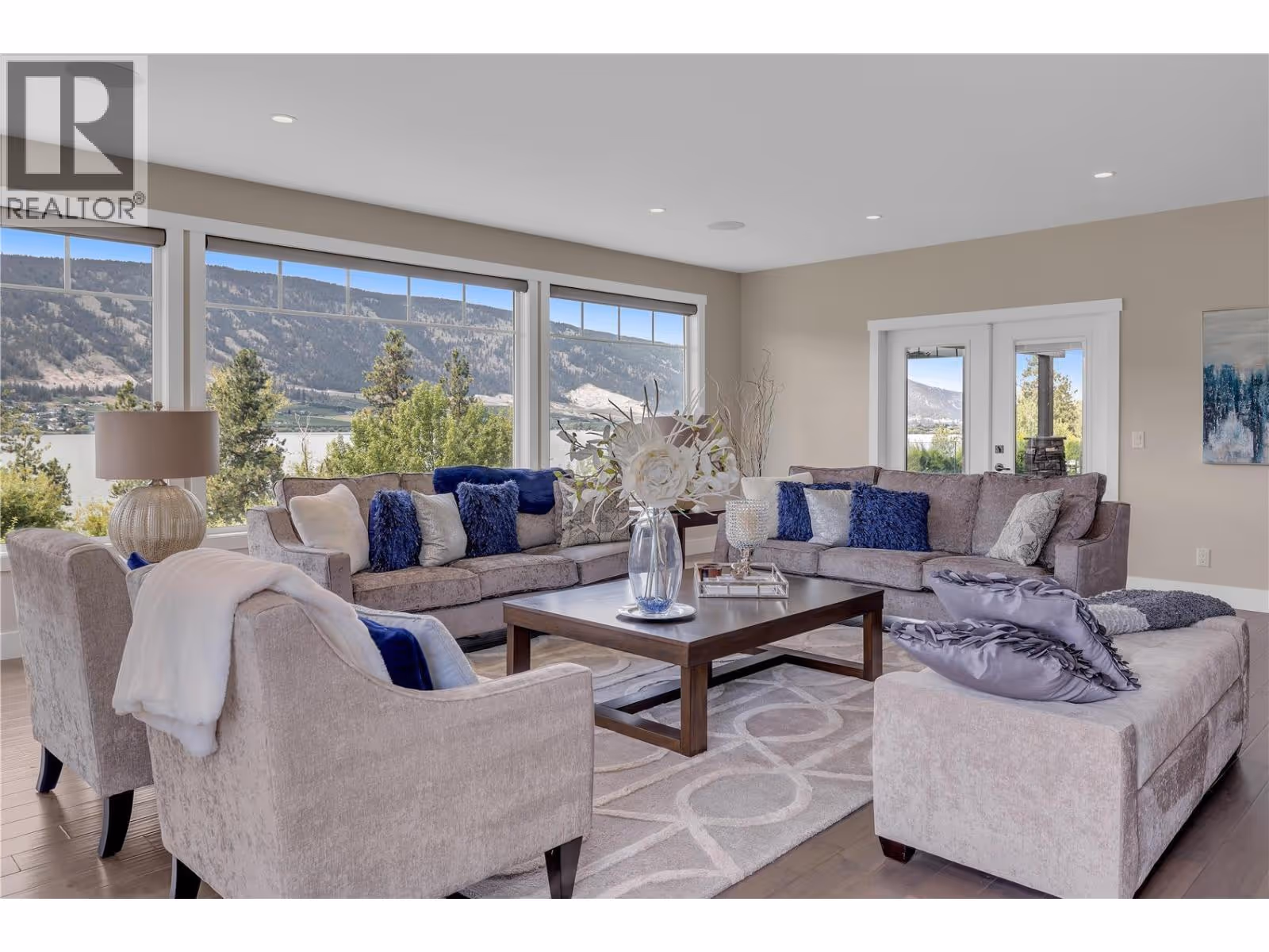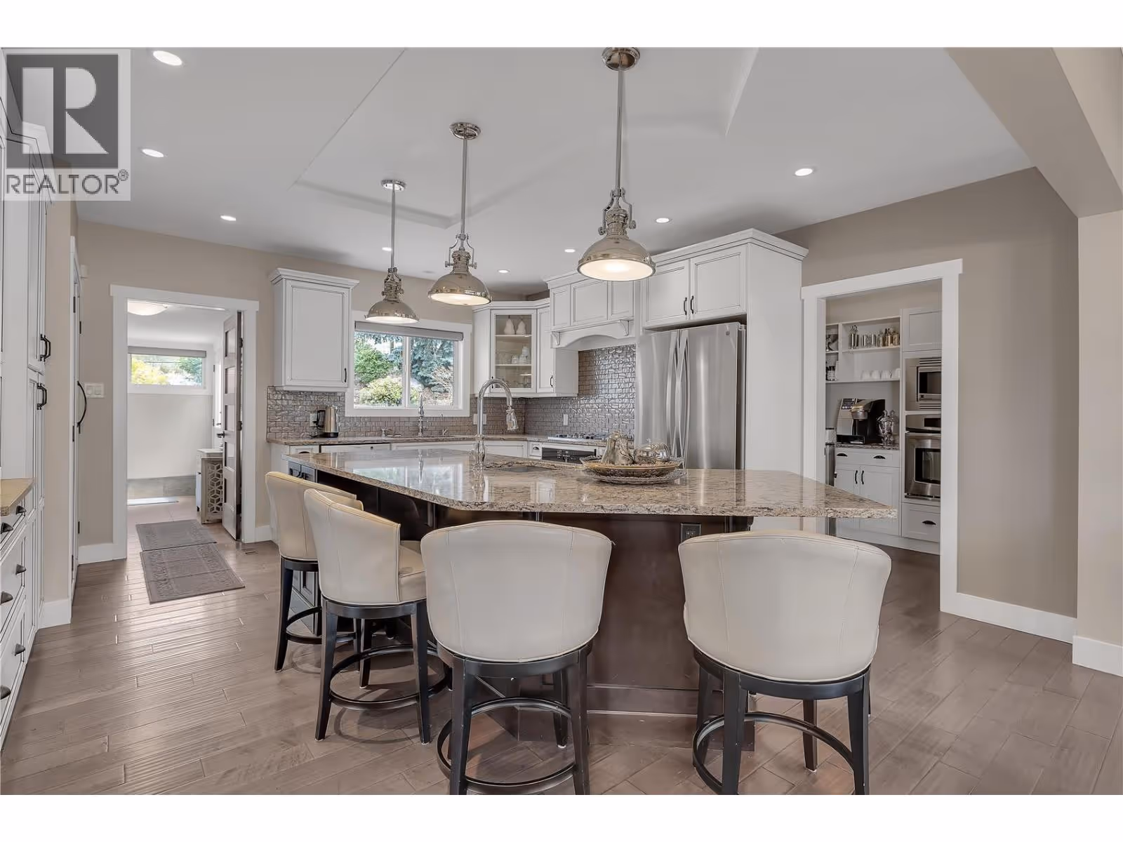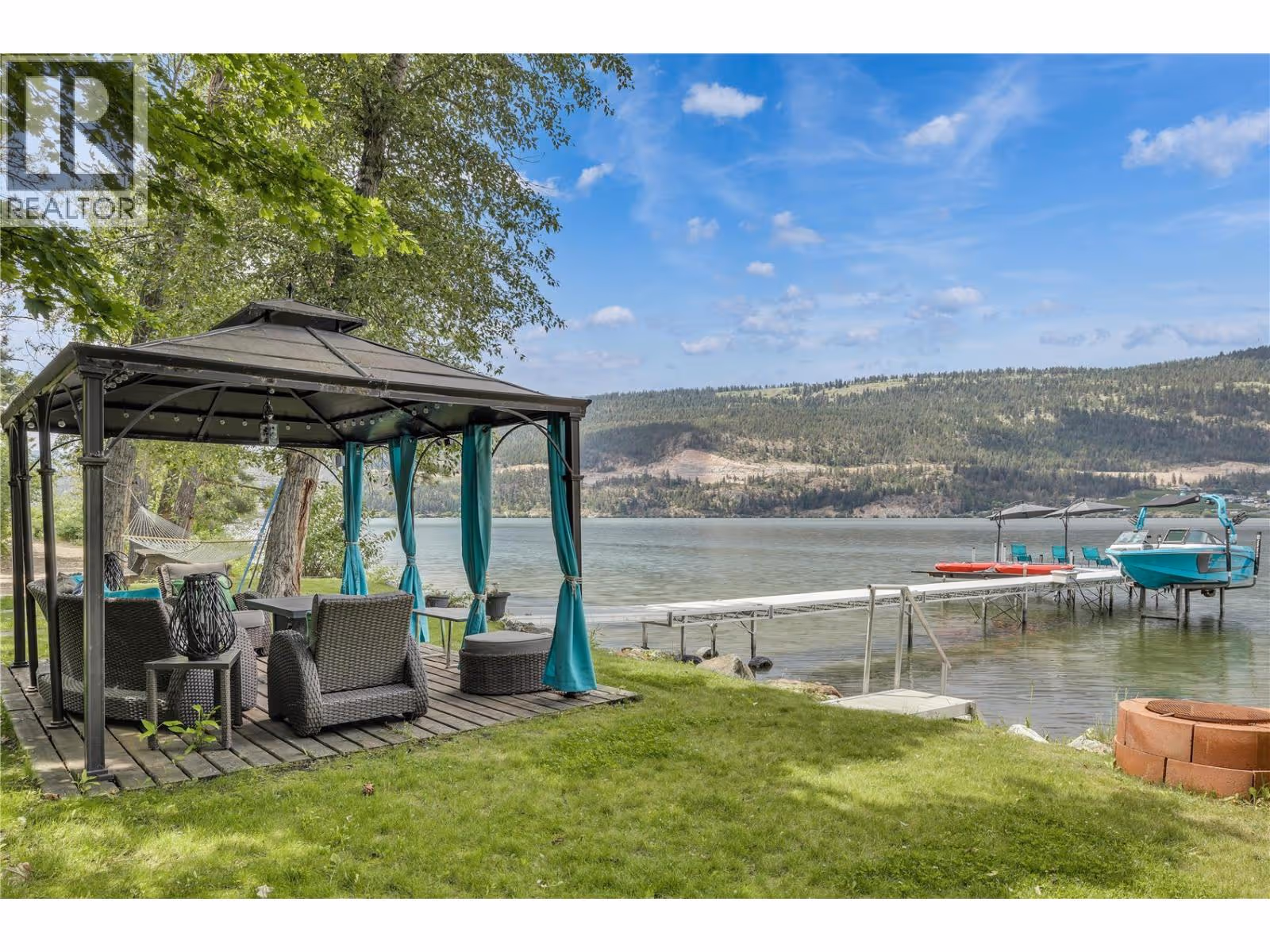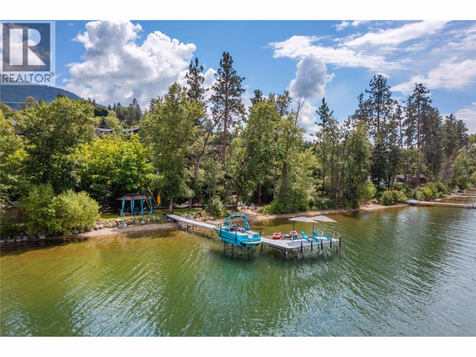 EXTRAVAGANT WATERFRONT ESTATE! This property features agritourism zoning, permitting up to five permanent structure sleeping units, affording great potential for expansion and additional living structures. Professional Drawings are available for AirBnB suites over the garage. A legal carriage home offers two beds and two baths, providing flexibility and convenience. Moreover, take advantage of the grandfathered zoning allowing for the rental of six beach lots, ensuring lucrative passive income. Boasting two residences, along with a remarkable detached shop, nestled on 5+ acres of prime waterfront property, this estate is truly unparalleled. With a staggering 1000 feet of private beachfront and a dock equipped with hydraulic lifts and integrated lighting, every aspect of waterfront living has been meticulously curated. The main residence with five beds and four baths, exudes elegance and sophistication with high-end finishes, breathtaking lake views, and luxurious amenities such as a butler's pantry, theatre room, and a master suite fit for royalty, complete with a fireplace, private deck, and opulent ensuite bathroom. Ample garage space, totaling over 3200 sq.ft., includes a hoist bay and mezzanine office, catering to automotive enthusiasts and professionals alike. Step outside to discover meticulously manicured landscaping, flourishing fruit trees, and an outdoor kitchen/wet bar, perfect for entertaining guests against the backdrop of stunning lake vistas. (id:58842)