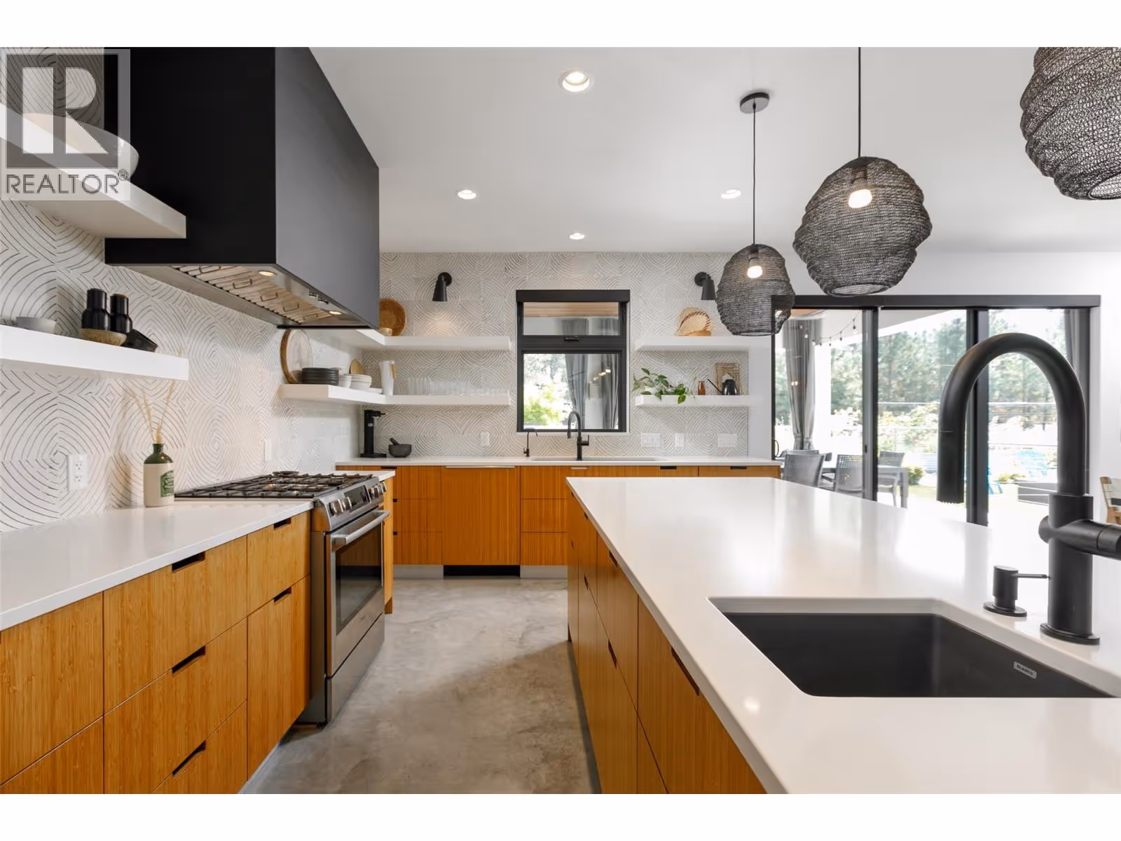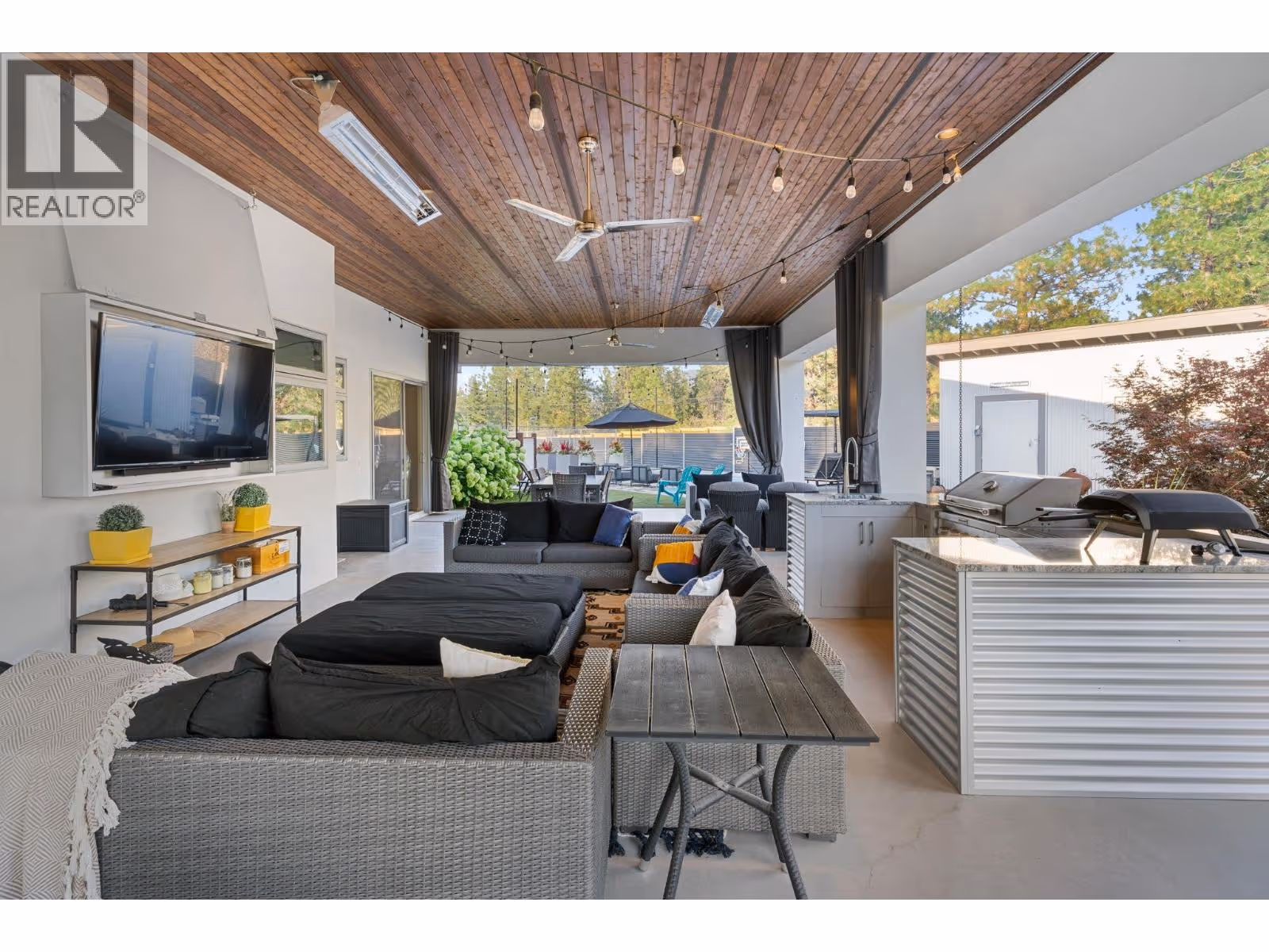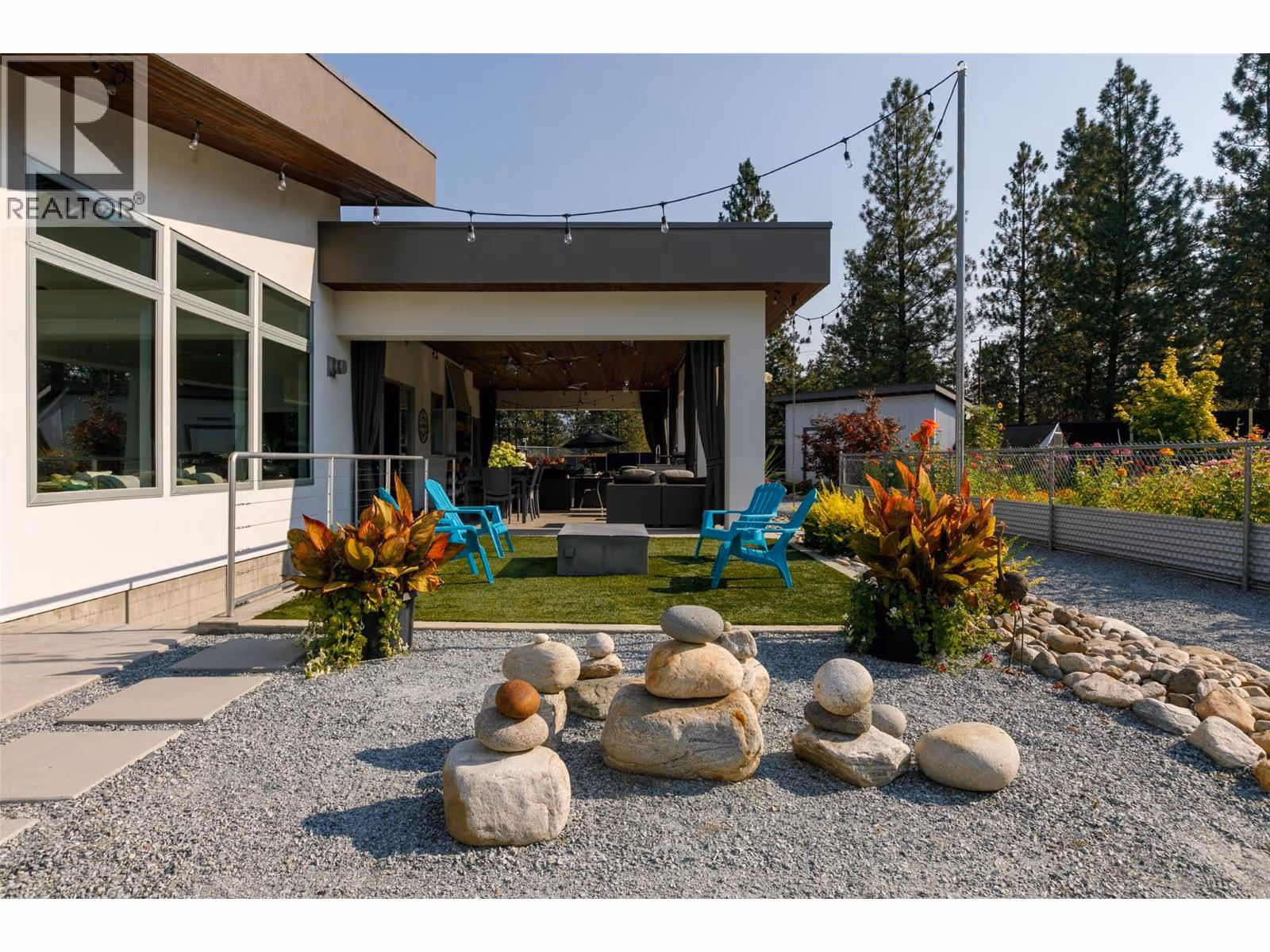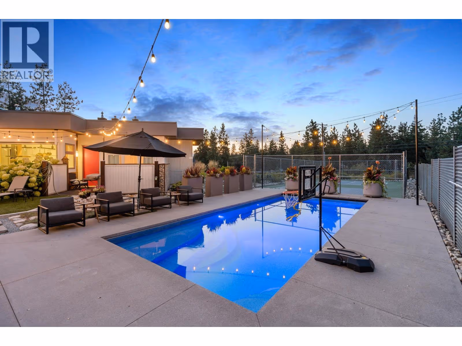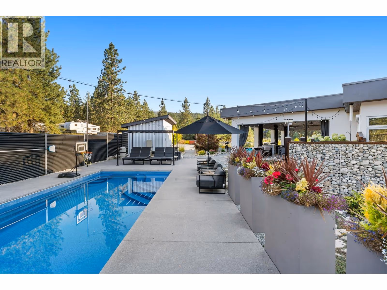 Looking for a premier Southeast Kelowna estate? This estate home rests on 2.47-acre zoned RR1- not ALR- and offers a luxury resort lifestyle! Multiple residences, detached shop, a swimming pool and pickleball court are at your fingertips while you're surrounded by an organic honeyberry /haskap farming crop that you can find in the vibrant Okanagan farm-to-table community. Minutes from Gallaghers Golf Club, this estate offers lifestyle, potential income, and long-term potential. The custom rancher features two separate self-contained residences each with own formal entries, ideal for multigenerational families or income generation. This free flowing floorplan links the main 4-bedroom home with full basement to the legal 1-bedroom suite—each finished with polished concrete floors, bamboo cabinetry and premier appliances. Both overlook the resort inspired backyard anchored by elaborate outdoor covered patio / kitchen facing swimming pool fun! Perfect for seamless indoor-outdoor living. An additional detached shop features ample storage, walk-in refrigeration storage, and in-law 1 bed 1 bath office space. Clean architectural lines, abundant natural light, and exceptional craftsmanship define the home’s airy, modern aesthetic. Non-ALR zoning opens doors for future development potential, making this a rare offering for discerning buyers, boutique farmers, or those seeking upscale rural living with a sustainable twist. Come see this exceptional resort style property! (id:58842)