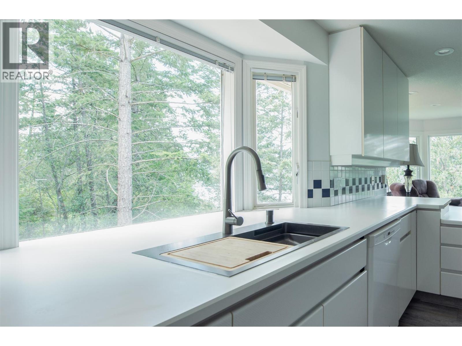 Discover your dream retreat on a private and quiet .63-acre lake view lot. New roof (2023), 10 new windows on main floor, flooring, and self-contained two-bedroom walkout suite! (Over $100,000 spent on renos in the last three years). This home offers lake views and natural light through vaulted ceilings and skylights. Custom kitchen with walk-in pantry and breakfast nook. Great room features Jotul gas fireplace, new hearth, dining area, and living room. Master suite with deck access, walk-in closet, and ensuite bathroom with Neptune tub and double sinks. Second bedroom ideal as den or guest room with Murphy bed. Daylight suite offers modern amenities and lake views. Features include: Jotul gas fireplace, Sound-deadening insulation - New heat pump - Updated appliances - Refinished deck and stairs - Insulated garage doors - Fire-smart clearing -Heated/cooled triple garage with workshop, RV & boat parking. Fenced yard with room for additional shop, plus private beach and boat launch access! (id:58842)