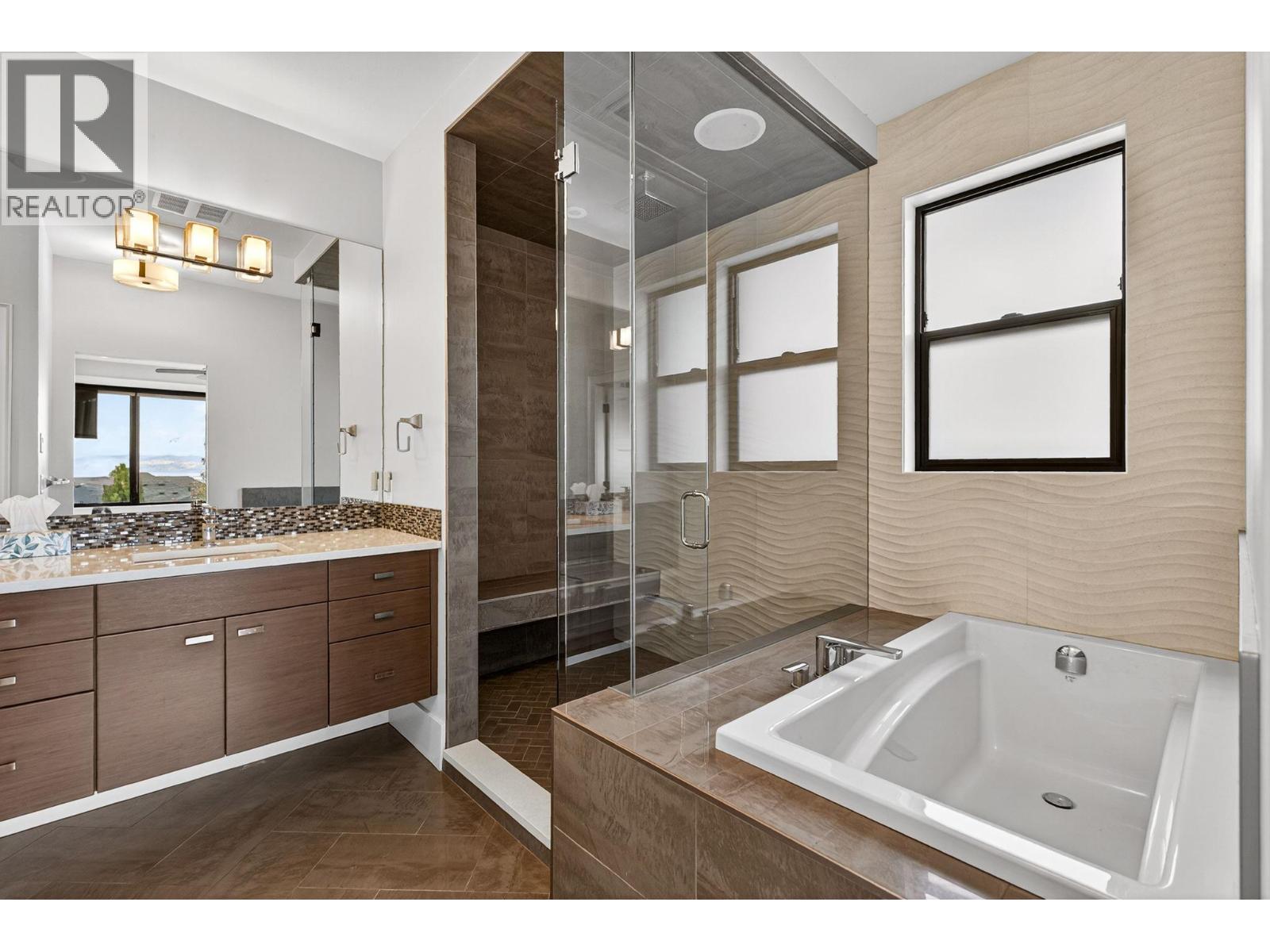 Ideally situated on a quiet, dead-end street in one of Kettle Valley’s most sought-after neighbourhoods, this exceptional residence exemplifies premium family living. Occupying a landscaped corner lot, the property features expansive lake and mountain views and is conveniently located across from walking and hiking trails. The interior offers both functionality and elegance, with a double-sided fireplace that unites the main floor living and dining areas in a welcoming atmosphere. Hardwood flooring extends throughout the main level, complemented by plush carpeting in the bedrooms. The contemporary two-tone kitchen is equipped with stainless steel appliances, a spacious walk-in pantry, and modern cabinetry for optimal utility and style. A dedicated office with a private entrance provides an excellent opportunity for a home-based business. The upper level boasts three well-designed bedrooms, including a primary suite with impressive lake views, a walk-in closet, and a spa-inspired ensuite. Everyday convenience is enhanced by a walk-through laundry room connected directly to the primary suite. On the lower level, a self-contained in-law suite offers versatile accommodations suitable for extended family members, older children, or guests. The heated four-car garage includes an RV hookup and ample space for a large RV or boat, catering to outdoor enthusiasts. This residence is positioned just minutes from schools, parks, shopping, and biking trails. (id:58842)