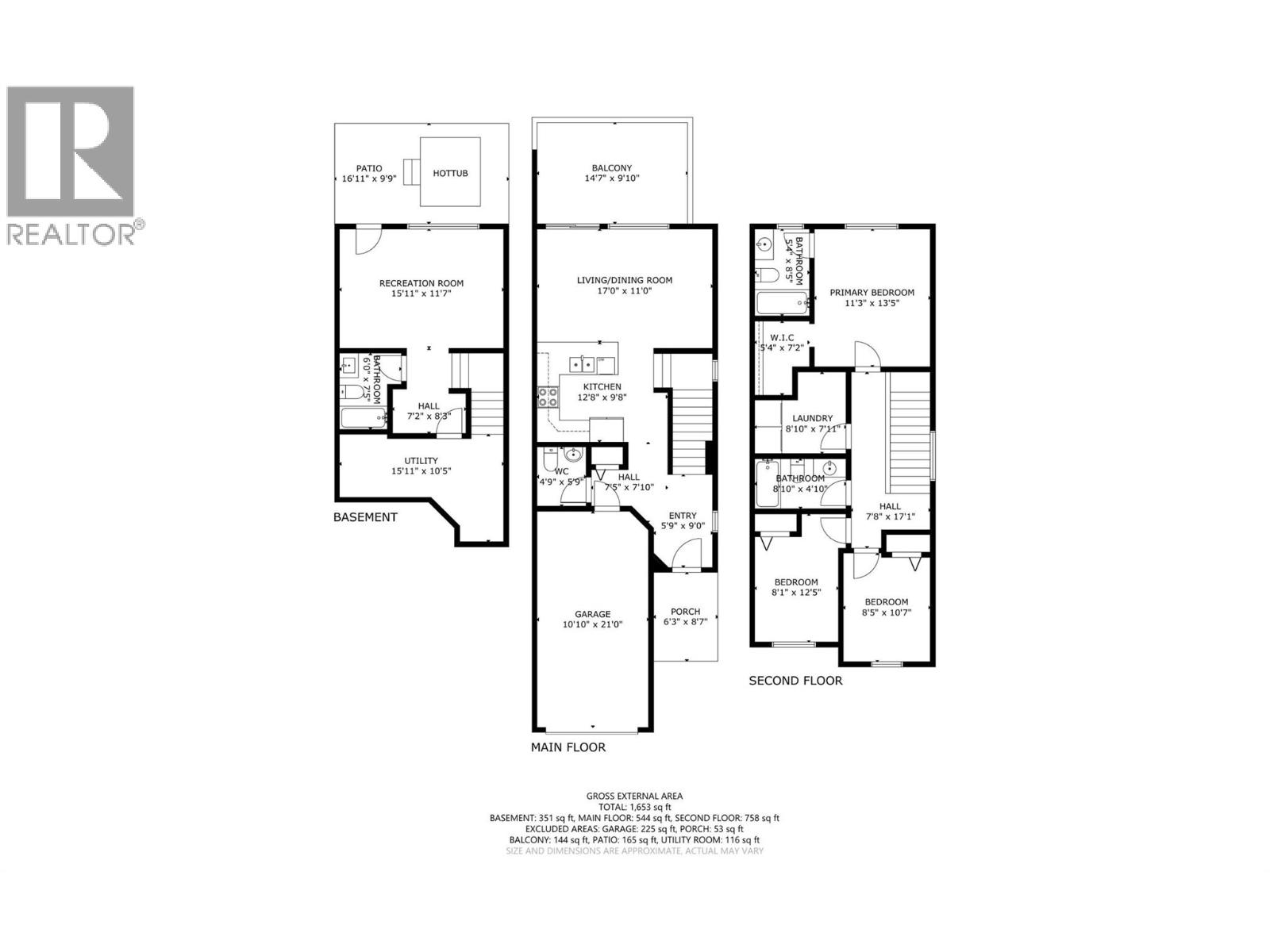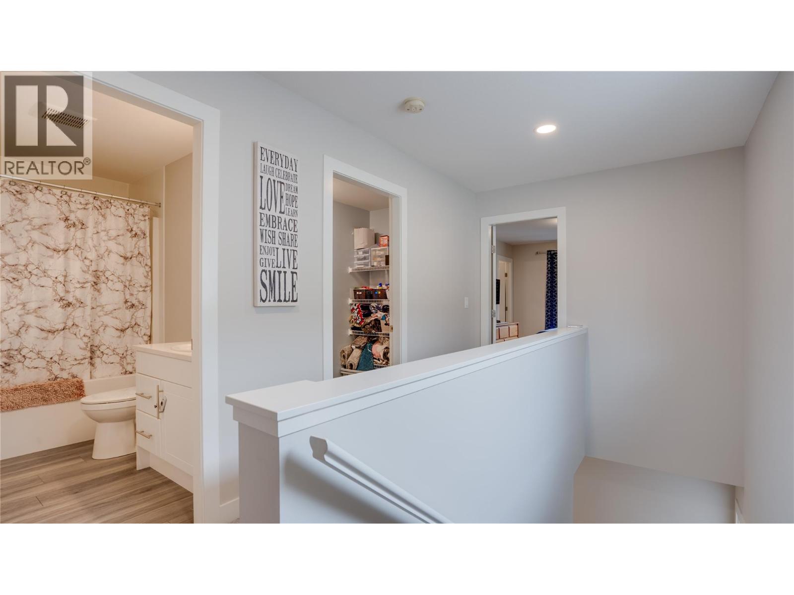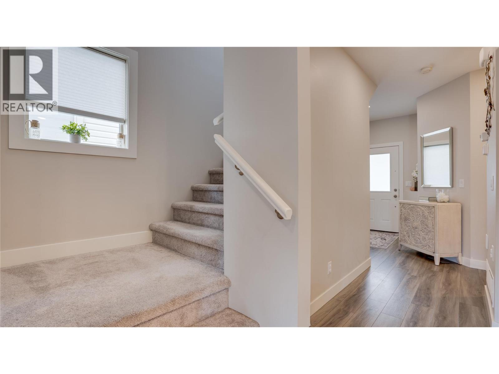Beautiful 6 year old townhome in Vernon British Columbia. This 3 bedroom 4 bathroom townhome is the perfect starter home and the perfect place to start your family. Boasting a level entry kitchen, livingroom entertainment area with a large deck with a view of Vernon's Okanagan Landing as well as a 2 piece bathroom. Upstairs has a large master bedroom(with a view of Okanagan Lake) with it's only ensuite and walk-in closet, 2 other well sized bedrooms, an additional full bathroom and a laundry room(which is oversized compared to similar units in the complex). Downstairs has an additional full bathroom, large entertainment room and a utility room, perfect for storing all your seasonal gear. The yard is perfect for a pet or enjoying the Okanagan Summers and also has a newer hottub. Garage has also been upgraded with an EV charger! (id:58842)
