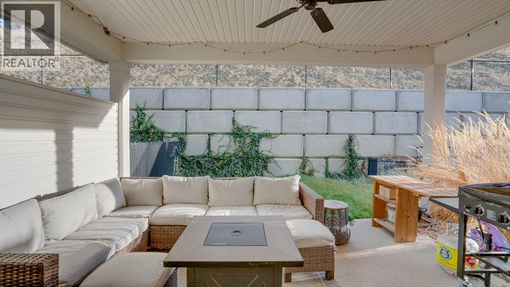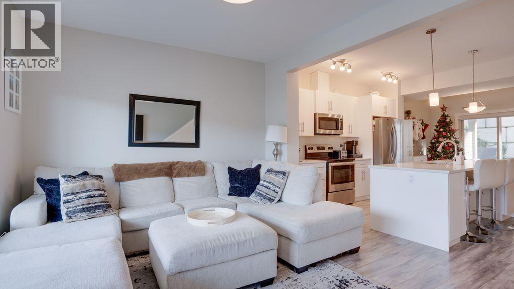 Immaculate 2 bed 2.5 bath END UNIT in The Terraces. This home features a bright open floor plan with gorgeous California Shutters.... The kitchen boasts tall ceilings, extra cabinets, stainless steel appliances and a large island with quartz countertops that easily fits four stools . The dining area opens up to your private backyard where you will find a large covered deck with plenty of room for entertaining, a ceiling fan to keep you cool and a lawn area that is great for kids and pets. With the open concept floor plan, the kitchen flows into the living room with 9' ceilings and a large picture window that fills the home with natural light. Easy access from the living room to the front deck where you can enjoy coffee with a view. Upstairs features two master suites, each with a full ensuite, custom walk-in closets. Doing laundry will be a pleasure in the second floor laundry room with loads of storage, a folding counter and even room for an ironing board. Two car tandem garage is 32' long giving you space to park your car as well as store your paddle boards, E-bikes, golf clubs and everything you need to enjoy the Okanagan Lifestyle. Conveniently located near transit, and a short drive to restaurants, schools, coffee shops, shopping , golf, the beach and more. Call today to book a showing! (Pets aloud with restrictions). (id:58842)