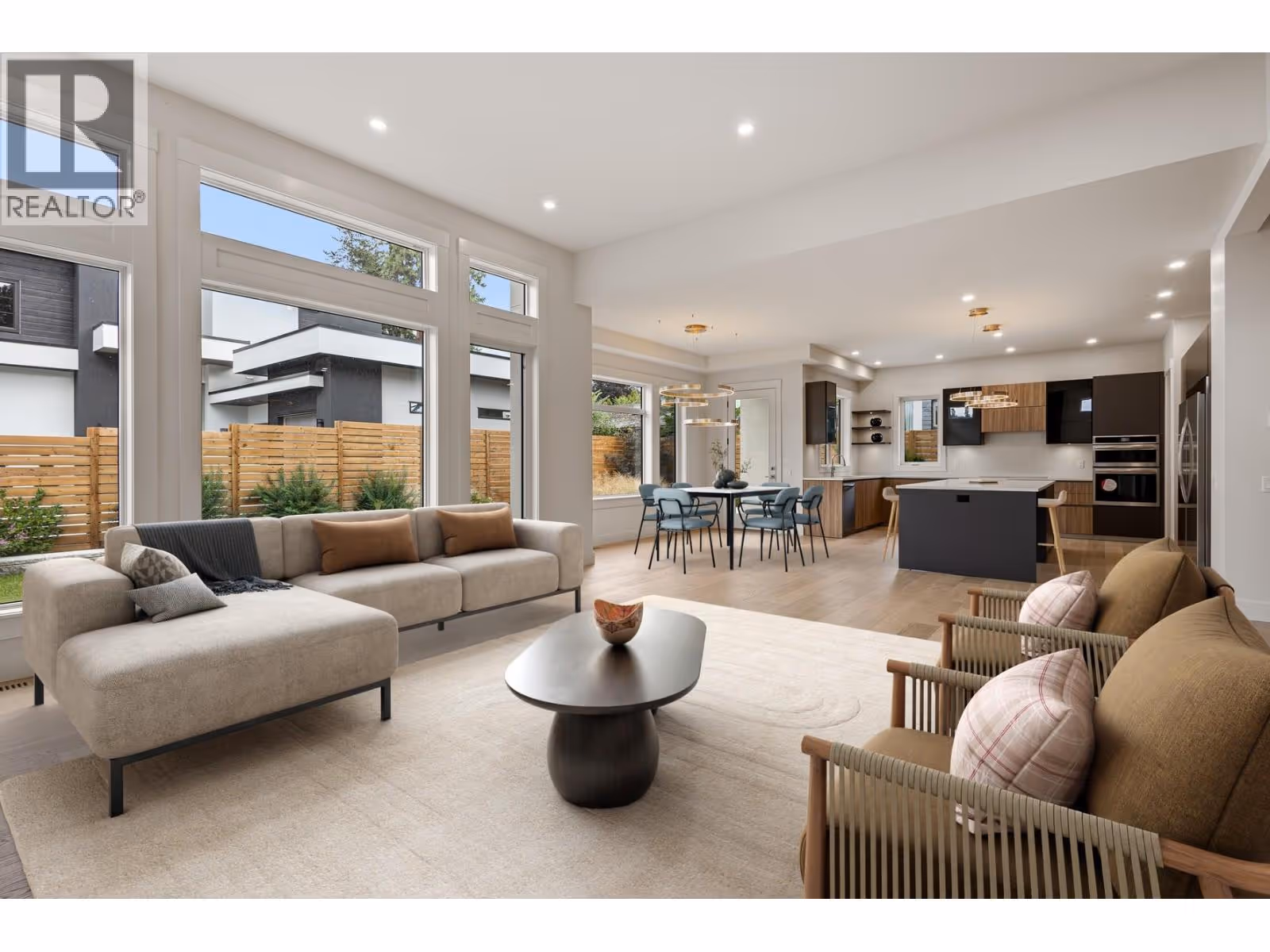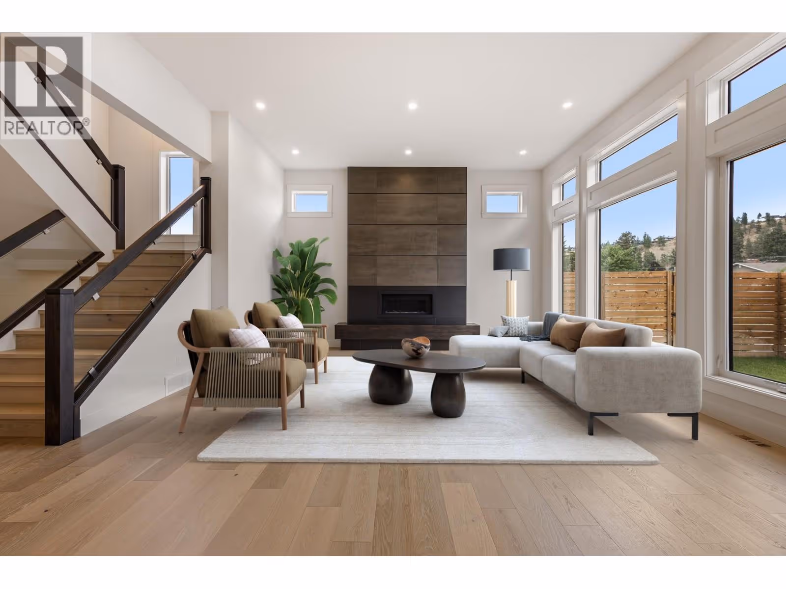 Experience refined living in this brand-new 7 bedroom, 5 bath residence in one of Lower Mission’s most desirable neighborhoods. Thoughtfully designed with high-end finishes and a 2 bedroom, 1 bath legal suite, this home offers versatility, sophistication, and timeless style. The main level welcomes you with engineered hardwood, a private office, open-concept living with 12-ft ceilings, and a statement fireplace wall. The chef-inspired kitchen features custom Pedini Italian cabinetry, two Frigidaire wall ovens, a spacious island, quartz counters, and a fully equipped butler’s pantry. Upstairs, the primary suite is a serene retreat with a 5-piece spa-inspired ensuite, walk-in wardrobe, and designer lighting. Two additional bedrooms, a stylish bath, laundry room, and a bright flex room complete the level. There is a convenient study/alcove area on the upper landing ideal for a built-in study desk. The lower level includes a guest bedroom and bath plus a self-contained suite with private entrance off of a sunken patio and bbq area. Enjoy indoor-outdoor living with a partially covered patio and landscaped, fully fenced yard. The double garage includes EV charging and a man door for added access. Minutes from beaches, schools, wineries, and urban amenities, this is exceptional Kelowna living. (id:58842)